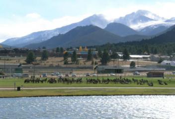 The Town of Estes Park is located in Larimer County and lies along the Big Thompson River. It is a summer resort and the location of the headquarters for the Rocky Mountain National Park. Before Europeans came to the Estes Park Valley, the Arapahoe Indians lived there in the summertime and called the valley "The Circle". The Town of Estes Park is named after Missouri native Joel Estes, who founded the community in 1859. Today Estes Park is a tourist town in the fall to experience the Elk bugling