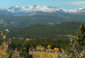 Golden Gate Canyon is home to Golden Gate State Park, which is located in Gilpin and Jefferson Counties northwest of Golden Colorado. The 11,998 acre Front Range Park was established in 1960, has 36 miles of hiking trails. Wetland & riparian plant communities are found along Ralston, Nott and Deer Creeks and small ponds within the park. Ponderosa Pine, Rocky Mountain Junipers, Douglas Fir, & Aspen are in the forested areas. There are residential homes and ranches in areas of Golden Gate Canyon.