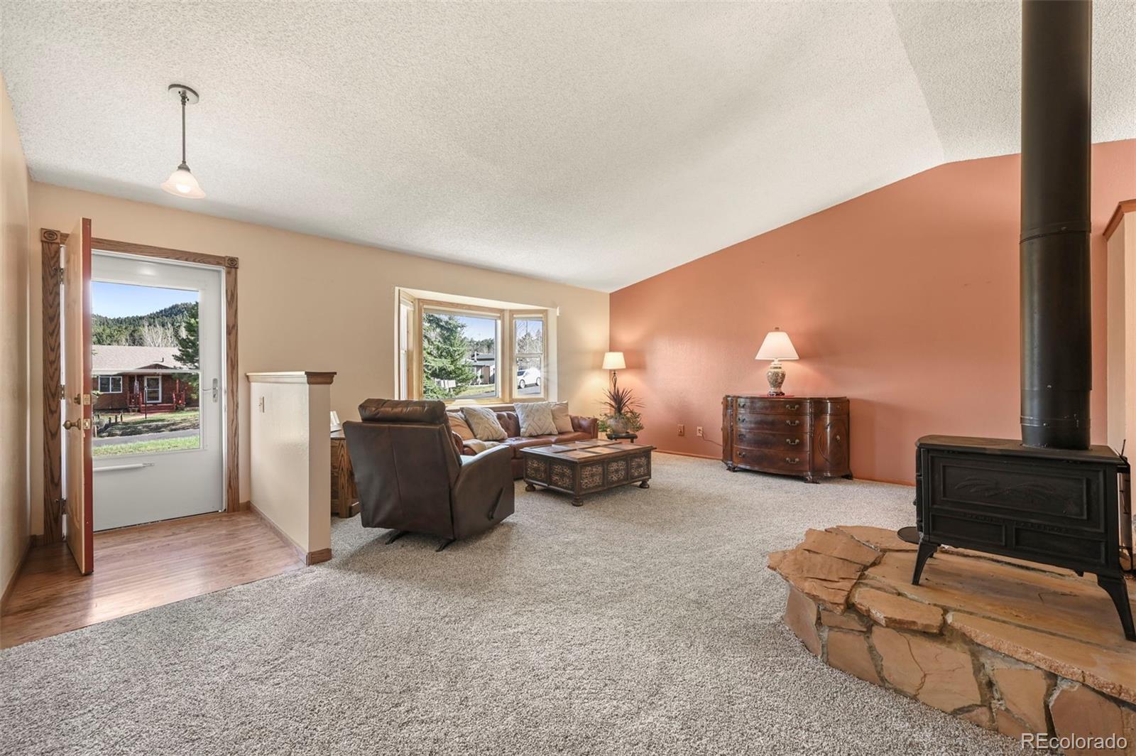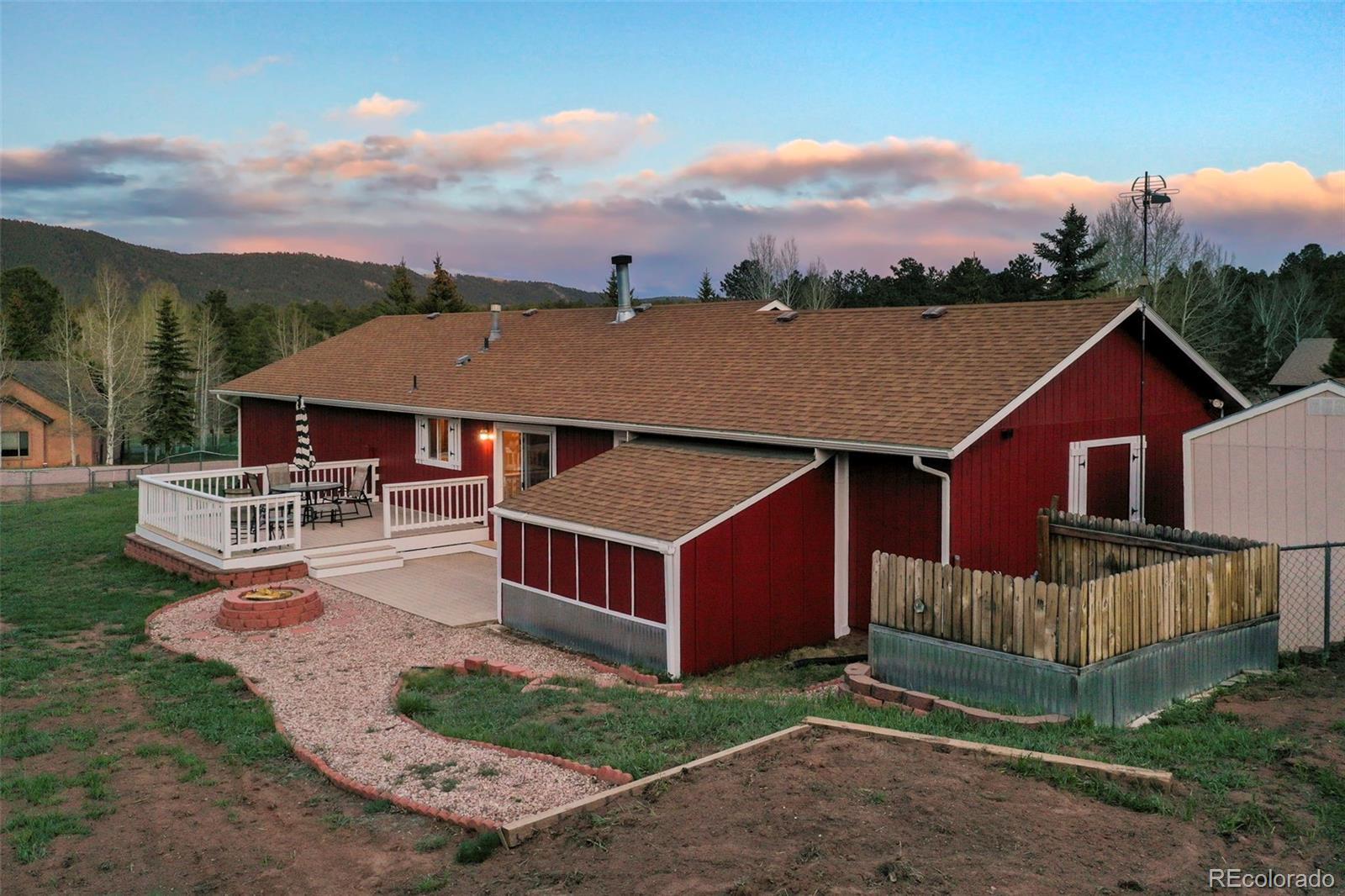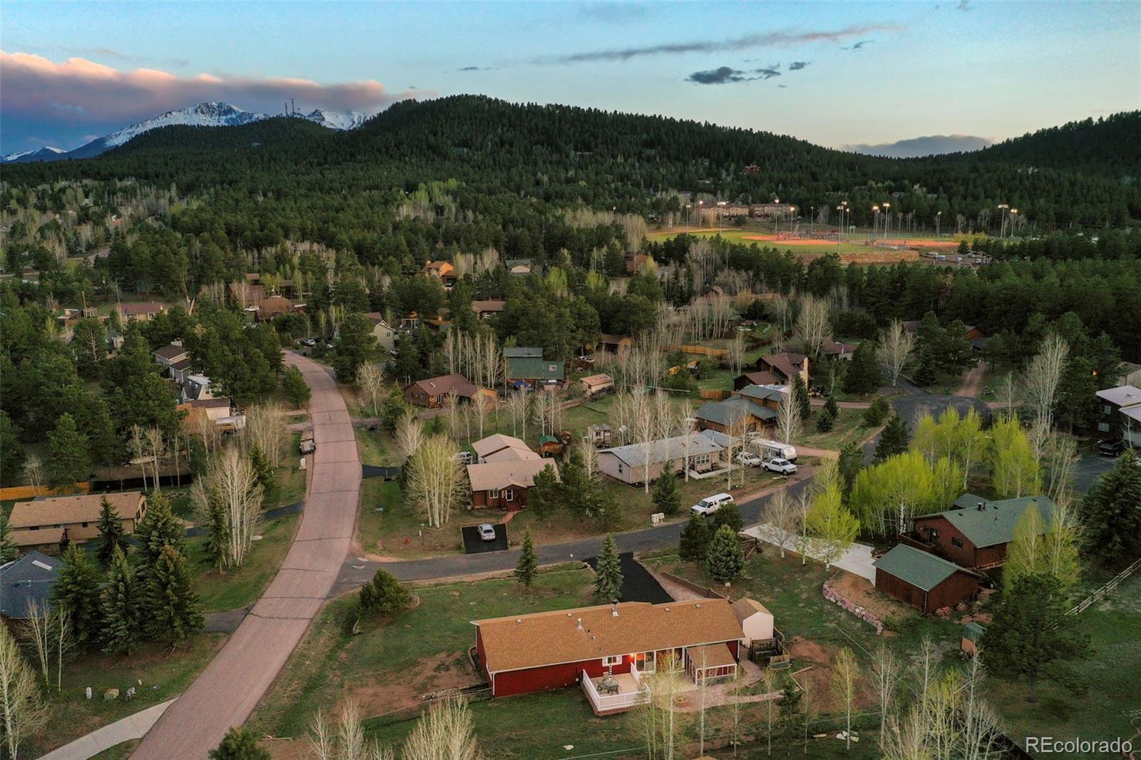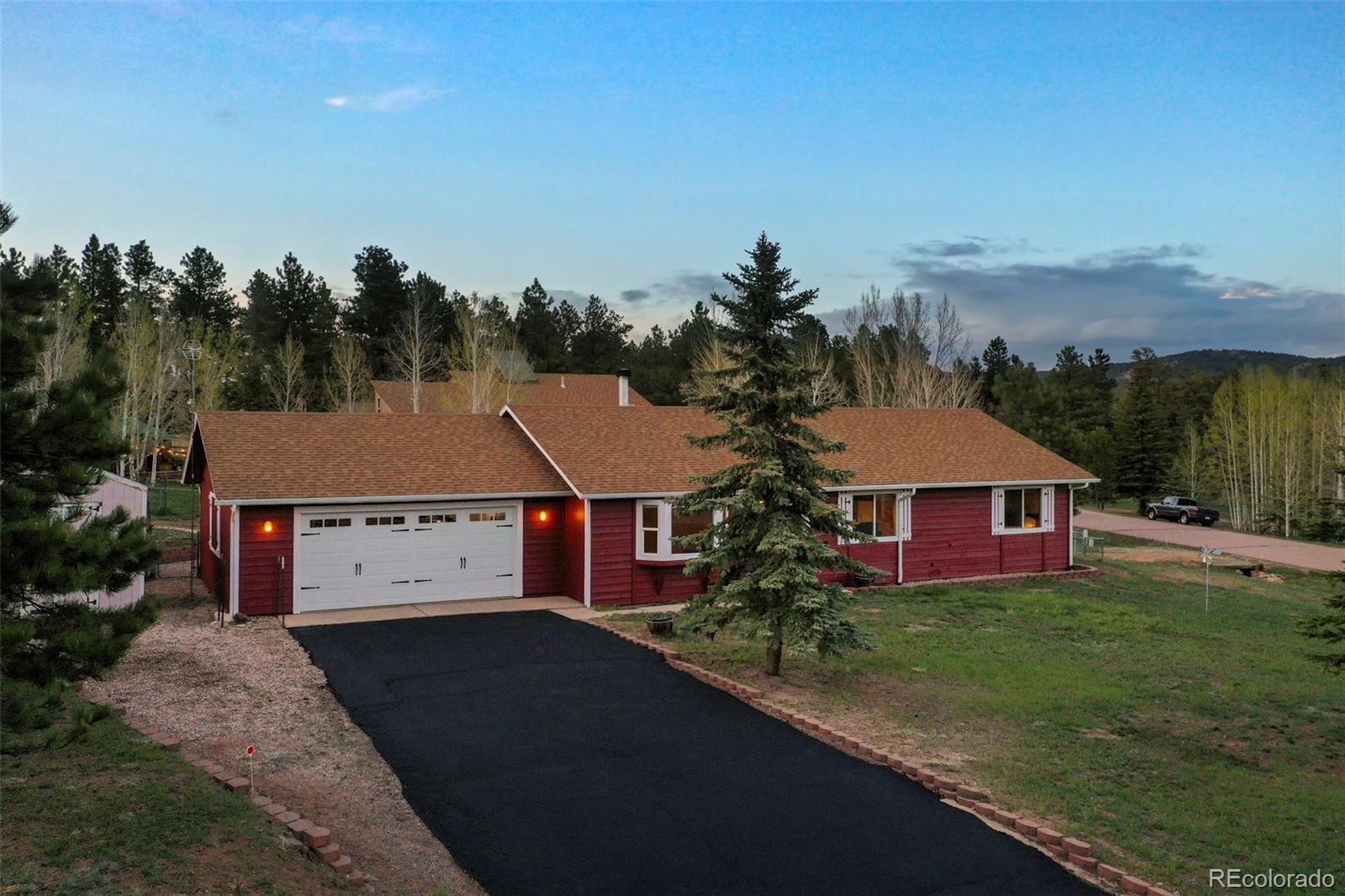 Tucked away on a quiet cul-de-sac and sitting proudly on a corner lot, this move-in-ready home blends comfort, convenience, and thoughtful updates throughout. Step inside to find main level living at its best, with brand new carpet underfoot and hardwood floors flowing through the entry, kitchen, and dining area. Vaulted ceilings add a spacious feel, while the wood-burning stove creates a cozy focal point perfect for cooler mountain evenings. The kitchen comes equipped with brand new appliances and connects seamlessly to the dining space, ideal for everyday meals or entertaining. Each bedroom features custom closet systems, maximizing organization and storage. Out back, a fully fenced yard offers space to relax, play, and gather. Enjoy evenings around the firepit, and take full advantage of the two-tier composite deck—perfect for creating distinct entertaining zones, whether you're hosting dinner or lounging under the stars. Two storage sheds add convenience, and RV parking ensures space for your toys or trailers. The oversized two-car garage is a hobbyist’s dream, complete with built-in cabinetry, a workbench, and extra space to spread out. With fresh exterior paint and a brand new driveway, this home offers curb appeal and peace of mind. Located just minutes from Meadow Wood Sports Complex and downtown Woodland Park, this home checks all the boxes for comfort, practicality, and location.