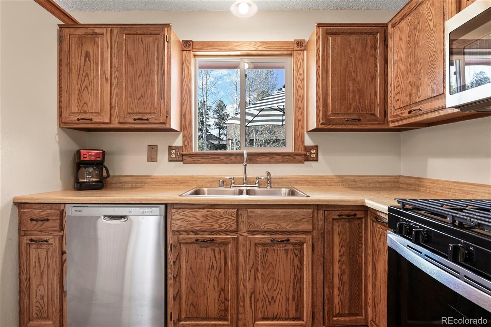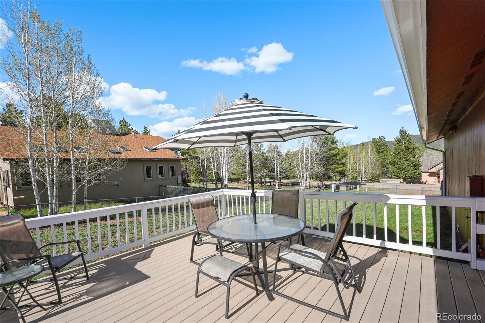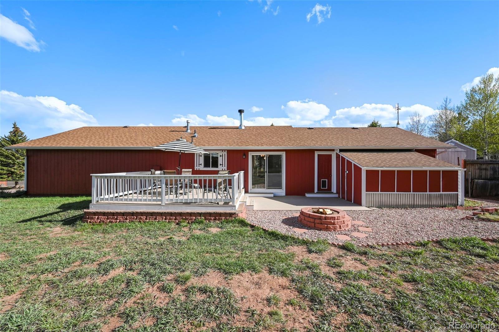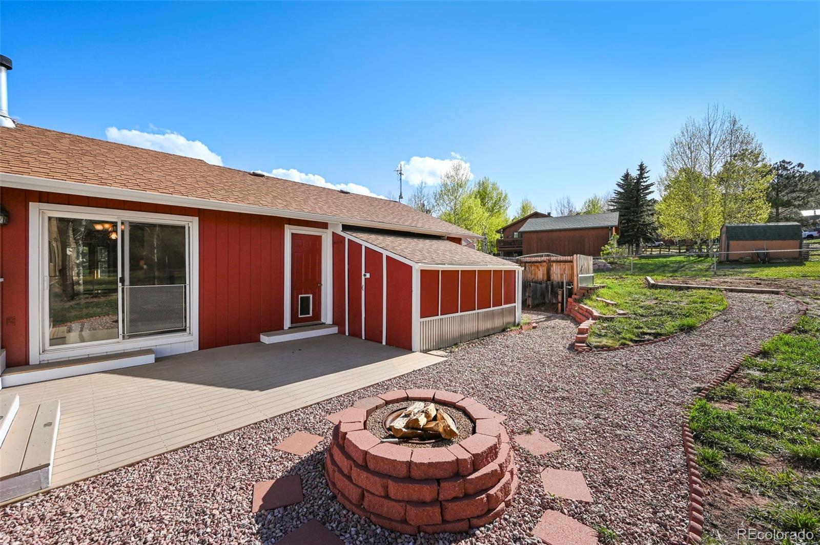 Tucked away on a quiet cul-de-sac and sitting proudly on a corner lot, this move-in-ready home blends comfort, convenience, and thoughtful updates throughout. Step inside to find main level living at its best, with brand new carpet underfoot and hardwood floors flowing through the entry, kitchen, and dining area. Vaulted ceilings add a spacious feel, while the wood-burning stove creates a cozy focal point perfect for cooler mountain evenings. The kitchen comes equipped with brand new appliances and connects seamlessly to the dining space, ideal for everyday meals or entertaining. Each bedroom features custom closet systems, maximizing organization and storage. Out back, a fully fenced yard offers space to relax, play, and gather. Enjoy evenings around the firepit, and take full advantage of the two-tier composite deck—perfect for creating distinct entertaining zones, whether you're hosting dinner or lounging under the stars. Two storage sheds add convenience, and RV parking ensures space for your toys or trailers. The oversized two-car garage is a hobbyist’s dream, complete with built-in cabinetry, a workbench, and extra space to spread out. With fresh exterior paint and a brand new driveway, this home offers curb appeal and peace of mind. Located just minutes from Meadow Wood Sports Complex and downtown Woodland Park, this home checks all the boxes for comfort, practicality, and location.