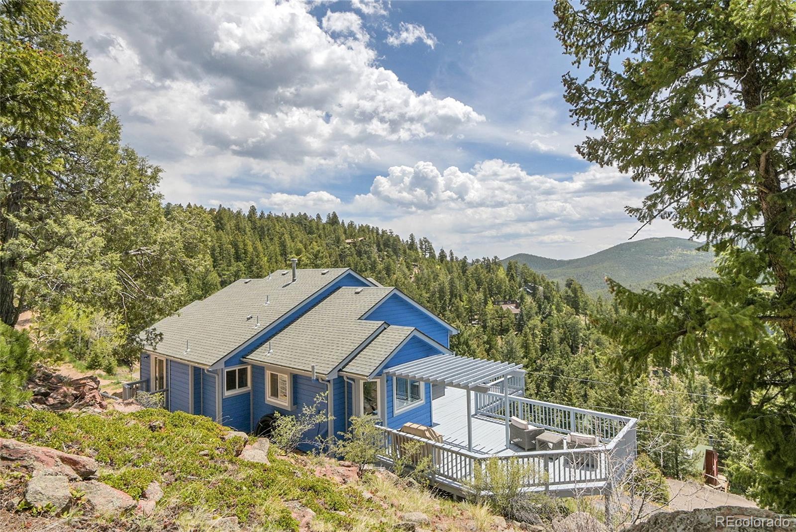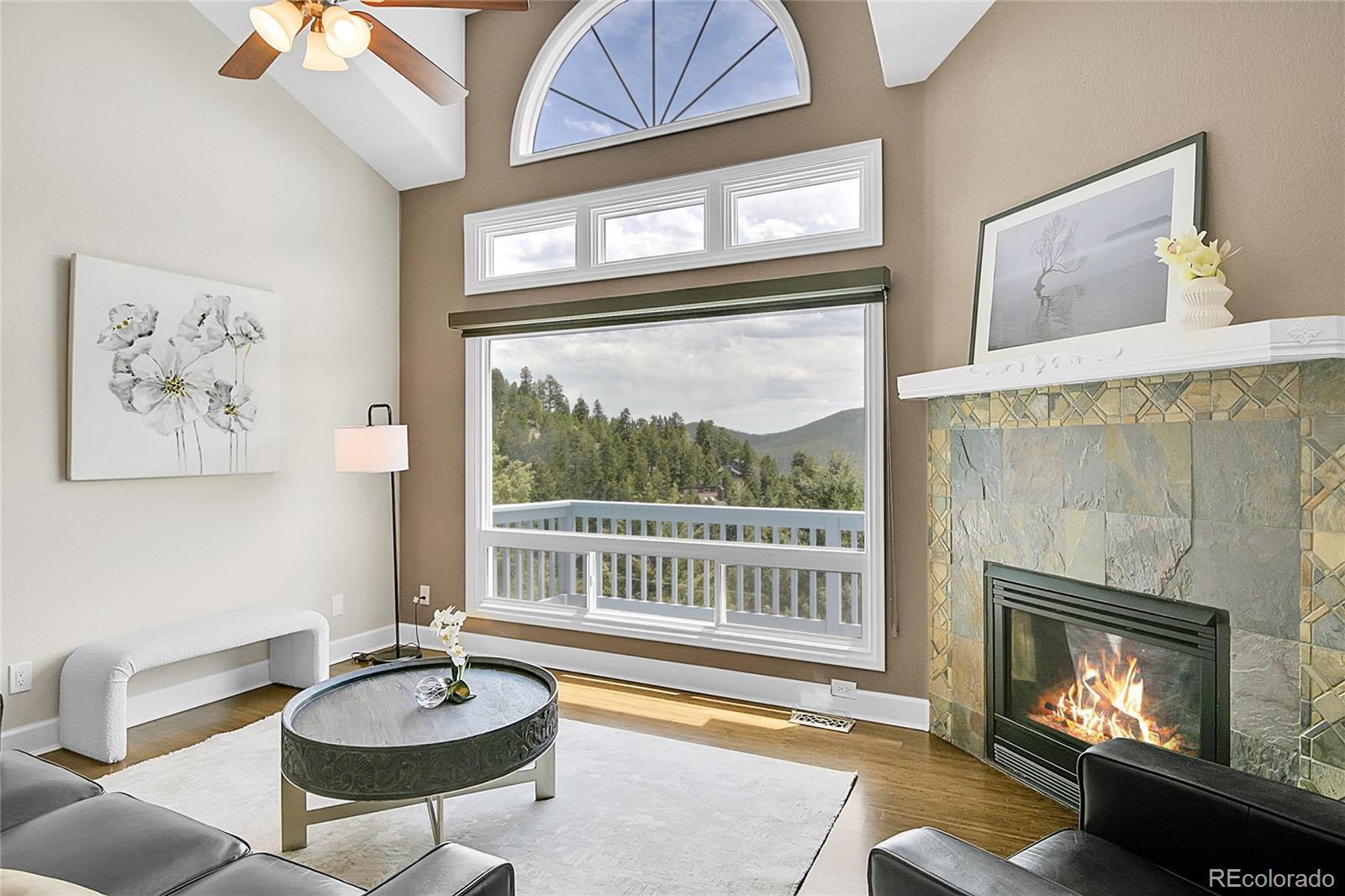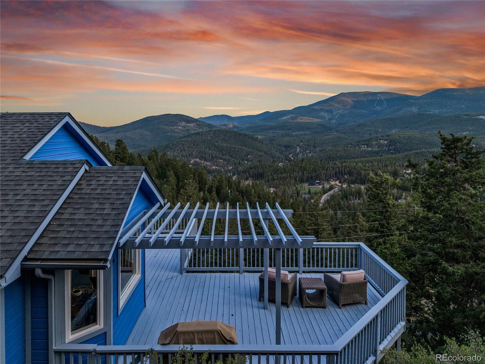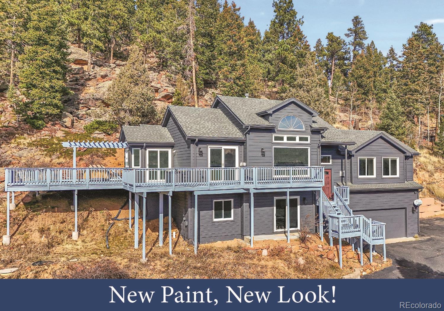 Seller is offering at 15,000 concession in addition to this price improvement! Explore this beautiful Evergreen home via video & 3D tour at www.33633ElkRun.com. (Note that the home is now painted gray!) Mountain views from every window, a spacious deck & modern upgrades make this your perfect Colorado escape. This move-in ready home is perfect for nature lovers and remote workers, as it blends privacy and beauty with modern comfort. Inside, you'll find bright, open main-level living with beautiful bamboo flooring & a large view window to take in the sweeping scenery. The main level also offers an oversized primary suite w/ fireplace & luxurious spa-inspired bathroom with steam shower & walk-in closet. The newly updated modern kitchen features quartz countertops, brand-new appliances, large pantry closet, breakfast nook & bar seating. Step out onto the expansive deck, where there's ample space for lounging, dining, & soaking in the beauty of outdoor living. A second ensuite bedroom w/ walk-in closet & double doors can serve beautifully as a home office. Downstairs, the bright walk-out lower level features a media/family room with exterior access, & a flex space/3rd bedroom with generous closet. A bathroom & large utility/storage room complete this level. The paved driveway has southern exposure that melts snow quickly & parking is abundant with an oversized 2 car garage & parking spaces outside. The home is exquisitely cared for and move-in ready with new furnace, newer high efficiency windows, high-end window shades throughout, new appliances, and more. High speed internet means working at home is effortless, & there are county maintained paved roads all the way to Golden (35 min) & metro Denver for easy commuting in both summer & winter. This is Colorado living at its best with miles of trails at Maxwell Falls & National Forest, all just 6 min away, only 13 min to amenities in Evergreen, & a little over an hour to DIA. Welcome to your mountain oasis!