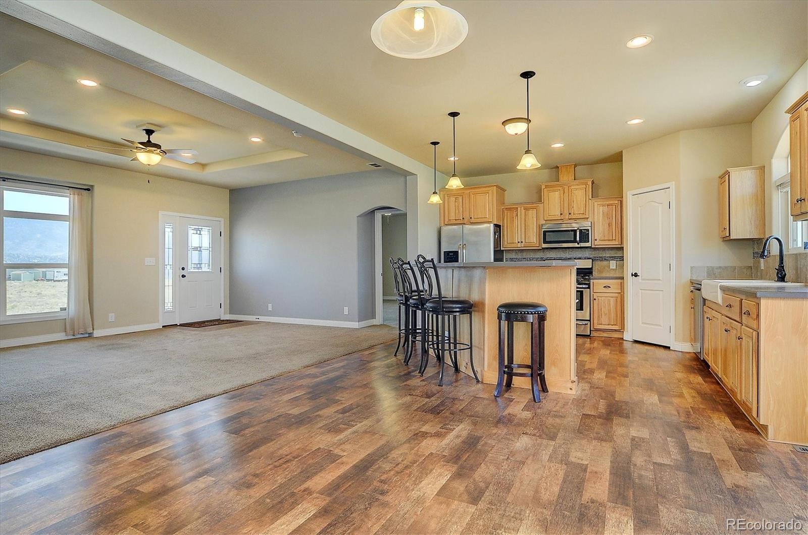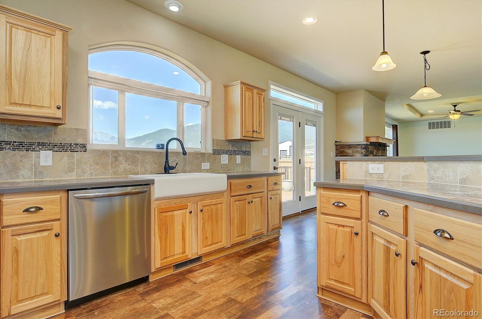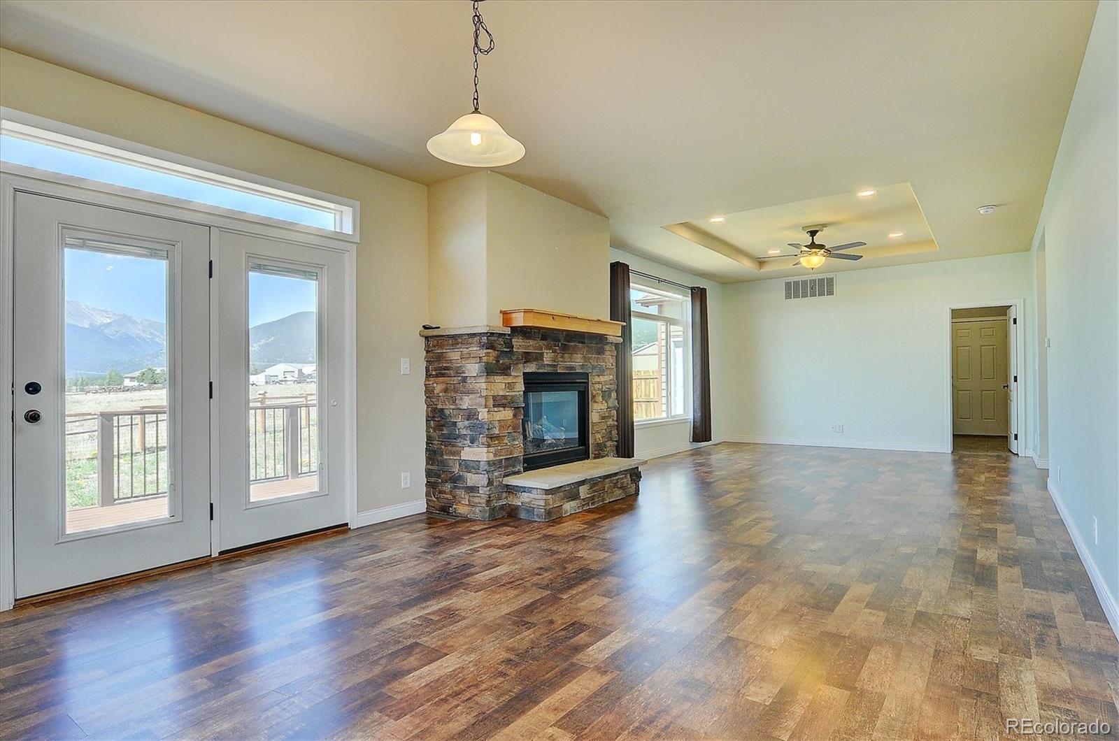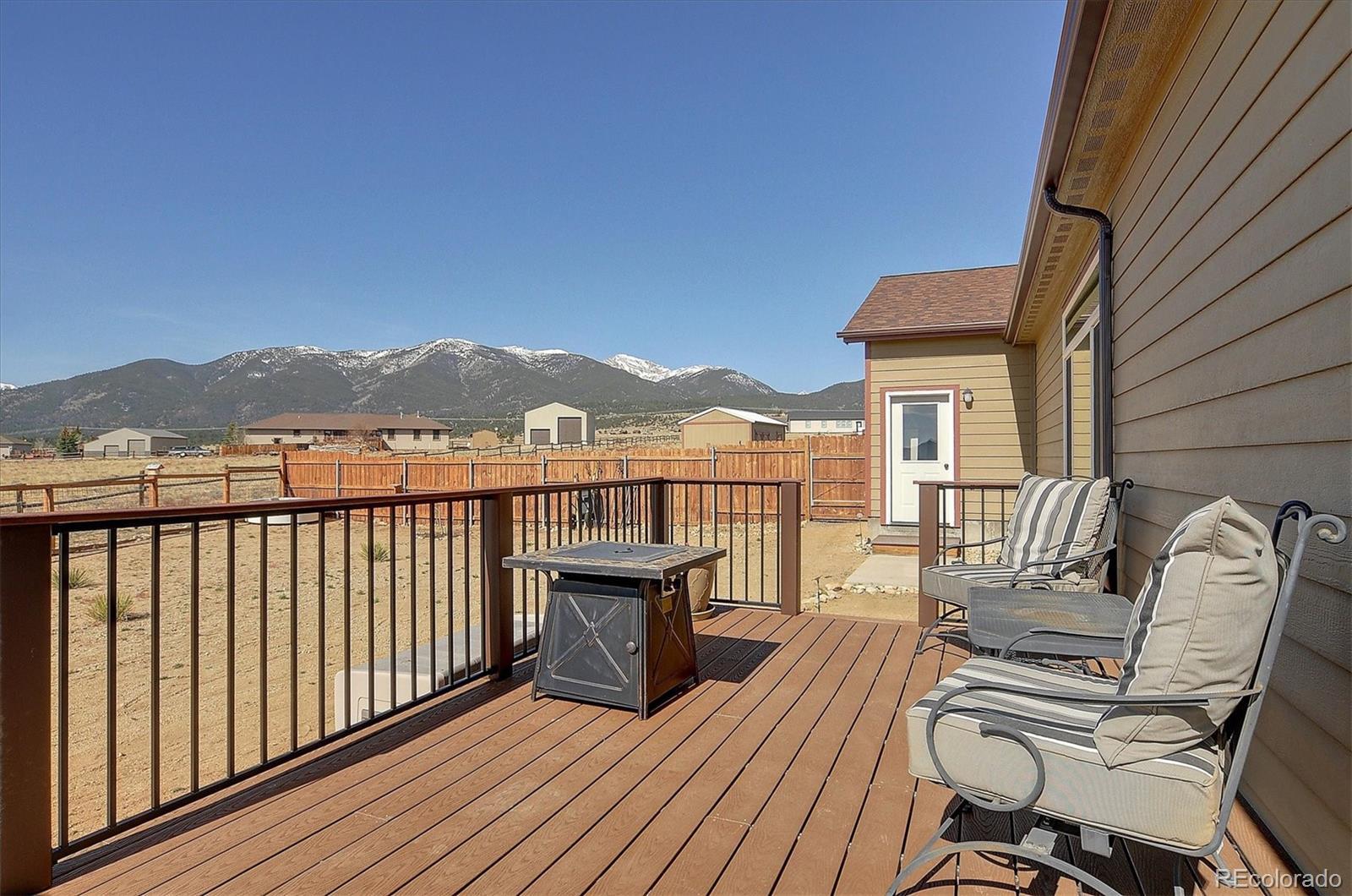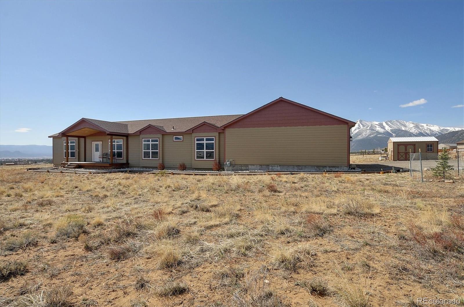 New price on this gorgeous and welcoming home with uninterrupted views of majestic Mt Princeton as your backdrop. Set on 1.32 acres, this 3-bedroom, 2-bath modular home blends comfort with wide open space, both inside and out. Step inside to an open concept layout that feels inviting from the moment you walk in. Entertaining is easy with the spacious living room flowing nicely into the dining area and second living space on the back of the house. The kitchen is the heart of the home with rich wood cabinets, a farm sink, a spacious center island, and a walk-in pantry ready for all your essentials. The family room is made for relaxing evenings, with a cozy fireplace and coffered ceilings that add a touch of elegance. Lovely primary bedroom offers a large area to relax with space for a home office, or TV area, and has a nice ensuite and plenty of storage. Two additional bedrooms are quite large and offer views of the surrounding mountains in addition to a full bath. A 10x20 Trex deck offers the perfect spot to take in the views or enjoy morning coffee as the sun rises over the mountains. Outside, the fenced yard gives room to roam while the property is augmented for outdoor watering and set up for RV living with septic and electrical service. With a new roof and gutters, a 3-car attached garage, 220 electric, and a handy storage shed, everything is ready for you. Whether you're entertaining, gardening, or just soaking up the mountain scenery, this peaceful property is where comfort meets Colorado beauty.