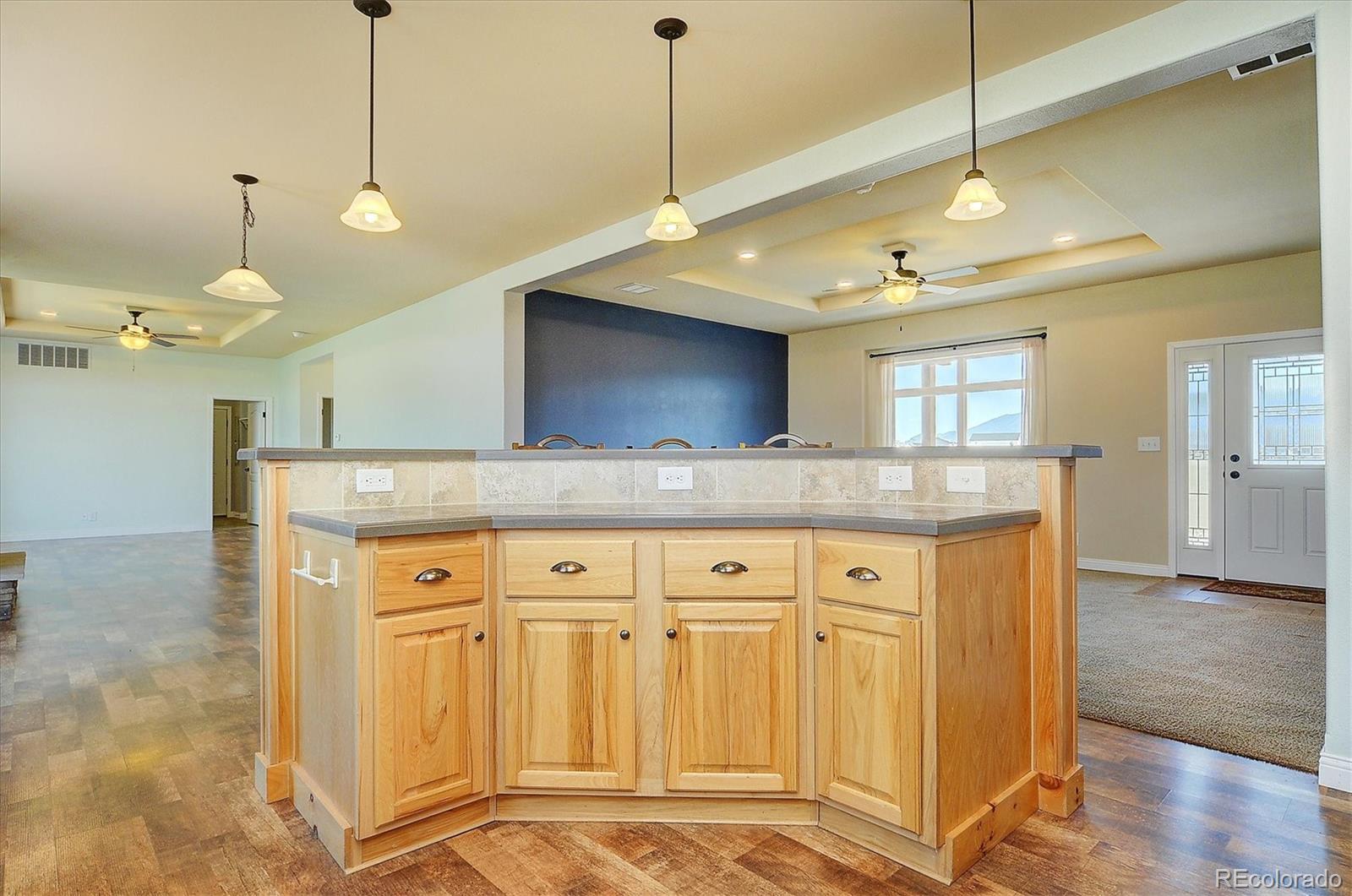 Ceiling Fan(s), Kitchen Island, Laminate Counters, Open Floorplan, Pantry, Primary Suite