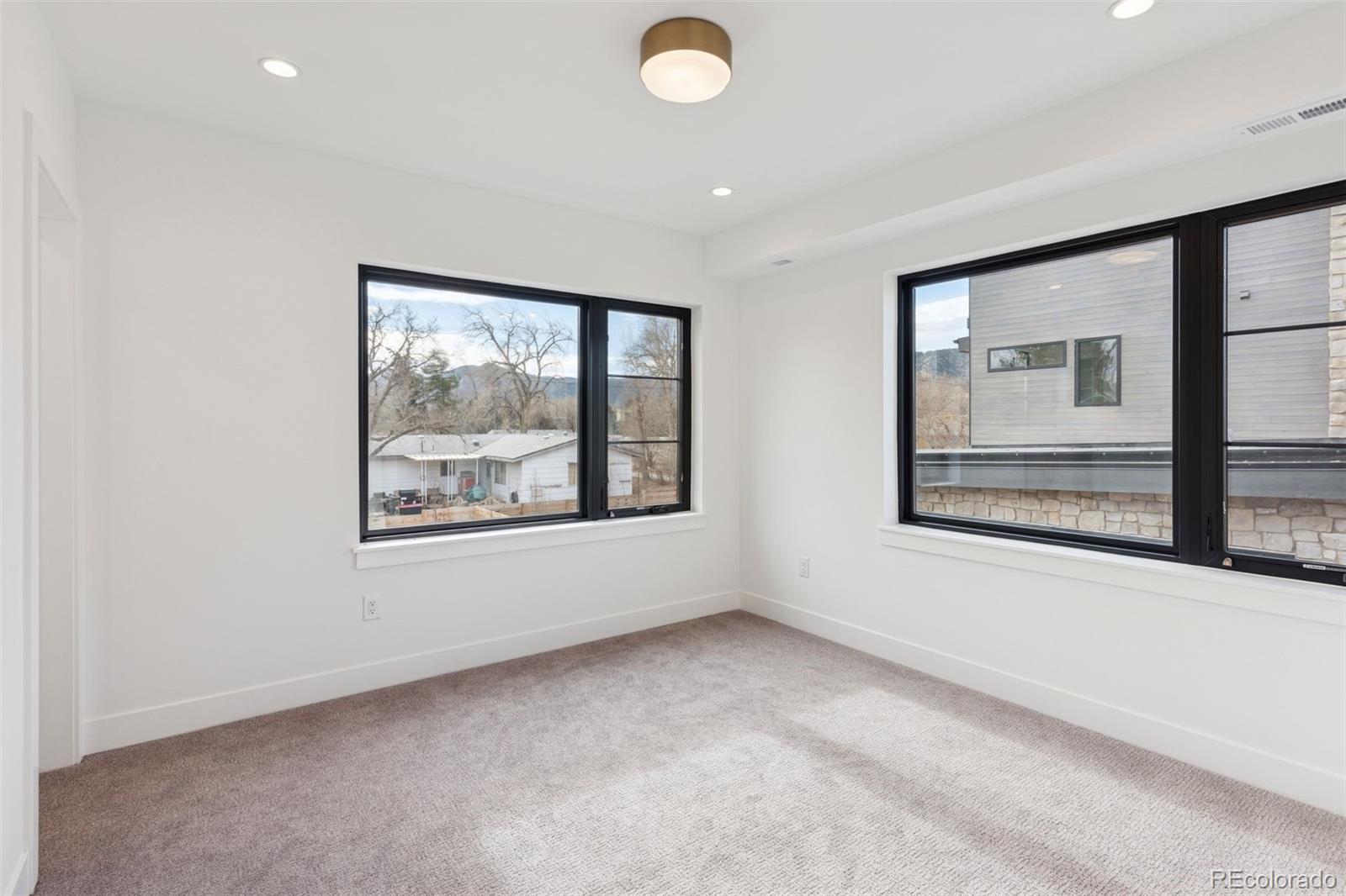 Soaring ceilings and expansive windows flood the interior with natural light, while vast sliding glass doors foster a seamless connection to the outdoors. The chef’s kitchen is a true showpiece, appointed with high-end Wolf and Sub-Zero appliances, sleek custom cabinetry and an elegant dining space crowned by a contemporary chandelier. A standout feature of the main level is its versatility — a private office and a separate bedroom with an attached ¾ bath offer the option for dual work-from-home spaces or a dedicated guest suite. A spacious mudroom with generous storage enhances everyday functionality. Upstairs, the primary suite impresses with vaulted ceilings, a custom walk-in closet and a spa-worthy bath. The top floor reveals a flex space complete with a wet bar, powder room and access to an expansive rooftop deck showcasing panoramic views. A finished lower level offers a gym, recreation area and two guest suites. A fenced backyard, sprawling patio and detached two-car garage complete this rare Boulder gem.