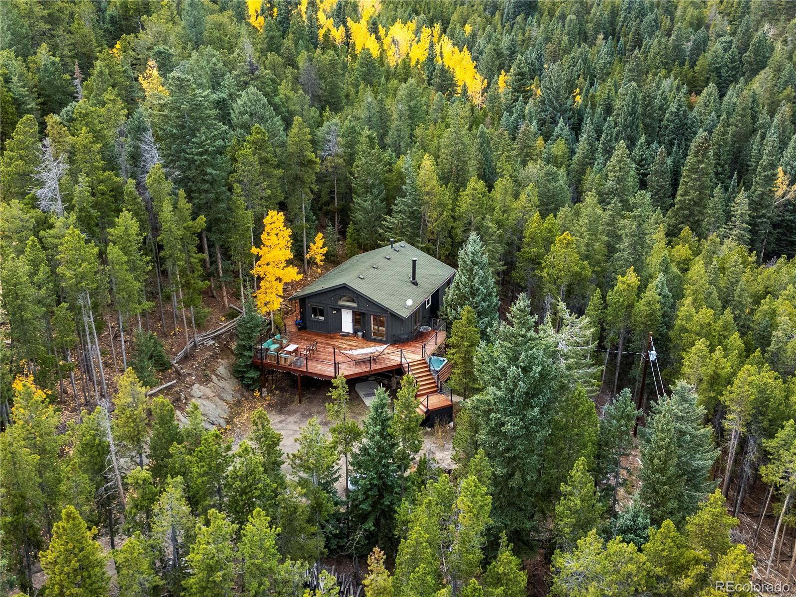Video Tour: https://shorturl.at/UlGVv Welcome to Mile High Magic — a cabin in the clouds that blends mountain serenity, modern comfort, and proven short-term rental success. (AirBnB Numbers Attached) Perched at roughly 9,000 feet in elevation, this quiet and magical retreat offers breathtaking views of the surrounding mountains and forested valley below. As you arrive, you’ll find plenty of parking and an inviting stairway leading to a spacious wraparound deck — over 900 square feet of outdoor living with market lights, multiple seating areas, and a private six-person hot tub for relaxing beneath the stars. Step inside and take in the vaulted ceilings, expansive windows that frame nature from every angle, and a warm wood-burning fireplace that anchors the living area. The kitchen features live-edge granite countertops, a blend of stainless and black appliances, and a sliding glass door that opens to the back side of the deck — creating effortless indoor-outdoor flow. The main level offers two well-appointed bedrooms and a full bath with peaceful forest views. Downstairs you’ll find two additional sleeping areas, including one with its own private entrance leading directly to the hot tub patio. Set on 1.2 secluded acres surrounded by evergreens, this home is being offered fully furnished and has operated as a proven guest favorite — a successful short-term rental with strong demand and excellent reviews. Whether you continue its success as a turn-key investment property or keep it as your private mountain escape, Mile High Magic delivers the perfect blend of comfort, income, and adventure.