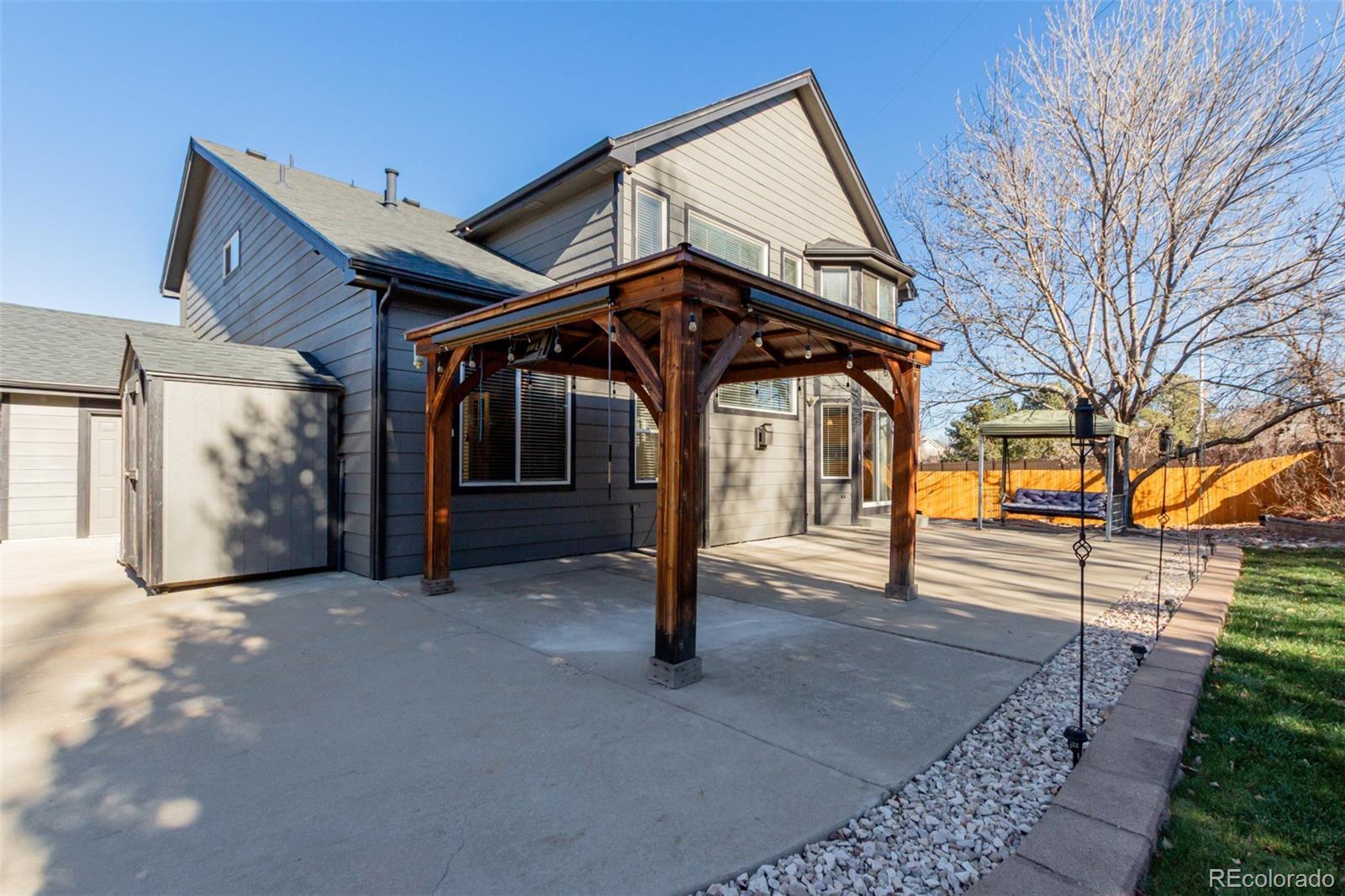 This is the one you’ve been waiting for! Discover comfort, style, and peace of mind in this beautifully updated 4-bedroom home. Perfectly tucked away in a peaceful cul-de-sac, this property offers added privacy, quiet surroundings, and a spacious 3-car garage(220 electric) accented with timeless stonework. You’ll love the fresh exterior paint, 2025 high-impact shingle roof, and new window screens throughout. The sewer line was recently replaced and cleaned! Inside, multiple inviting living spaces welcome you home. Enjoy a warm and cozy living room, an elegant formal dining room, and an airy family room with double-height ceilings that fill the home with natural light and a cozy fireplace. New bath light fixtures things up! The well-appointed kitchen offers abundant cabinetry, recessed lighting, tile countertops, a breakfast bar, and a breakfast nook with sliding glass doors leading to the backyard. You’ll also love the peace of mind provided by the new 2025 water heater. Retreat to the spacious primary suite, designed for true relaxation. It features a double-door entry, a charming bay window, and a refreshed ensuite with beautifully updated sinks and fun color-changing faucets that bring a playful, modern touch. You’ll also enjoy a large garden tub, perfect for unwinding with a relaxing bubble bath after a long day. A generous walk-in closet completes this inviting retreat. The French-door den is perfect for a home office or study, and the finished bonus room in the basement provides a versatile area for entertainment. Step outside to a backyard made for enjoying Colorado days. The pergola and peaceful swing create the ideal relaxation spot, while a charming gazebo and a convenient storage shed make the outdoor space both functional and inviting. Not to mention close to shopping, lots of restaurants and near I 25!! What’s not to love? Video tour COPY AND PASTE https://vimeo.com/1136855228?share=copy&fl=sv&fe=ci
