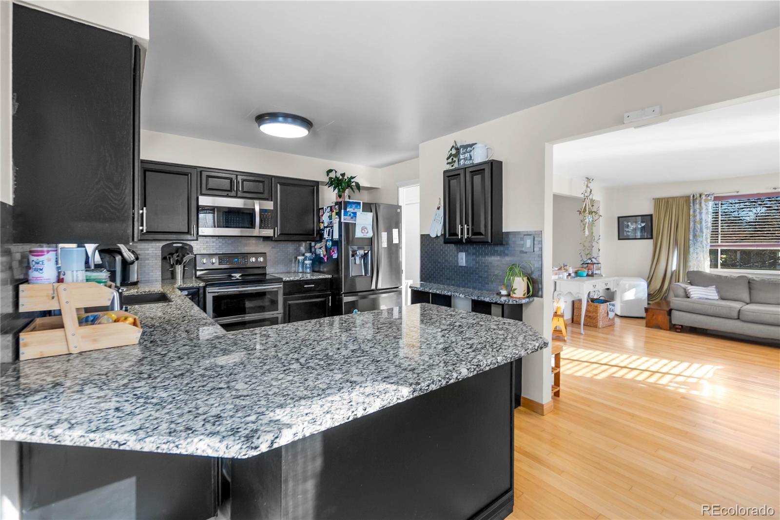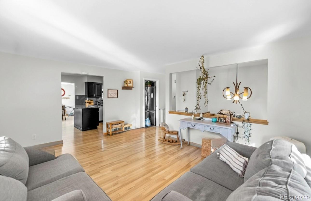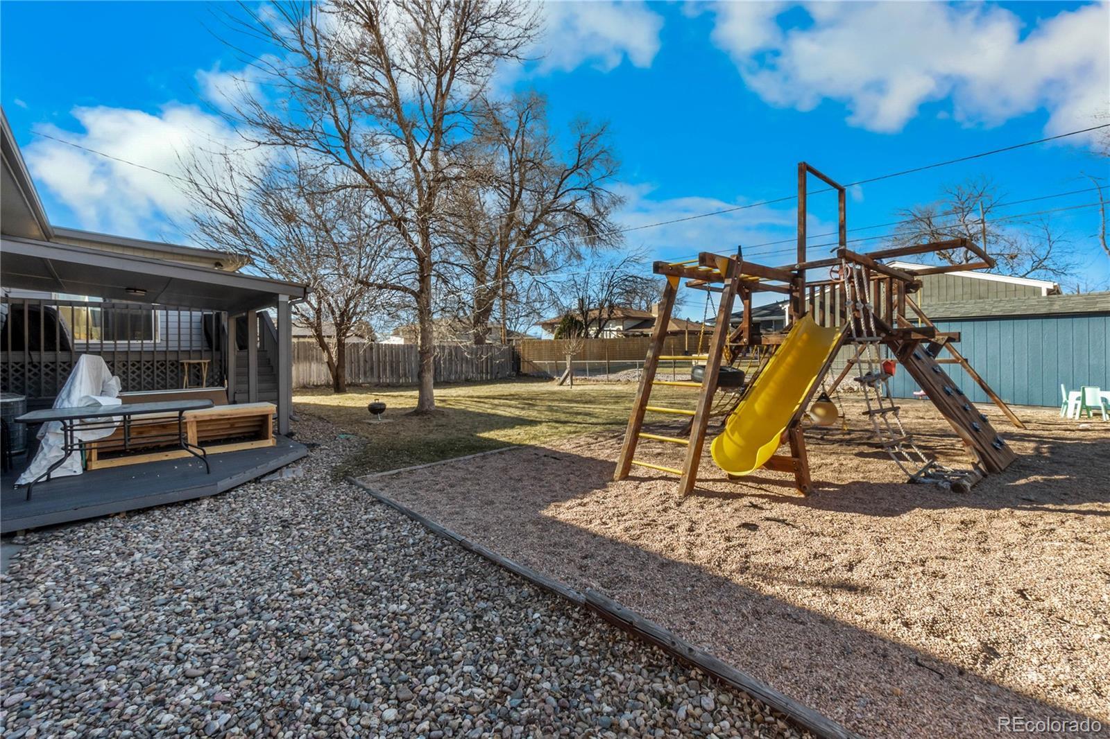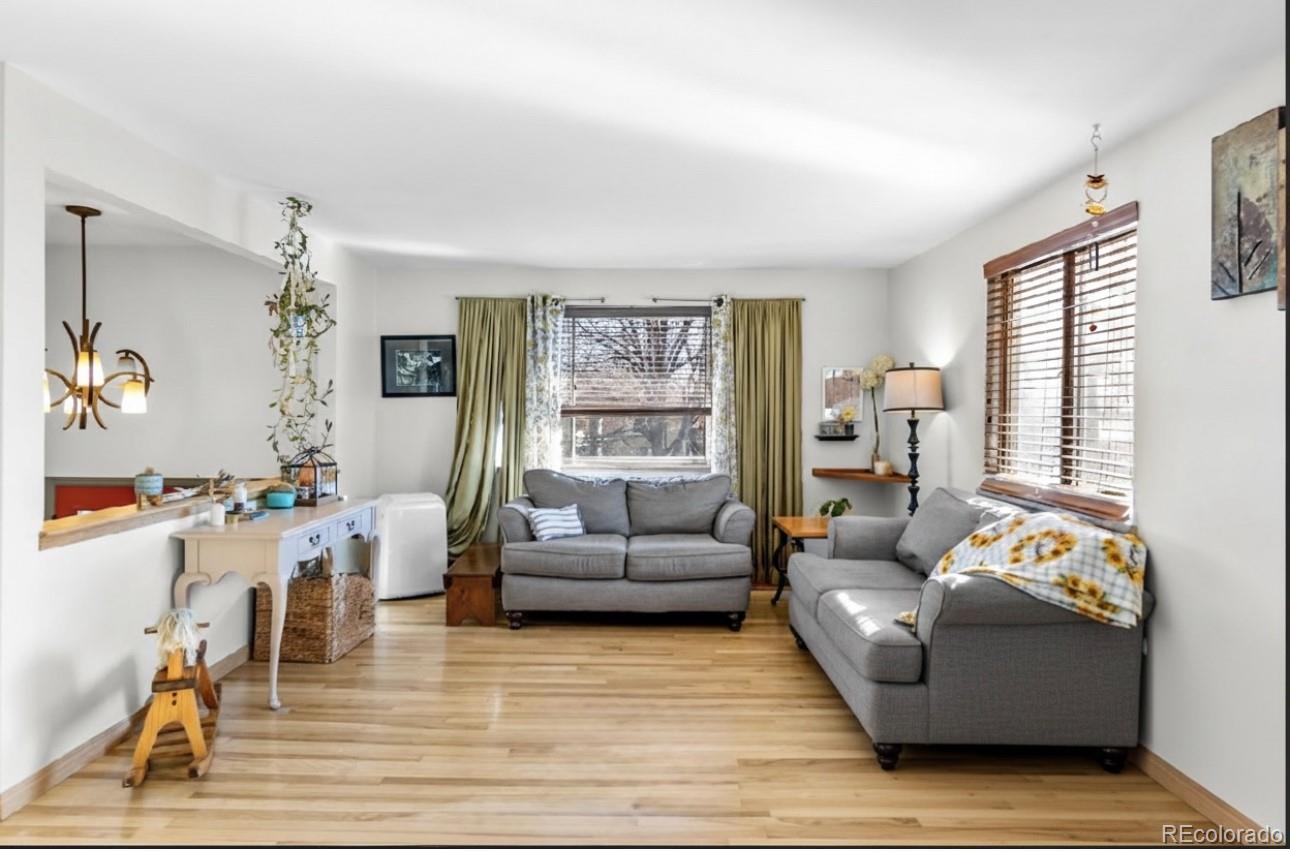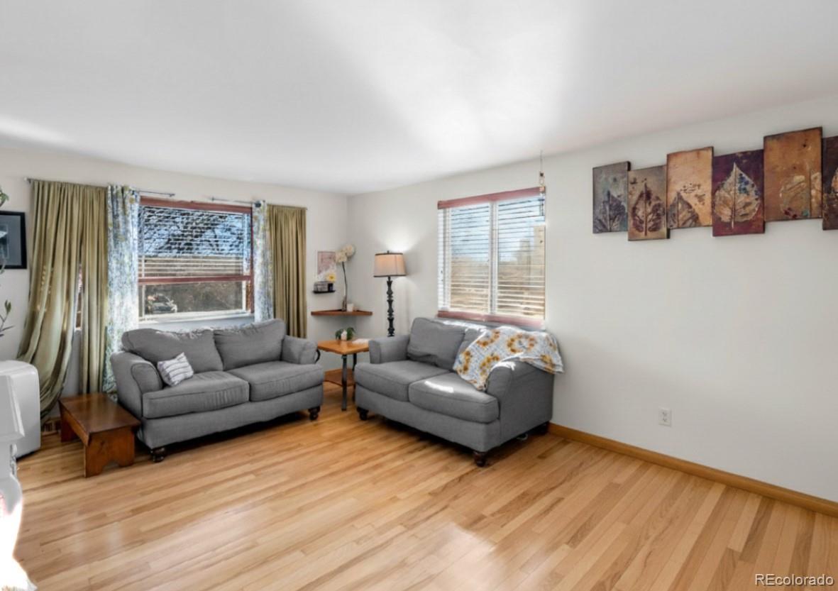 **ASSUMABLE LOAN WITH LOW INTEREST RATE** ---------------------- Welcome to this beautifully updated 5-bedroom, 2-bathroom home in the heart of Arvada! Blending comfort, style, and thoughtful upgrades, this home offers everything you need in a prime location. Step inside to find fresh interior paint, gorgeous wood flooring, and abundant natural light throughout. The kitchen features newer appliances, modern lighting, and a layout that flows effortlessly into the living and dining spaces, enjoy the sanctuary off of the kitchen in a cozy sunroom! Both bathrooms have been refreshed with reglazed tile, while recent mechanical upgrades include a NEWER FURNACE, HW HEATER, UPDATED ELECTRICAL PANEL AND A NEWER SEWER LINE offering peace of mind for years to come. The roof and gutters were recently replaced, and the home also includes a newer garage door, carpet, and energy-efficient insulation in both the garage and laundry room. The TREX deck provides a low-maintenance space perfect for entertaining, while the fully fenced backyard offers a playset, two storage sheds, and plenty of room to enjoy the outdoors. Additional features include: One-car garage with additional RV parking Newer front-load washer and dryer (included!) Updated landscaping with a sprinkler system and fresh front-yard rock Covered back patio and inviting front porch with a bench Radon mitigation system installed in 2023 Ample storage space in the attic and under the stairs Located in a sought-after neighborhood, this home is just a short walk from a top-rated elementary school, public transit, and scenic trails at Little Dry Creek. Enjoy close proximity to parks, Lake Arbor, King Soopers, local dining, and community favorites like Movies in the Park and events at the recreation center. This move-in-ready gem combines quality upgrades with unbeatable location. Don’t miss your chance, schedule your private showing today! Fifth bedroom is non conforming, can be used as a flex space, office or rec room.