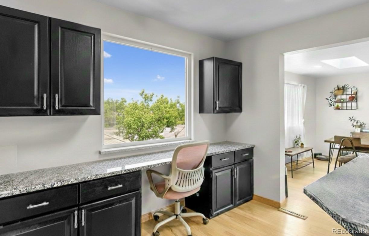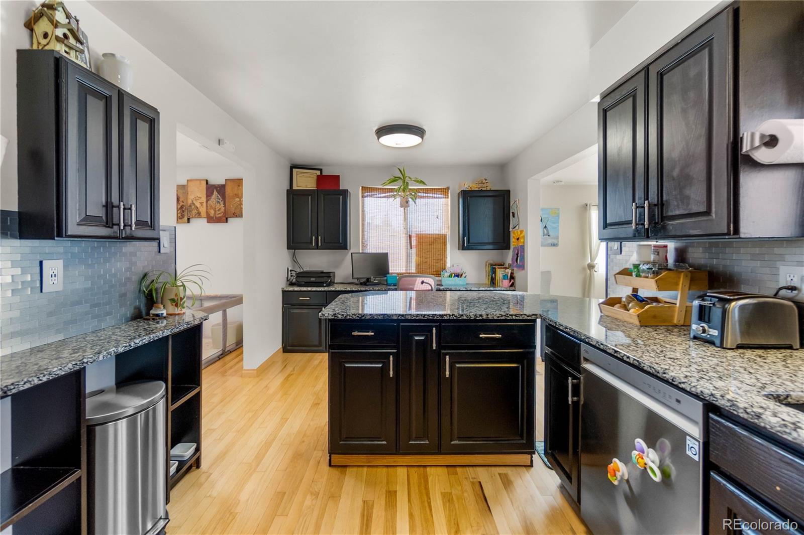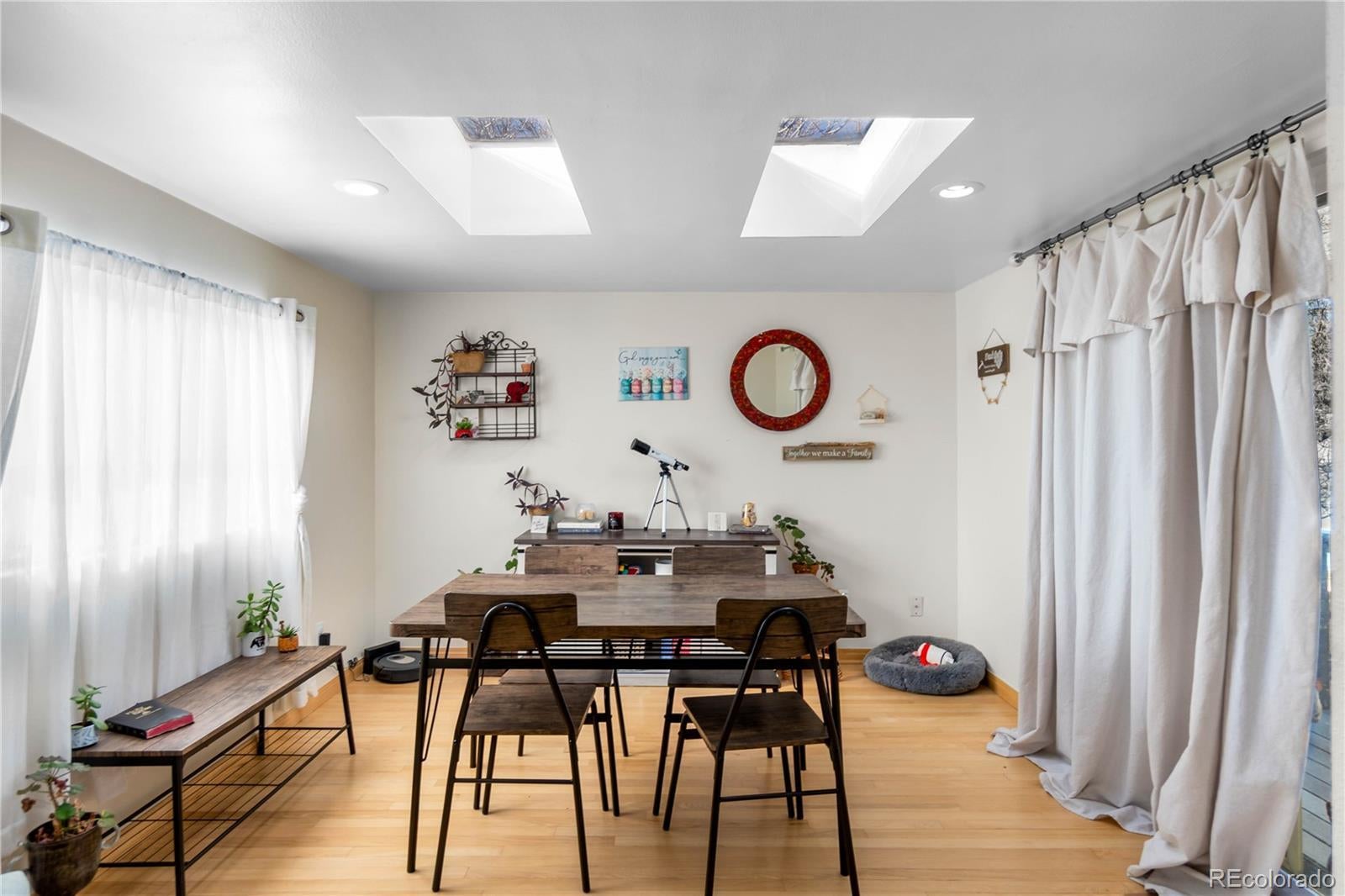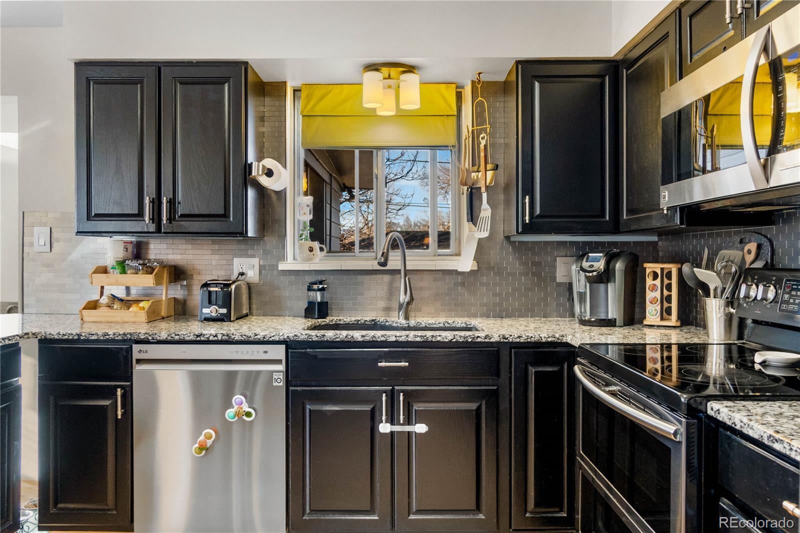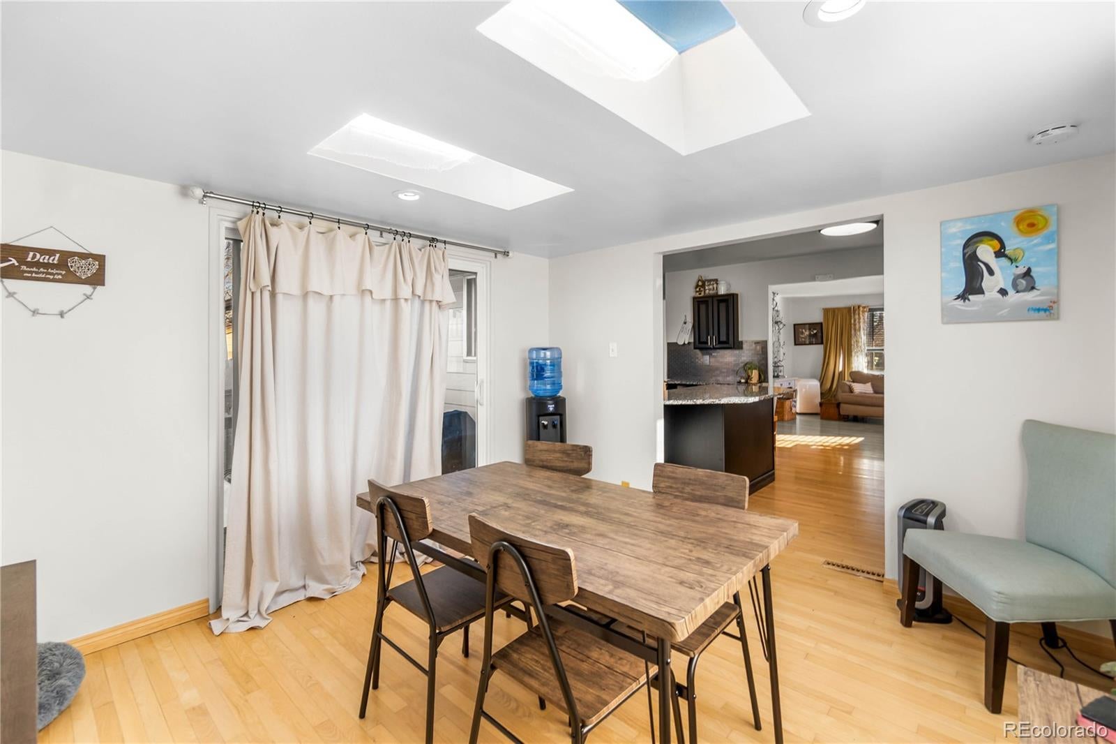 **ASSUMABLE LOAN WITH LOW INTEREST RATE** ---------------------- Welcome to this beautifully updated 5-bedroom, 2-bathroom home in the heart of Arvada! Blending comfort, style, and thoughtful upgrades, this home offers everything you need in a prime location. Step inside to find fresh interior paint, gorgeous wood flooring, and abundant natural light throughout. The kitchen features newer appliances, modern lighting, and a layout that flows effortlessly into the living and dining spaces, enjoy the sanctuary off of the kitchen in a cozy sunroom! Both bathrooms have been refreshed with reglazed tile, while recent mechanical upgrades include a NEWER FURNACE, HW HEATER, UPDATED ELECTRICAL PANEL AND A NEWER SEWER LINE offering peace of mind for years to come. The roof and gutters were recently replaced, and the home also includes a newer garage door, carpet, and energy-efficient insulation in both the garage and laundry room. The TREX deck provides a low-maintenance space perfect for entertaining, while the fully fenced backyard offers a playset, two storage sheds, and plenty of room to enjoy the outdoors. Additional features include: One-car garage with additional RV parking Newer front-load washer and dryer (included!) Updated landscaping with a sprinkler system and fresh front-yard rock Covered back patio and inviting front porch with a bench Radon mitigation system installed in 2023 Ample storage space in the attic and under the stairs Located in a sought-after neighborhood, this home is just a short walk from a top-rated elementary school, public transit, and scenic trails at Little Dry Creek. Enjoy close proximity to parks, Lake Arbor, King Soopers, local dining, and community favorites like Movies in the Park and events at the recreation center. This move-in-ready gem combines quality upgrades with unbeatable location. Don’t miss your chance, schedule your private showing today! Fifth bedroom is non conforming, can be used as a flex space, office or rec room.