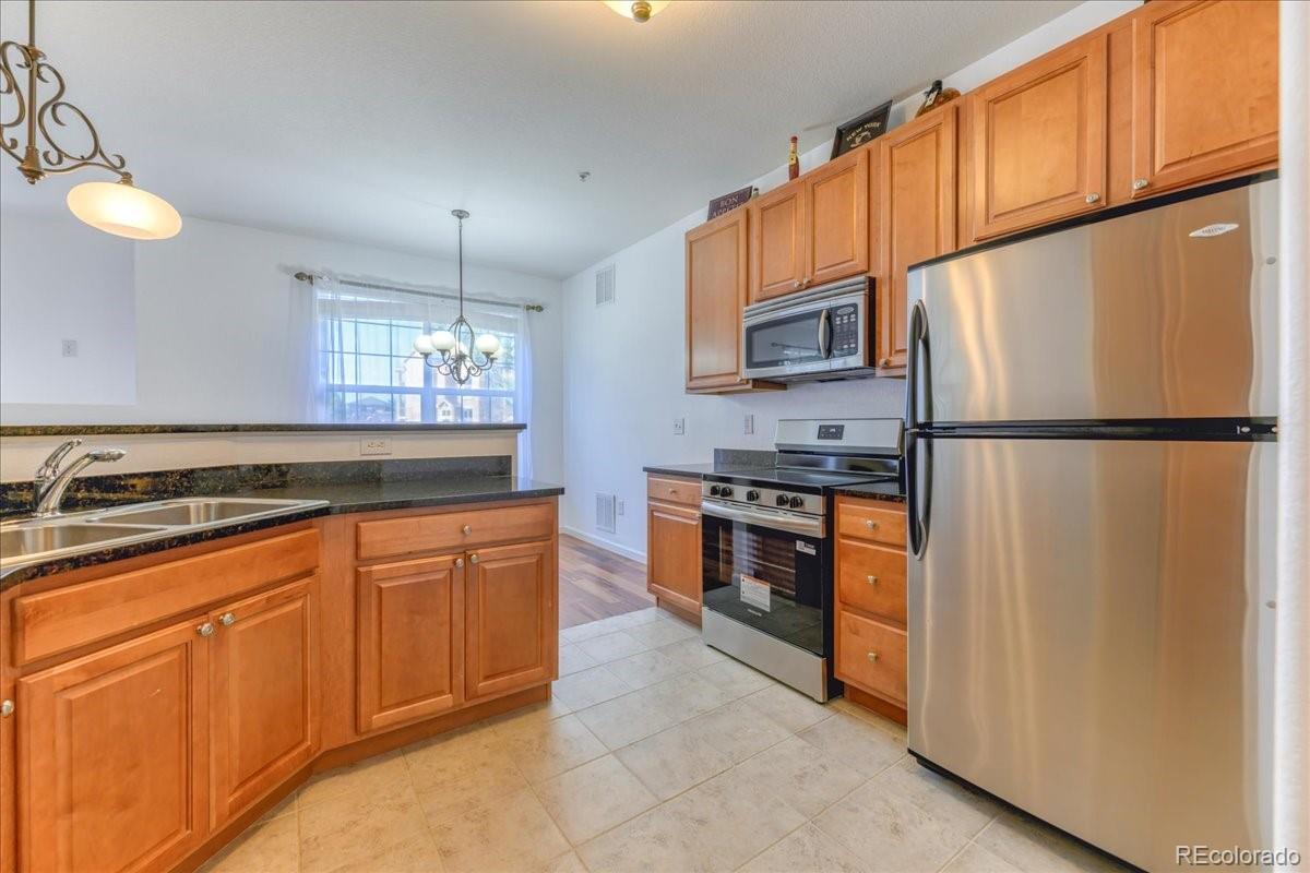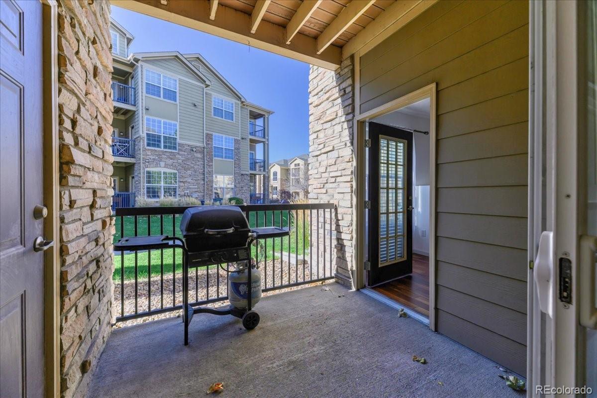 Experience effortless Colorado living in this beautifully updated condo in the sought-after Prairie Walk on Cherry Creek community. Now offered at a new REDUCED price. This is your chance to to secure a home before the Holidays with motivated seller open to strong offers. Designed for comfort and style, this ground-level residence offers an open-concept layout with recently refinished Brazilian Tigerwood floors, high ceilings, and an abundance of natural light. The spacious living room features a cozy gas fireplace and opens directly to one of two private patios—perfect for enjoying morning coffee or evening sunsets. The kitchen shines with granite countertops, a breakfast bar, and stainless-steel appliances, creating an ideal space for cooking and entertaining. Both bedrooms feature walk-in closets, ceiling fans, and direct patio access, while the primary suite includes a luxurious soaking tub and granite-topped vanity. With two full bathrooms, in-unit laundry, new paint throughout, and a detached garage that is included with the purchase of the unit every detail is designed for convenience. The garage CAN BE SOLD OR RENTED separately, at your convenience and generate additional income for you. Beyond your doorstep, the Prairie Walk community offers resort-style amenities including a large pool, fitness center, clubhouse, and playground. Step right onto the Cherry Creek Trail for a morning run, scenic bike ride, or leisurely weekend walk through the protected wetlands where deer often roam. Adjacent parks offer sand volleyball, picnic areas, and open green space—creating a true outdoor haven. Located just minutes from Cottonwood Park, local dining favorites, and the shops of Parker, you’ll enjoy quick access to E-470 for easy commuting and mountain getaways. Whether you’re a first-time homeowner, downsizer, or investor, this home delivers a lifestyle that perfectly blends recreation, relaxation, and community.