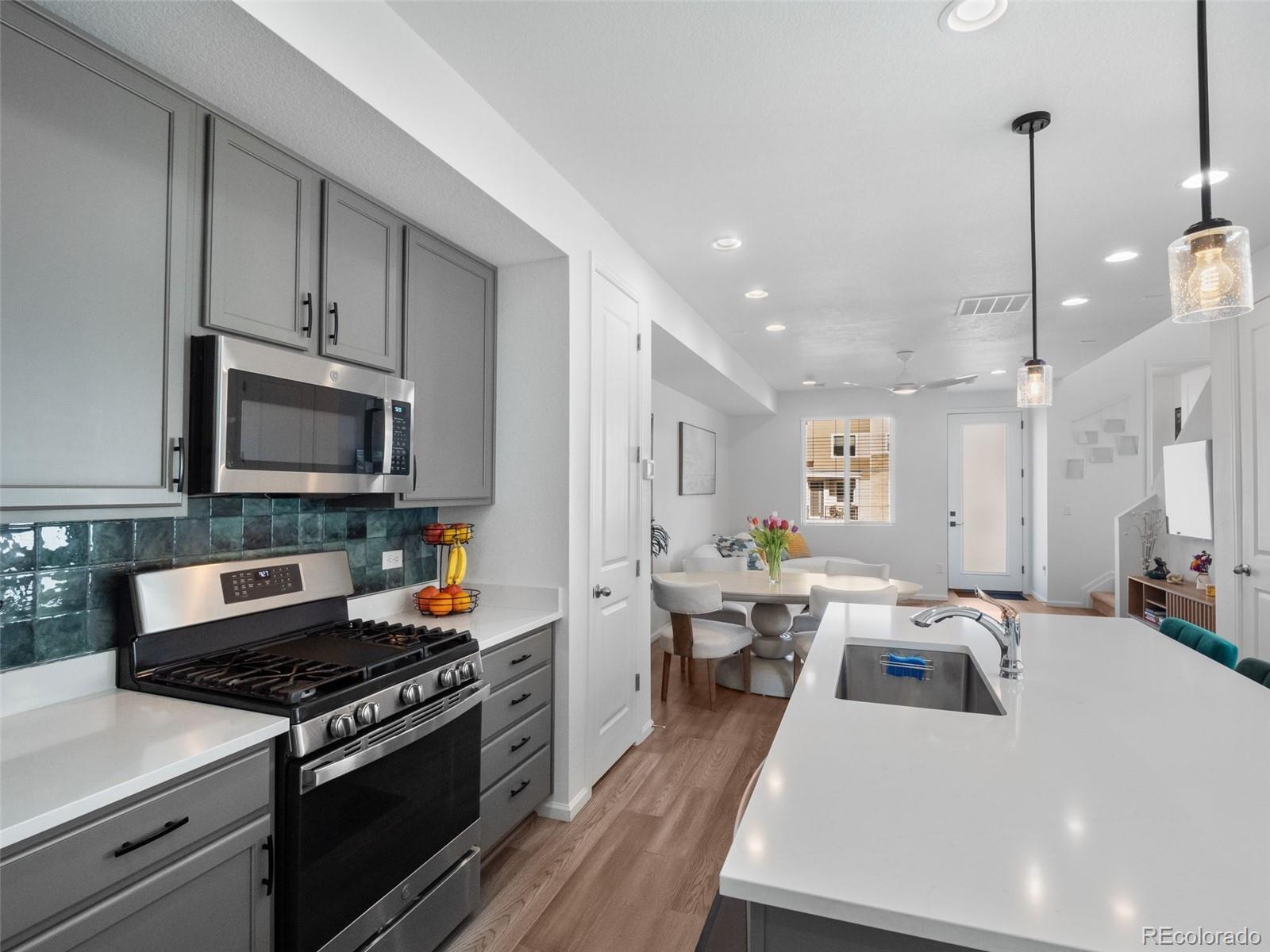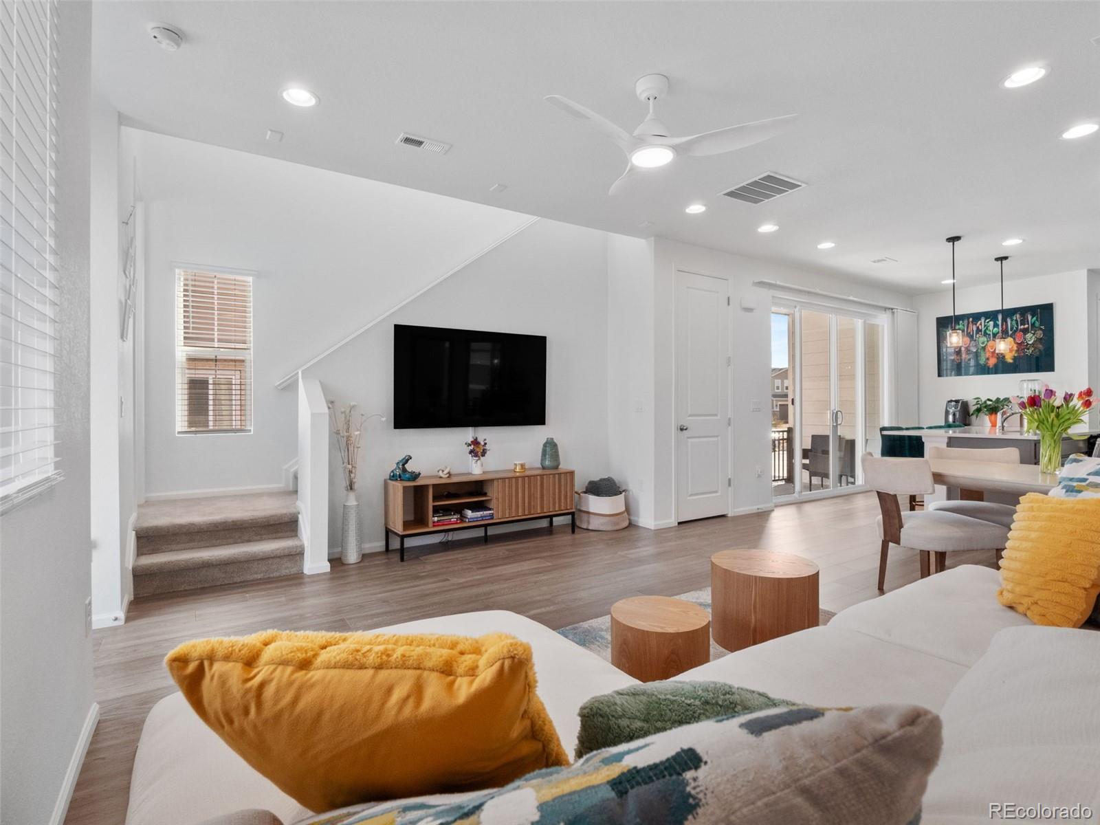 Welcome to refined, turnkey living in the highly sought-after Harmony community of Aurora. Wiilling to sell property FULLY FURNISHED with all accesories, applicances, and furniture. Great opportunity for turn-key living! This contemporary stone-accented duplex offers an open-concept floorplan designed for effortless everyday comfort and entertaining, featuring quartz countertops, a spacious kitchen island, smart appliances, pantry, and seamless flow between kitchen, dining, and living spaces. Upstairs, the sun-filled primary suite captures beautiful southern exposure with stunning sunrise and sunset views, complemented by two additional bedrooms and a full bath, plus a convenient main-level powder room. Built with efficiency and peace of mind in mind, the home includes a newer shingle roof (2023), owned solar panels, radon mitigation system, central A/C, smart thermostat, smart lighting, smart ceiling fans, double-pane windows, and attached garage. Enjoy outdoor living with a covered front porch, patio with a gas line for grilling, and front yard sprinkler system. Residents of Harmony enjoy resort-style amenities, including a clubhouse, pool, hot tub, fitness center, golf simulator, dog park, walking trails, and numerous parks throughout the neighborhood. Peaceful yet connected, this home offers a quiet, welcoming environment while remaining close to daily conveniences. With the option of be sold FULL FURNISHED, this is a rare opportunity to move right in and immediately enjoy a bright, comfortable, low-maintenance lifestyle in one of Aurora’s most thoughtfully designed communities.