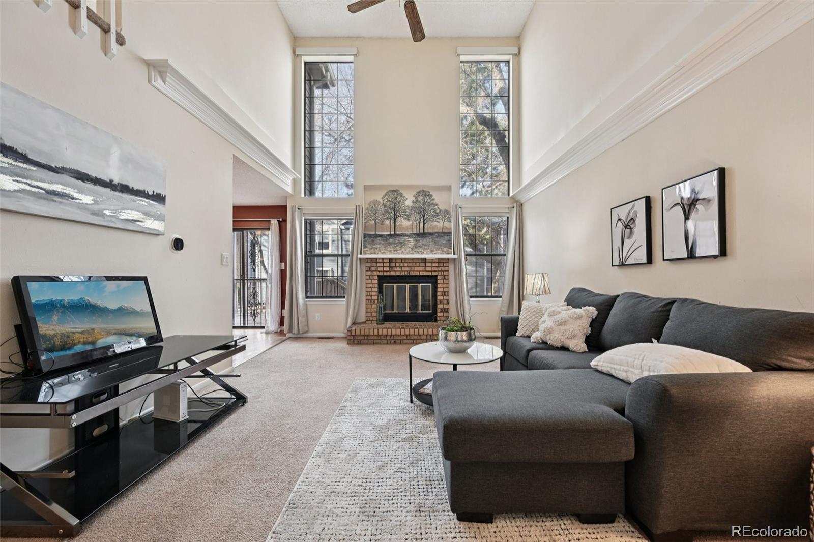 Awesome two-story townhome with a finished basement and two-car garage. Features vaulted ceilings, an open floor plan, walk-in closets, and a deck backing to a greenbelt. The two-story great room offers large windows and a cozy wood-burning fireplace. This home includes three bedrooms and four bathrooms, a nicely sized kitchen with adjacent dining area and all appliances included, a main-floor half bath, and a laundry closet with washer and dryer. Conveniently located near parks, schools, shopping, light rail, bus routes, the Aurora Municipal Center, and with easy access to I-225. Roof recently replaced by the HOA.