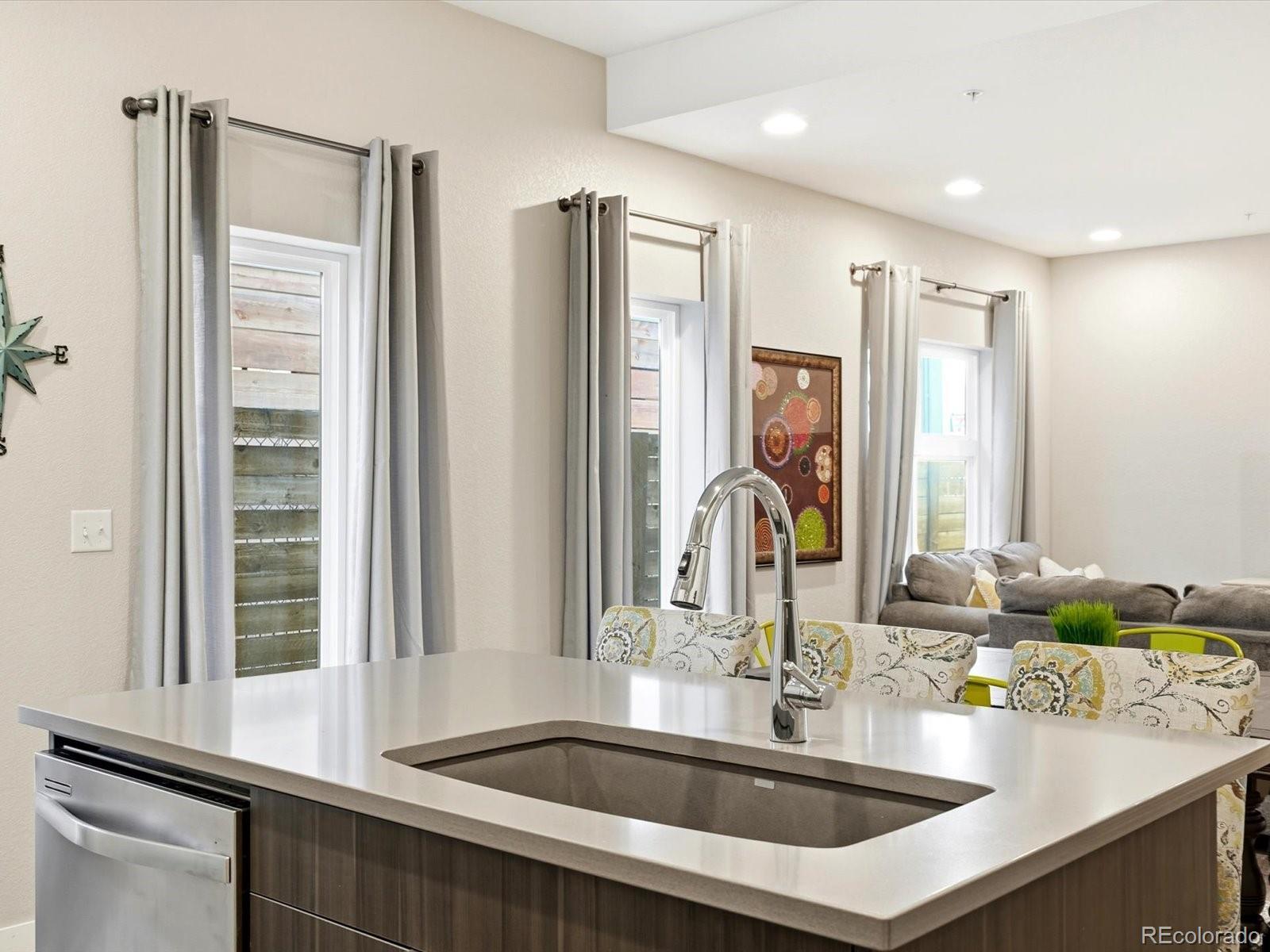 Quietly set back in the heart of Sloan’s Lake, this light-filled townhome offers a modern, low-maintenance lifestyle with thoughtful design and effortless flow. The open-concept main living level features laminate hardwood flooring throughout and a well-appointed kitchen with generous storage, making it ideal for both everyday living and easy entertaining. The second level is dedicated to the primary suite, complete with its own en suite bathroom, creating a comfortable and private retreat. Each bedroom is thoughtfully positioned on its own level, offering an ideal layout for privacy—perfect for roommates, guests, or work-from-home flexibility. The flexible third-level space serves beautifully as a second bedroom, home office, creative studio, workout room, or casual lounge. Crowning the home is the spacious rooftop deck, where expansive views set the stage for sunset evenings, intimate gatherings, and effortless entertaining. Designed for a true lock-and-leave lifestyle, this residence is ideal for professionals, frequent travelers, or anyone seeking simplicity without compromise. The home may also be sold fully furnished, offering a seamless move-in opportunity for the next owner. Located just blocks from Sloan’s Lake Park and moments from Edgewater Public Market, Alamo Drafthouse, Little Man Ice Cream, Odell Brewing, Sloan’s Lake Tap & Burger, and more—this is city living with neighborhood soul. From here, all of Denver is at your fingertips.