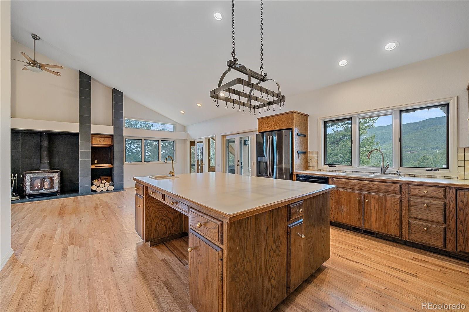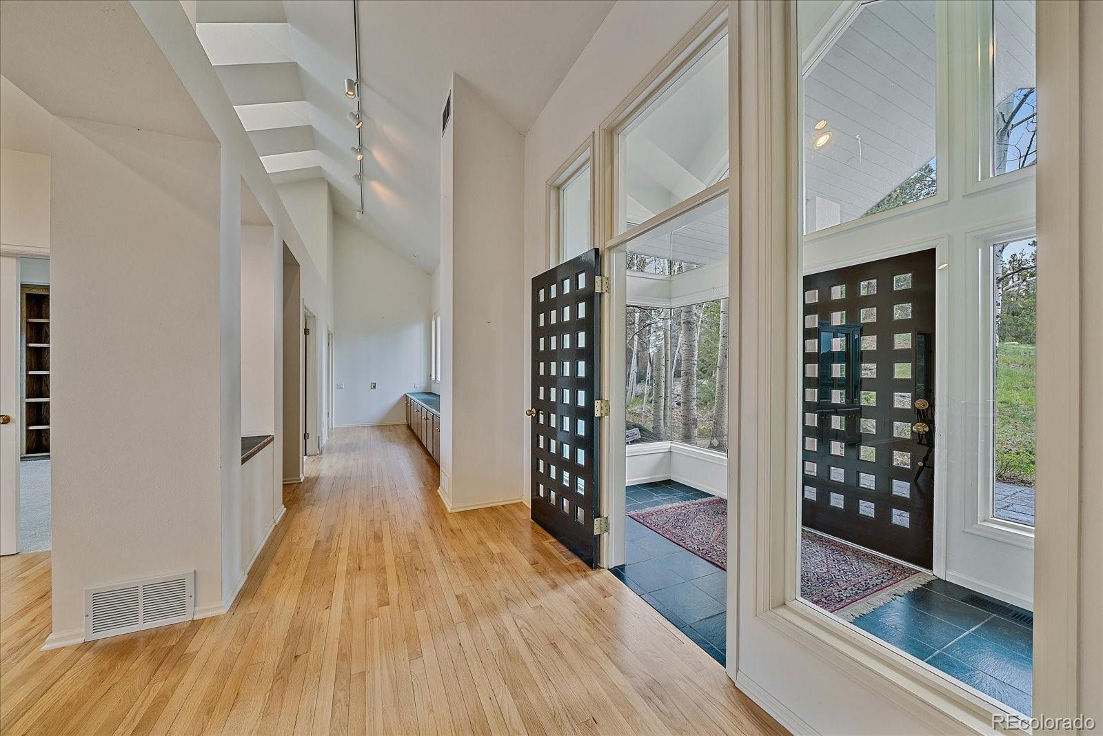 Nestled on 22+ pristine acres in one of Evergreen’s most coveted neighborhoods, this extraordinary property offers an unparalleled lifestyle of serenity, space, and possibility. Set amid gently rolling meadows and thoughtfully mitigated woodland, this property offers exceptional privacy and serenity, while providing an inspiring canvas to elevate the existing home—whether adding a custom barn, designing an equestrian retreat, or crafting a legacy estate to be treasured for generations. Surrounded by some of Evergreen’s most distinguished estates in the coveted Soda Creek area, this property enjoys the prestige of the neighborhood while located outside of the HOA. This property presents rare value and vision—a chance to personalize a timeless home while investing in an unbeatable location. The well allows for watering noncommercial domestic animals, supporting a true horse-ready lifestyle. The home has solid bones, spacious rooms, and incredible views from nearly every window. The main level features a luxurious primary suite with private hot tub deck, a dedicated office, formal dining room with walls of glass, and a gourmet kitchen with a walk-in pantry, large center island, and a rare, elite AGA range. The walk-out lower level includes a welcoming family room, full wine cellar, three generous bedrooms, two full baths, and plenty of storage. The oversized three-car garage includes a workshop, built-in cabinetry, and a secondary pantry with a full-sized refrigerator and freezer. A rare blend of natural beauty, privacy, and long-term potential—this is a wise investment and Colorado living at its finest