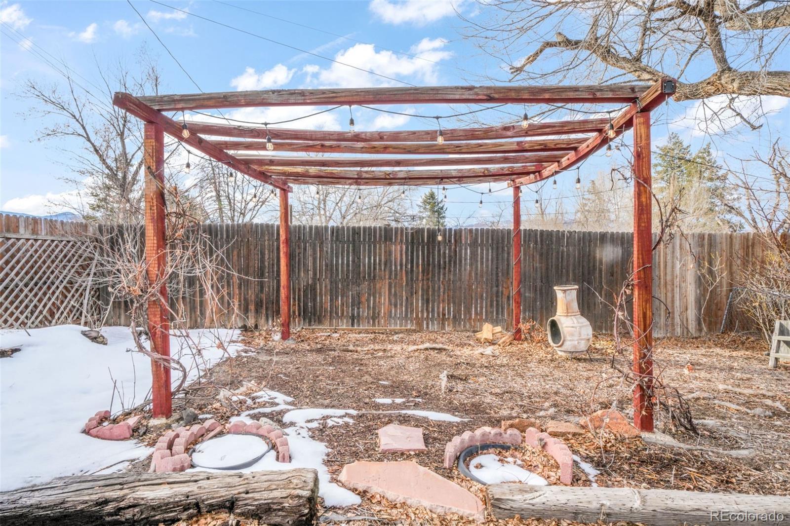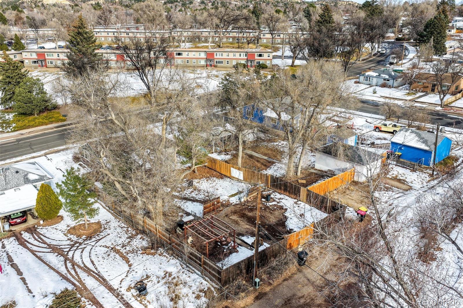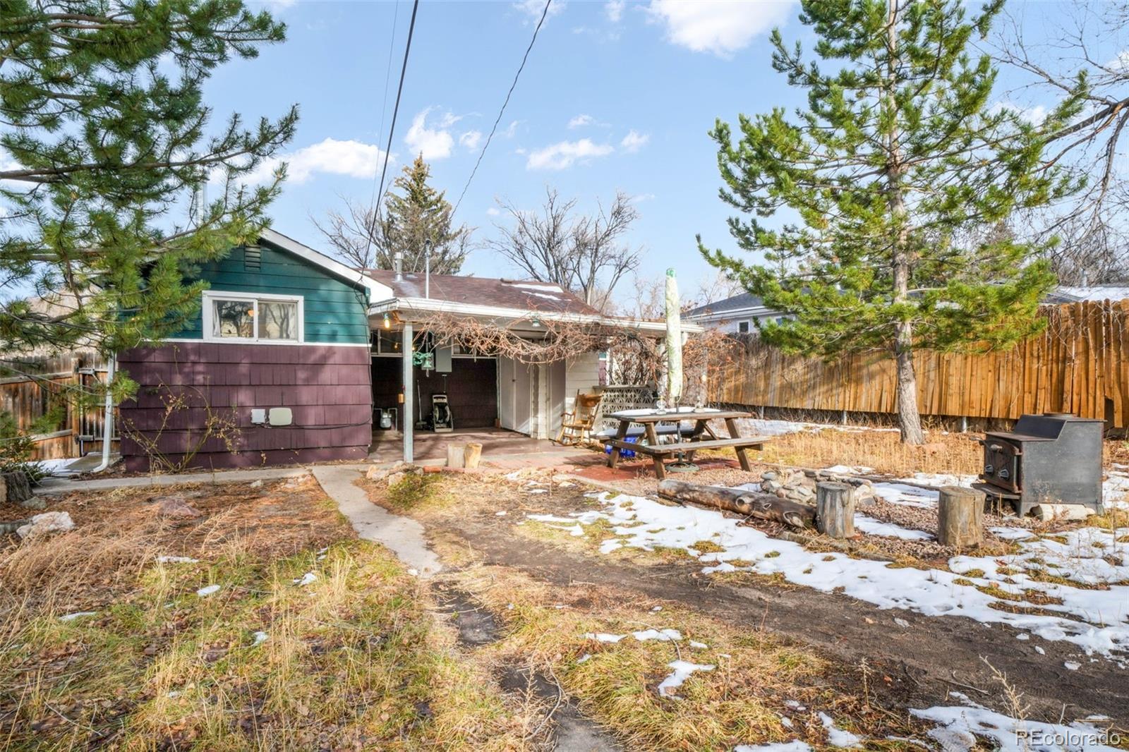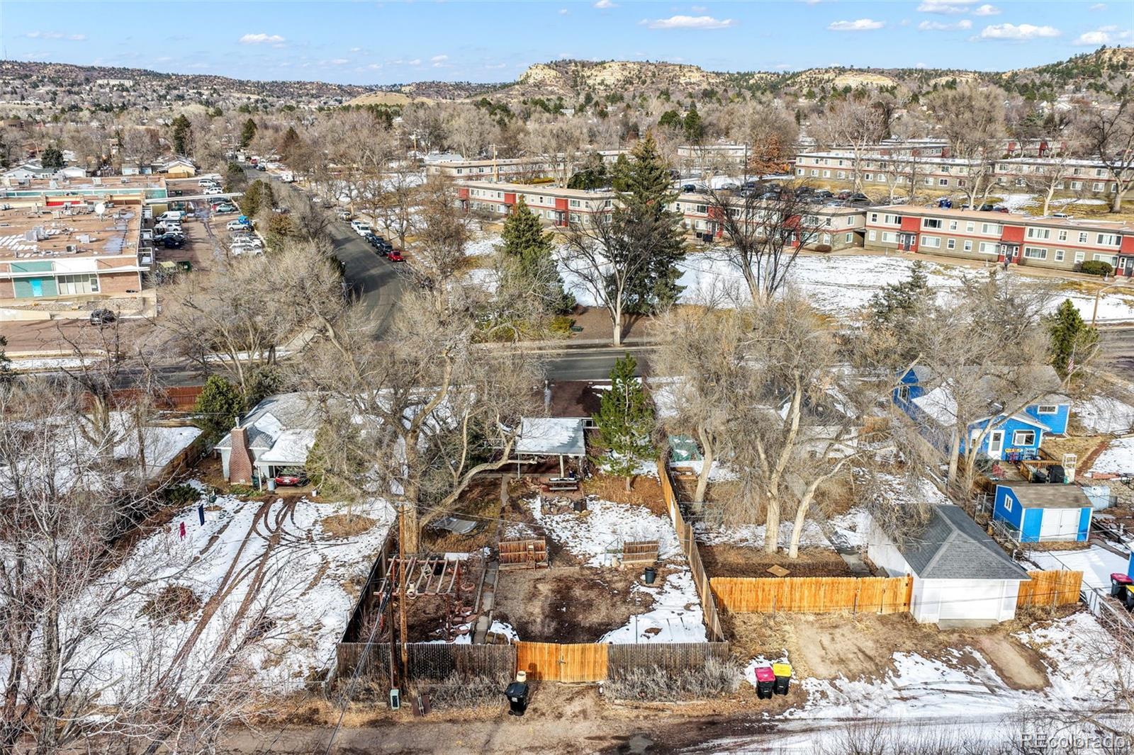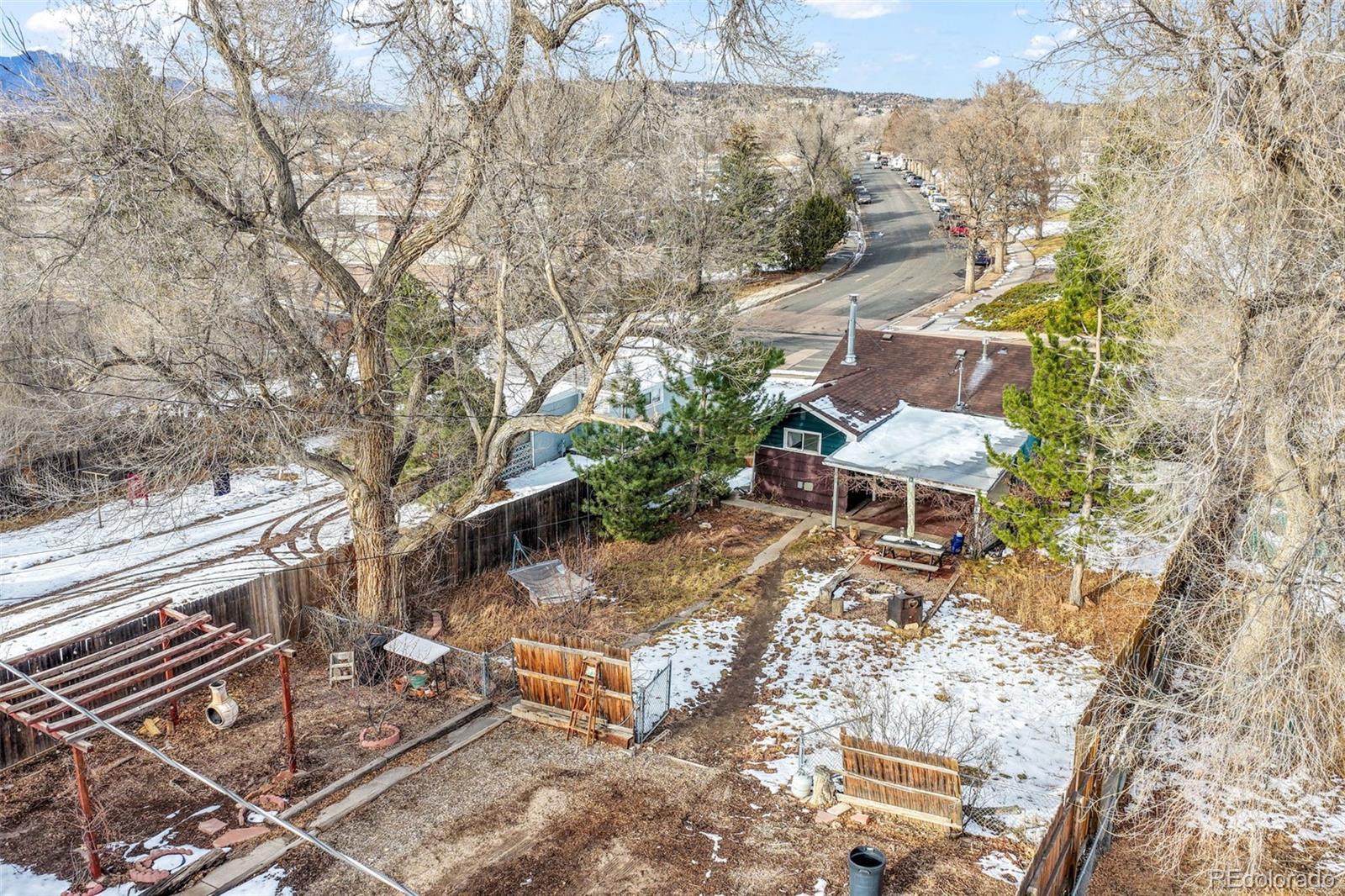 This darling sweetheart home has main level living with 2 bedrooms 1 bathroom, hardwood floors in the main and 927 square feet! Huge back yard with mature landscaping, grape vines, fruit trees and Pikes Peak Views, pergola and covered patio! Updated bathroom and appliances. The main level living layout works wonderfully and use your imagination for the roomy dining space with exterior door leading to the covered patio in the back yard. Oversized lot, plenty of room to build a garage with alley access. The neighborhood is conveniently located in Audubon Gardens by shopping, schools, Palmer Park open space and trails, Patty Jewett and main roads to make commuting easy. Charming finishes and a cozy pellet stove make living easy in this darling home. Wonderful opportunity to get into this neighborhood and watch all the Spring blossoms come to life this Spring. Come see this darling home today!