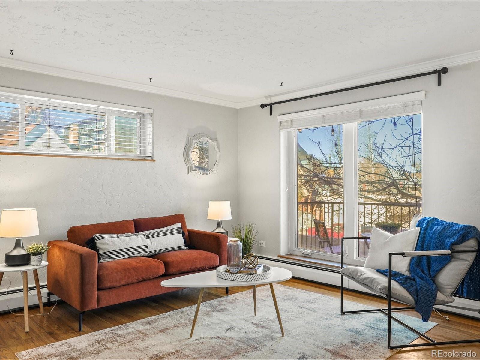 Video Walkthrough Coming Soon! Tucked away on a quiet residential block just two blocks from Cheesman Park and the Denver Botanic Gardens, this unique 2 bedroom, 2 bath corner unit offers the space and feel of a townhouse with the ease of condo living with original hardwood flooring throughout. The rare two story layout creates a sense of openness and separation, making the home feel larger and more private than a typical condo. Enjoy an open concept living area filled with natural light, a private balcony for morning coffee or evening unwinding, and the convenience of in unit laundry. Two bedrooms upstairs, and the primary bath features a large Jacuzzi style soaking tub. Dedicated parking (partially covered) and a private storage unit add everyday ease, with the parking space located just steps from the unit for effortless grocery runs and convenience. With low HOA dues, move-in ready condition, and plenty of additional off street parking for entertaining, this home is an affordable opportunity to own in one of Denver’s most iconic neighborhoods. Step outside and walk to parks, ice cream down the street, and charming turn of the century homes that define historic Denver. Own your piece of the city and enjoy a lifestyle where nearly everything you need is just a short stroll away.