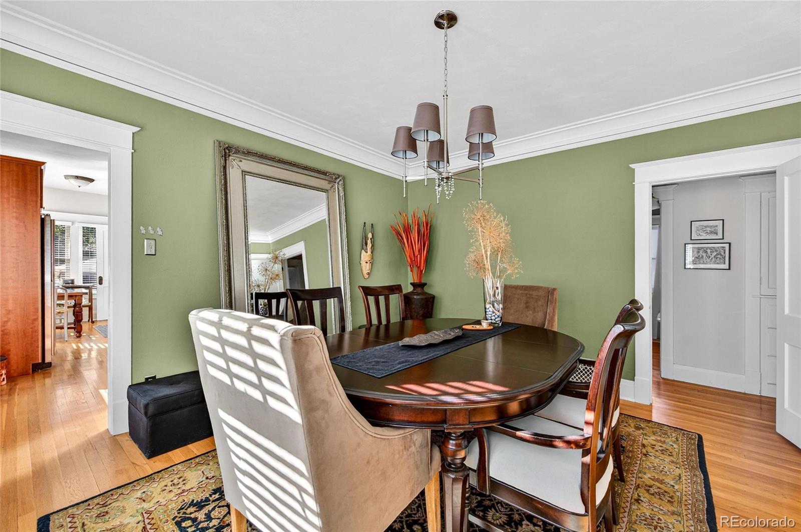 This Cherry Creek/Congress Park bungalow is a beautifully charming 1920s home with all the 2025 updates anyone could want. The quaint, vintage-paned three-season front porch is perfect for a cozy conversation or enjoying your latest book. The warm living room features a gas-log fireplace, and built-in bookcases provide extra storage and display space. Arts and Crafts details frame the dining room. Hardwood floors run throughout the first floor. Crown moldings and tall baseboards in every room add to the home's warmth and character. This 1921 beauty has central heat and air—essential for 2025 weather. The original vintage style suits a transitional design, blending nostalgic charm with modern living. No HOA to increase your mortgage! The main floor features three bedrooms, with one currently used as an office, providing flexible living arrangements to suit your needs. The original bathroom features a delightful clawfoot tub, preserving the home's classic ambiance. A large, updated kitchen and breakfast nook include stainless steel appliances, a new dishwasher and microwave, and a gas stove with a grilling option. Traditional cabinets pair with granite countertops, a large double sink, and tumbled marble backsplash. Abundant windows fill the home with natural light, all with Hunter Douglas wood blinds. Denver Water has certified that this property does not have a lead service line. The finished basement expands your living space with one bedroom, a large bathroom with an oversized walk-in marble shower, and a marble floor. A bonus room offers space for working out. The laundry room features a vintage sliding barn door to hide it when not in use. Step outside to a flagstone patio and a backyard perfect for grilling and entertaining. This desirable location places you just minutes from Congress Park and Cherry Creek restaurants and shops, and a short trip to the Denver Botanic Gardens, parks, and downtown attractions.