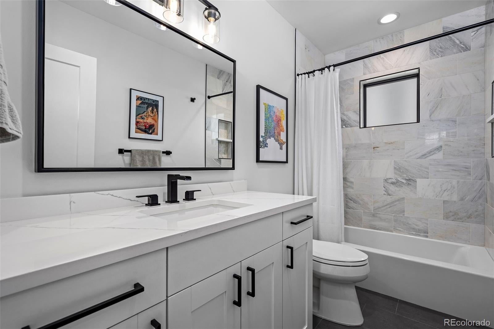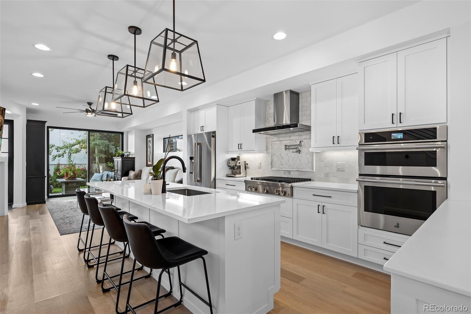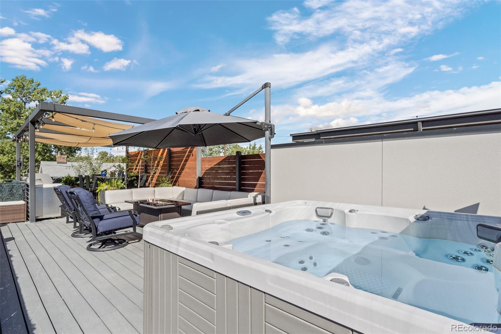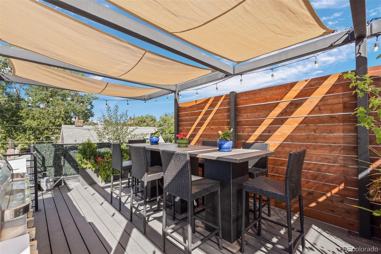 Open House this Saturday 11/15 - come enjoy the outdoor spaces this home has to offer!! Tucked into one of Denver’s most coveted neighborhoods, this home is a rare retreat that blends privacy, sophistication, and accessibility. Built in 2020, this 5-bedroom, 4-bathroom home spans more than 3,200 square feet of refined living space, offering both tranquility and the vibrancy of LoHi just beyond the front door. The main floor showcases an ideal layout with effortless flow between living, dining, and entertaining spaces. At its center, a chef’s kitchen boasts an oversized quartz island, professional-grade appliances, and designer lighting. The living room, anchored by a sleek gas fireplace, opens through sliding glass doors to a lush backyard with mature trees, water feature, and stone patio — perfect for quiet evenings or lively gatherings. A main-level bedroom or office with full bath provides flexibility. Upstairs, the primary suite is a private sanctuary, complete with vaulted ceilings, a sunlit terrace amongst the trees, and spa-inspired bath featuring dual vanities, soaking tub, and walk-in shower. A boutique-style custom closet elevates the retreat, while two additional bedrooms, a full bath, and laundry complete the upper level. The expansive rooftop deck redefines outdoor entertaining with a kitchenette, 6-burner gas grill, hot tub, and over 800 sq ft of space. Dine under custom shade sails, watch the city lights from the lounge and fire pit, or unwind in the hot tub with sweeping Denver skyline views. The finished basement extends the lifestyle experience with a theater, rec room, full bathroom, and bedroom — currently curated as a fitness space. Detached two-car garage w/ the roof of the garage featuring a 6.2kW solar system that is fully owned and saves drastically on energy costs. Balancing serenity with city living, this Highlands residence is a lush, private oasis just minutes from Denver’s acclaimed dining, shopping, and nightlife.