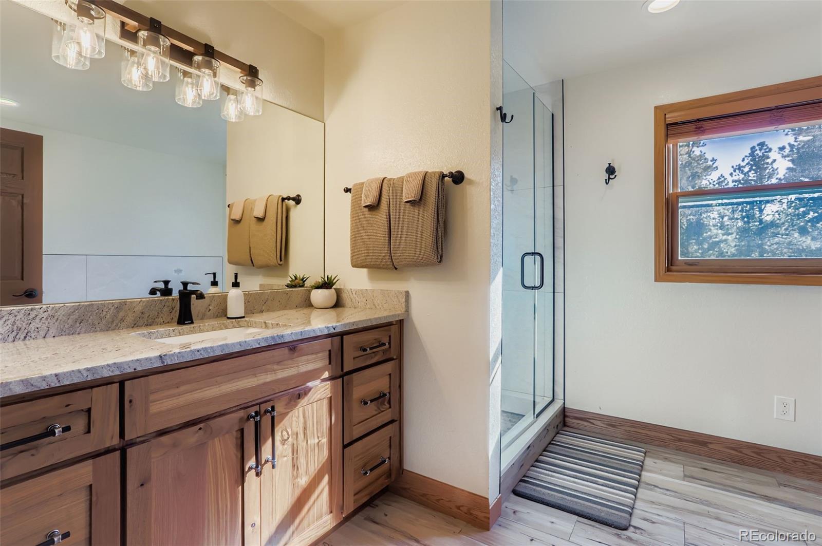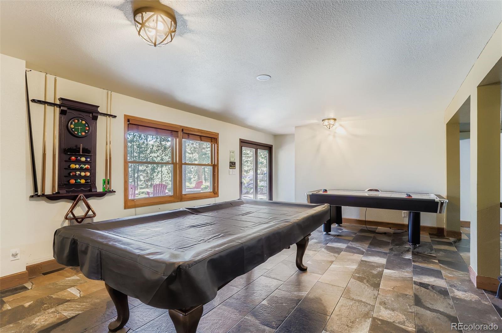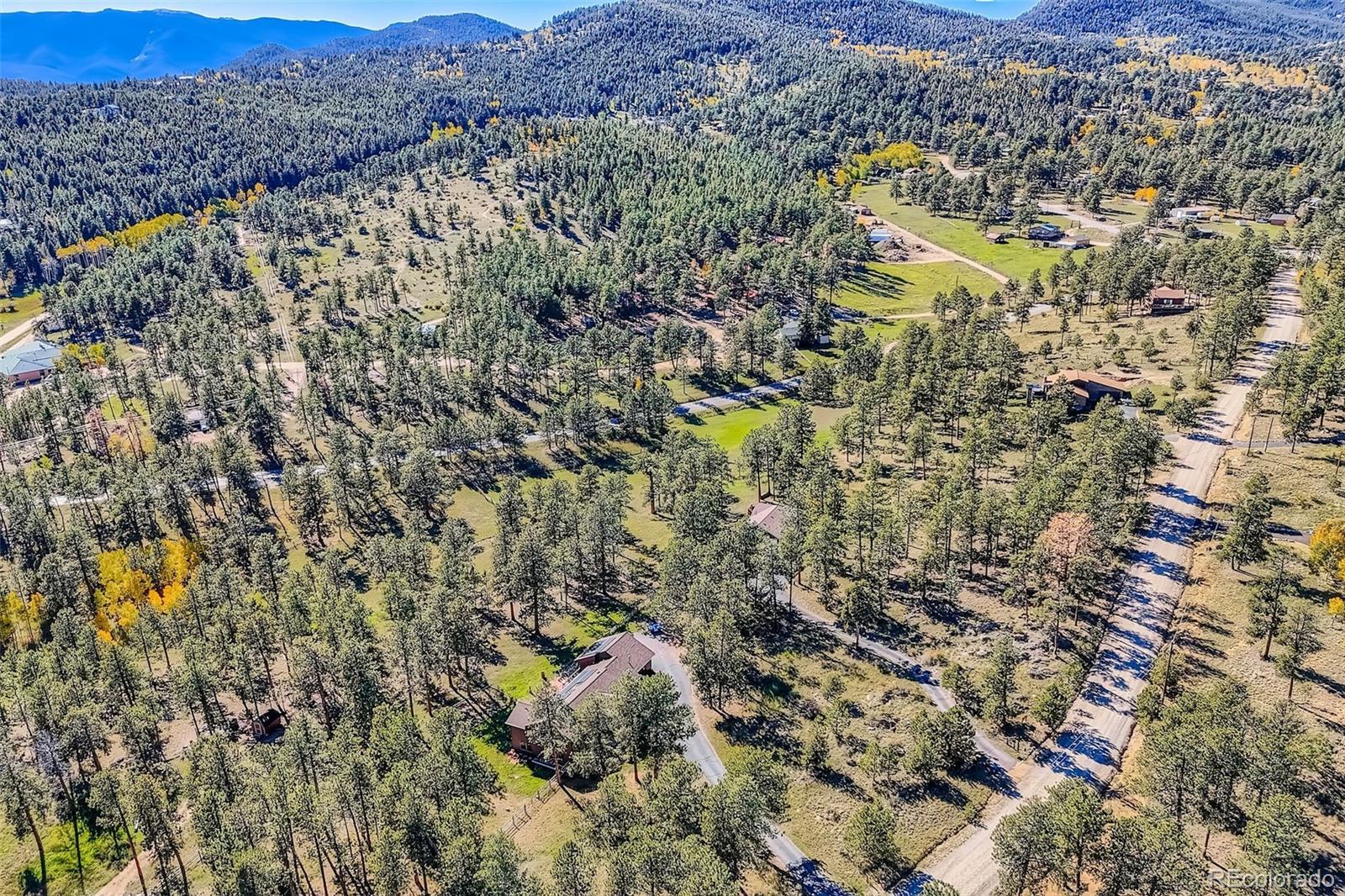 Meticulously maintained and beautifully renovated walk-out ranch in Mill Iron D Estates on 2 fenced, fire-mitigated acres with peaceful mountain views and wildlife. This light-filled open-concept home features an expanded main level, stunning stone fireplace with granite accents, new cabinetry throughout, and a bright country kitchen with ceramic tile and added lighting. Luxury vinyl flooring spans the main areas, with new carpet in all bedrooms. Bathrooms have been fully remodeled, including an enlarged lower bath. Updates include new wood stairs, ceramic tile in the basement, remodeled laundry room, nearly all new interior and closet doors, upgraded lighting throughout, fresh interior and exterior paint, and a new front entry door. Enjoy new front and rear decks with added lighting and concrete base, enclosed dog run, oversized 3-car garage, owned solar system, hot tub, transferable 50-year roof, high-efficiency furnace and water heater, skylights, and quick access to Denver, shopping, dining, and world-class skiing. Move-in ready mountain living with modern upgrades throughout. Currently operated as a short-term rental. Seller may consider conveying the property fully furnished and with existing future bookings for a buyer interested in continuing the short-term rental use, subject to terms and agreement.