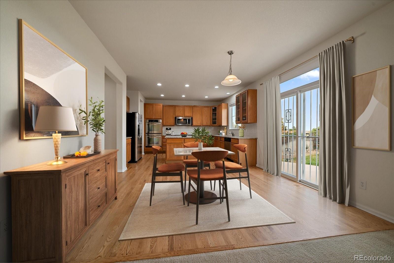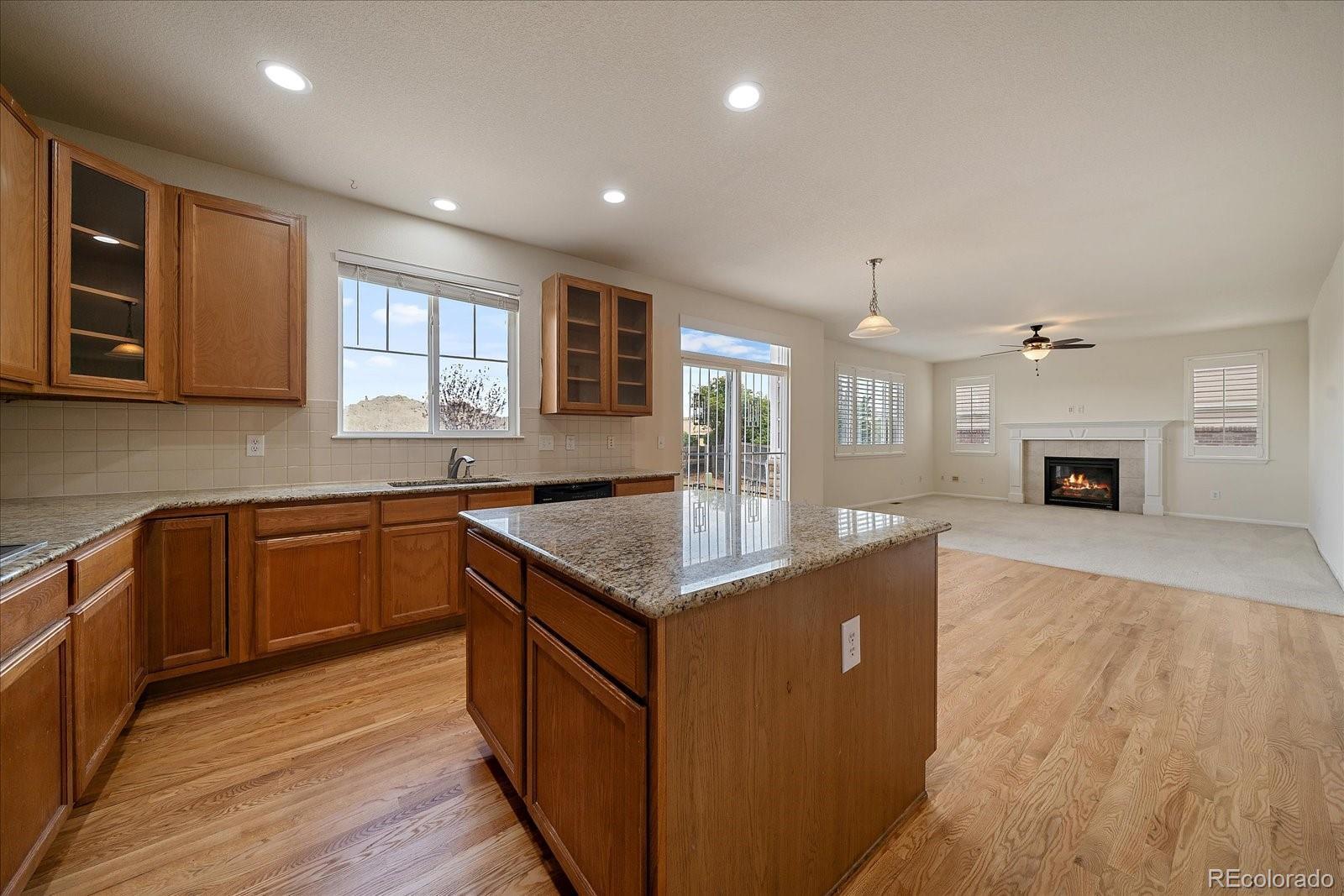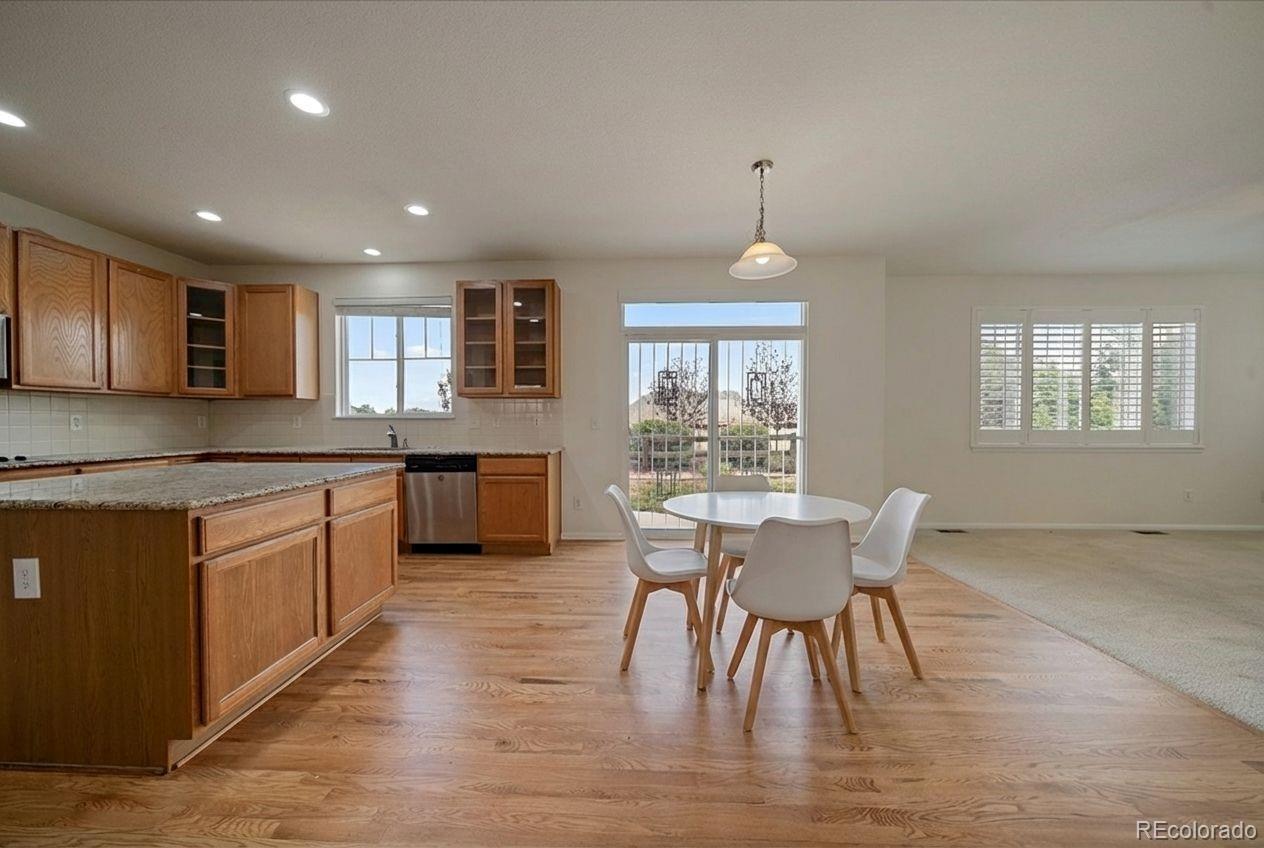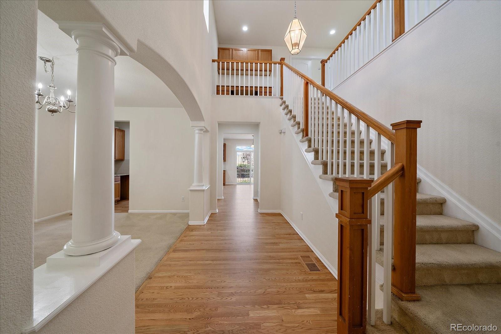 Welcome to this beautifully maintained home in the highly sought-after Cherry Creek School District, perfectly positioned on a quiet cul-de-sac and backing to a peaceful greenbelt for added privacy. Fresh interior paint and newly resurfaced hardwood floors on the main level create a bright, move-in-ready atmosphere from the moment you step inside. The open floor plan features soaring ceilings and abundant natural light, offering an inviting setting for everyday living and entertaining. The spacious kitchen flows effortlessly into the family room and out to the private backyard—an ideal place to relax, play, or host gatherings with views of the greenbelt. A durable tile roof, desirable 3-car garage, and access to the community pool add even more value. Located just minutes from Southlands Mall, E-470, the Denver Tech Center, and DIA, this home offers both convenience and connectivity. With its prime location, top-rated schools, and thoughtfully maintained interiors, this is an exceptional opportunity for buyers seeking comfort and quality in a fantastic Southeast Aurora neighborhood.