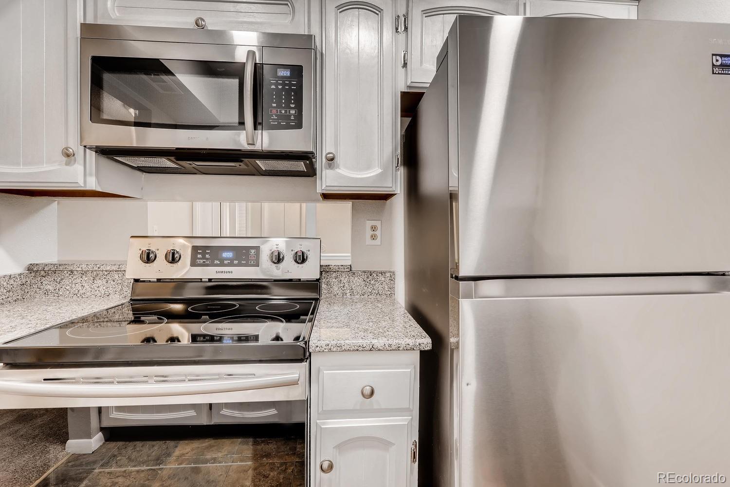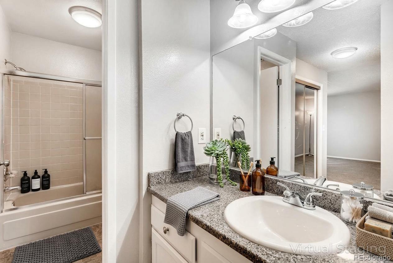 Welcome to this bright and inviting 2-bedroom, 2-bath condominium in the Cherry Grove East community. Offering approximately 1,000 square feet of comfortable living space, this well-maintained home blends functionality, warmth, and low-maintenance convenience. Step inside to a spacious living room filled with natural light and anchored by a charming wood-burning fireplace—perfect for cozy Colorado evenings. Sliding glass doors lead to a covered balcony surrounded by mature trees, creating a peaceful outdoor retreat ideal for morning coffee or relaxing after a long day. The kitchen features granite countertops, generous cabinetry, and a full appliance package, flowing seamlessly into the dining area for easy everyday living and entertaining. The open layout allows for flexible furniture placement and a comfortable atmosphere throughout. The primary bedroom includes its own full en-suite bath and ample closet space, while the secondary bedroom is well-sized and conveniently located near the second full bathroom—perfect for guests, roommates, or a home office setup. In-unit laundry adds everyday ease and convenience. This home includes two off-street parking spaces and is part of a professionally managed community with fantastic amenities. The HOA covers water, sewer, trash, snow removal, exterior maintenance, and access to community features including a clubhouse, pool, tennis courts, sauna, and spa/hot tub—offering exceptional value and low-maintenance living. Located near public transit, shopping, dining, and major commuter routes, this property provides easy access to everything Aurora and the greater Denver area have to offer. Whether you're a first-time buyer, downsizing, or looking for an investment opportunity, this move-in-ready condo delivers comfort, convenience, and community in one smart package. Schedule your showing today and experience Cherry Grove East living for yourself.