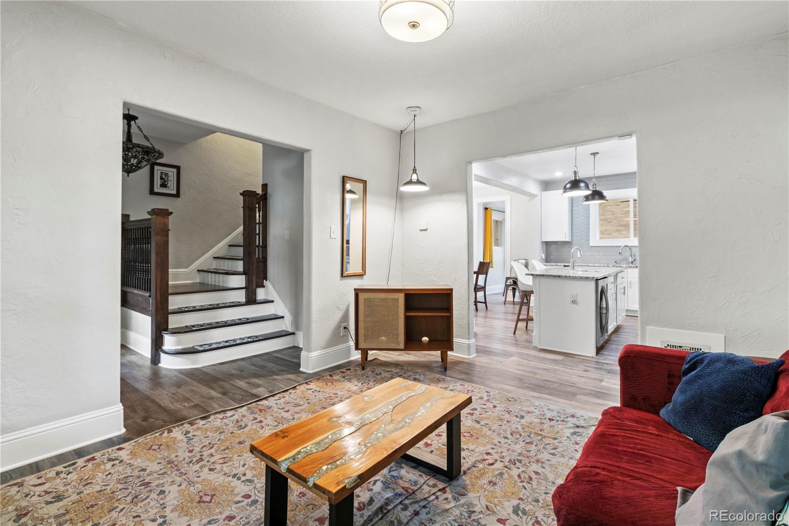 Exquisite turn of the century home in the historic Cheeseman Park Area. This historic half duplex had been renovated with modern updates. Walk into the traditional foyer that highlights gorgeous natural wood trim, stairs, and banister and ORIGINAL LEAD WINDOW. The vast formal living room, with updated engineered wood flooring, opens to the updated gorgeous kitchen that includes GRANITE COUNTERTOPS, white shaker cabinets, and STAINLESS STEEL APPLIANCES including a gas range, double ovens, dishwasher, and refrigerator. Subway tile backsplash and HUGE KITCHEN ISLAND. An ample dining room adjacent to the kitchen makes this area a great place for entertaining. Upstairs you will find a spacious bedroom with a private sunroom/balcony made with lovely beetle kill shiplap, and two more considerable bedrooms w/roomy closets. The FINISHED ATTIC is perfect for a game room, playroom, or home office. The finished basement holds a generous family room, large non-conforming bedroom, attractively decorated full bathroom, and large laundry room which may be a great options for a kitchenette, and also includes a separate entrance exterior exit. Private fenced backyard includes covered deck and flagstone patio. Great location for walking and biking. Close to some of Denver's best restaurants. Just minutes to Downtown Denver for more shopping, dining or entertainment options. NO HOA! Historic charm meets modern living to create an incredible home.