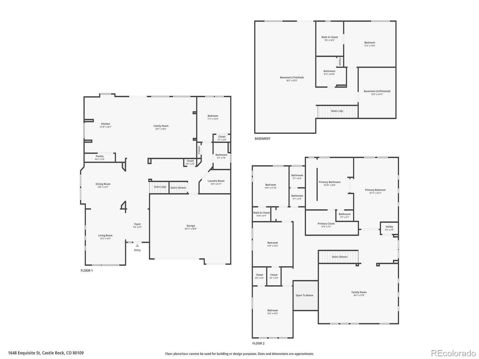 A home in Castle Rock with 5700 finished square feet under $850,000?!?!? Welcome to 1648 Exquisite St, a spacious and beautifully designed home nestled at the end of a quiet cul-de-sac in one of Castle Rock’s most desirable neighborhoods. This residence offers the perfect balance of room to spread out and thoughtfully designed comfort for everyday living and entertaining. Inside, you’ll find four versatile family/living rooms—ideal for a media room, playroom, home office, or additional gathering space. The kitchen is expansive, featuring generous counter space, abundant cabinetry, and an open flow into the large main living area—perfect for hosting and connecting with loved ones. Whether you're relaxing in one of the multiple family spaces or entertaining in the open-concept kitchen and living area, this home offers flexibility and functionality for families of all sizes. With 1 main floor bedroom or office, 4 Total bedrooms upstairs and an additional bedroom in the basement, this home has all of the space you need! Located close to parks, trails, shopping, and top-rated schools, this is Colorado living at its finest. Come see what makes this home so special—schedule your showing today!