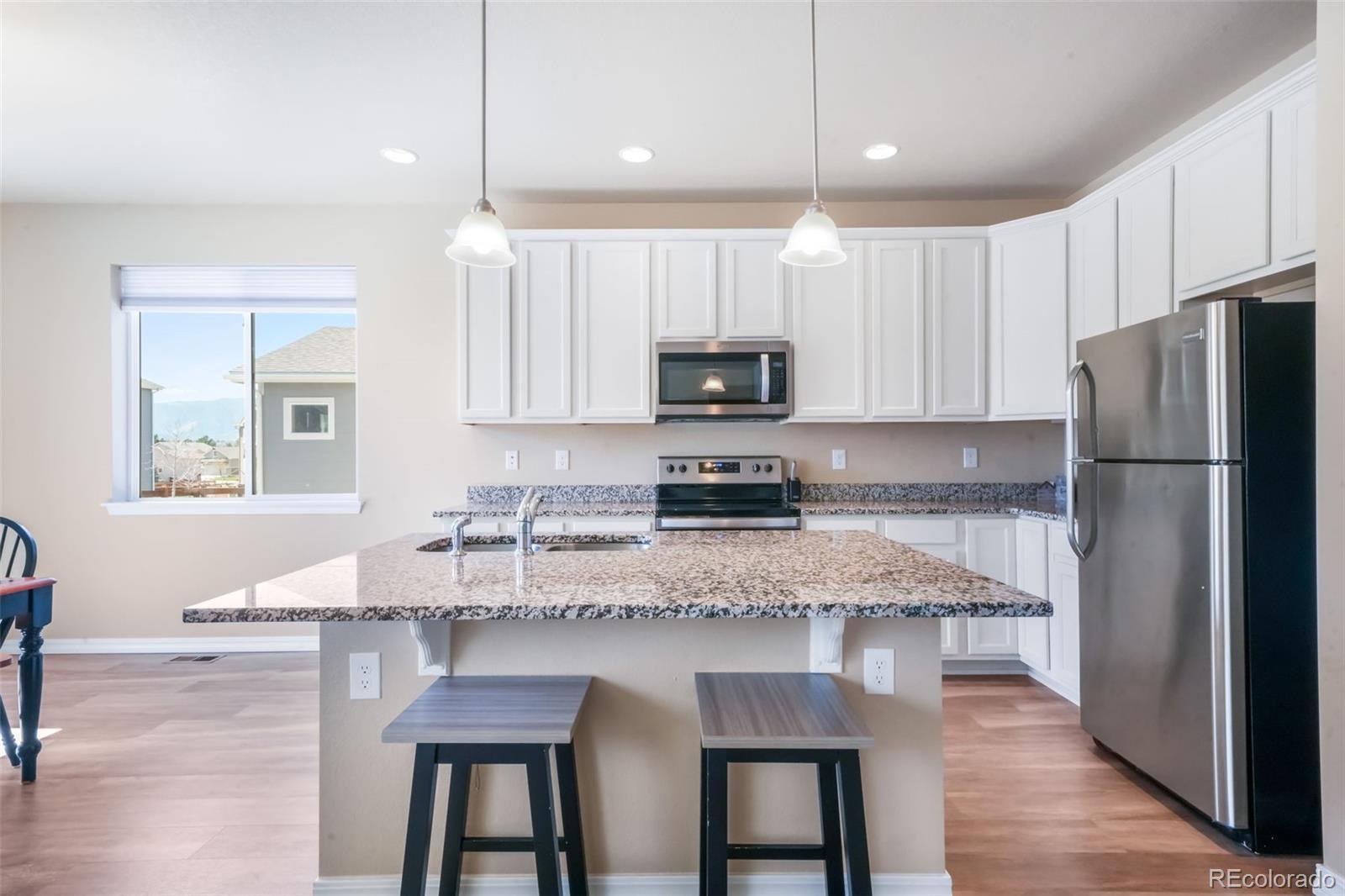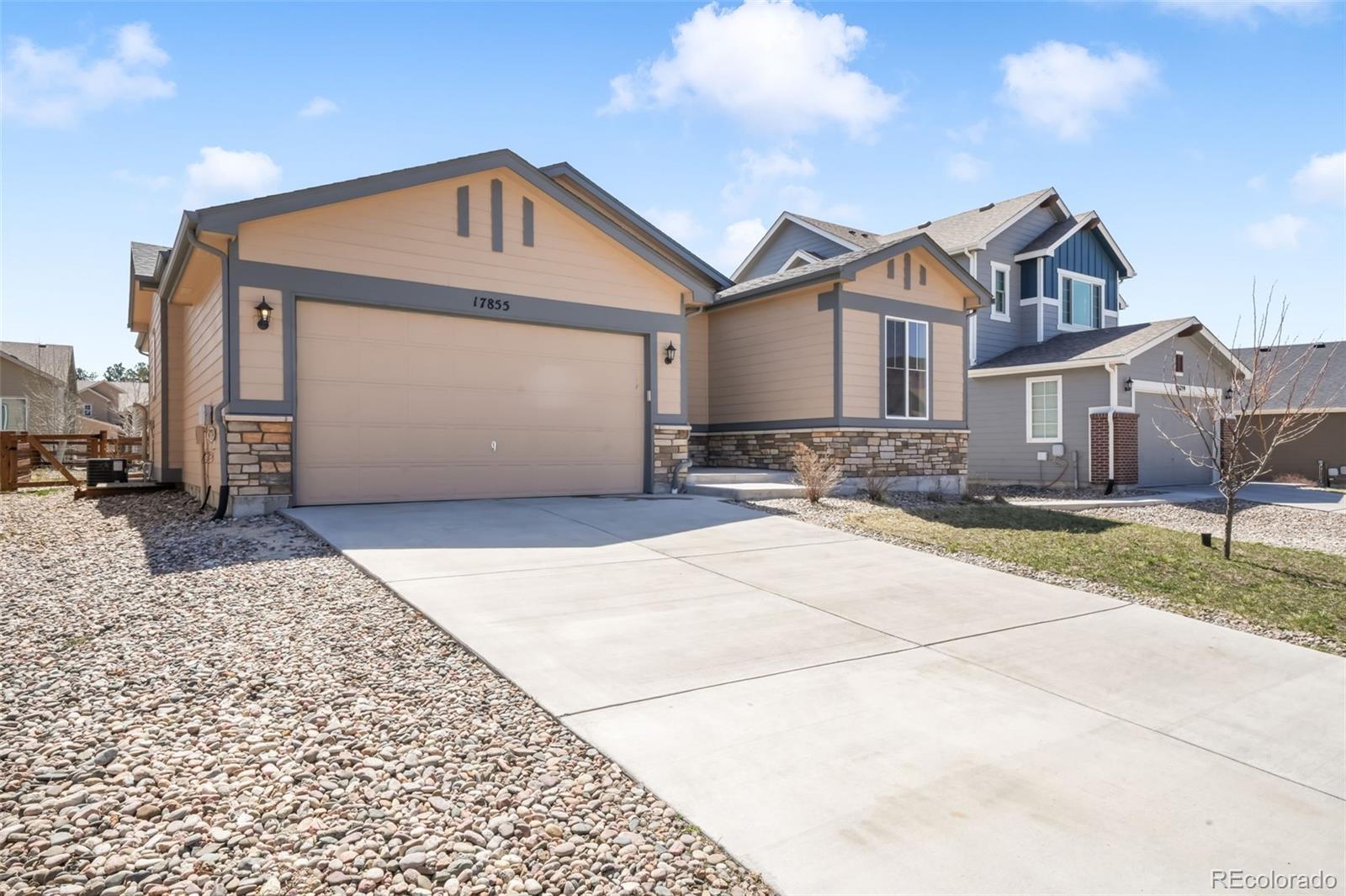 Welcome to this ranch-style home in the highly desirable Lake of the Rockies community, just a short distance from the serene Monument Lake. Located in sought after School District 38, this home offers true main-level living with space and convenience throughout. Inside, you will find a spacious open-concept layout featuring a large kitchen complete with granite countertops, a generous kitchen island, stainless steel appliances, and ample cabinetry, perfect for both everyday living and entertaining. The kitchen flows seamlessly into the family room, where a cozy gas fireplace creates a warm and inviting ambiance. The main-level primary suite is a private retreat, boasting a sizable bedroom, en-suite bathroom with a double vanity, a large shower/tub combo, and a spacious walk-in closet. Convenient main-level laundry adds to the ease of living. Downstairs, the finished basement provides even more living space, including two additional bedrooms, bathroom and a large second family room or game room, ideal for movie nights or guests. Enjoy the outdoors in your expansive backyard, offering plenty of room for relaxation, gardening, or entertaining under Colorado’s beautiful skies. Don’t miss the opportunity to own this move-in ready home in a stunning lakeside neighborhood close proximity to shopping, dining, and I-25 access.
