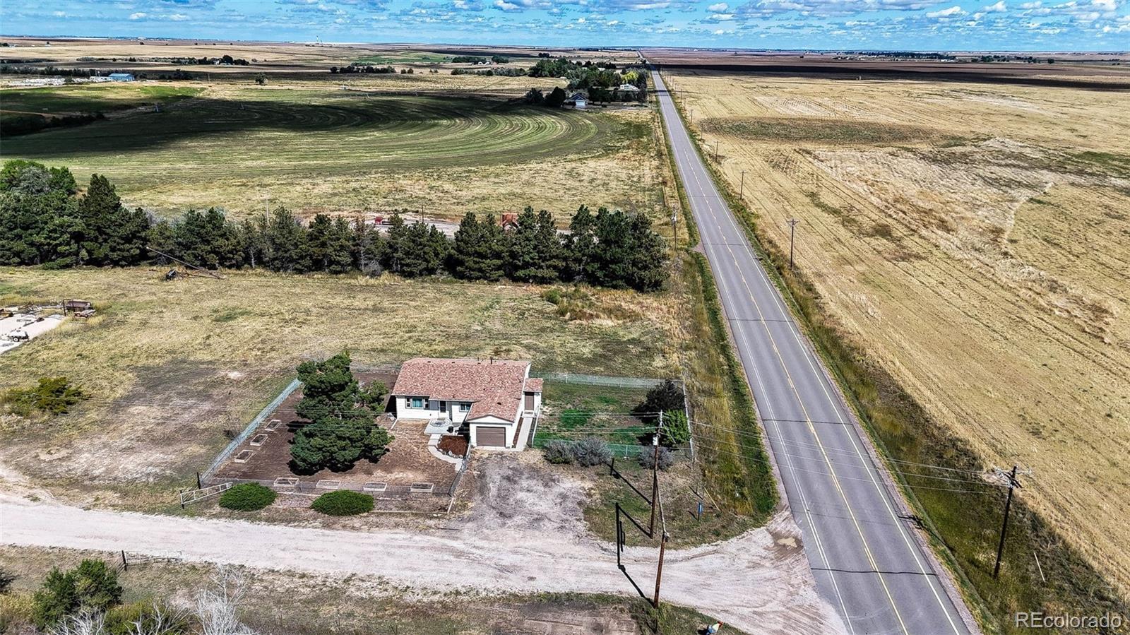 Charming updated 1940s cottage-style country home on 36 acres offering a rare farming, ranching, and livestock opportunity! This 4-bedroom, 2-bath home features beautiful hardwood floors, an open-concept layout, and warm, inviting living spaces, along with a 1-car garage. Recent improvements include new exterior paint and plans to drill a new household well. The land is truly exceptional, with 30 irrigated acres under a pivot sprinkler supported by a high-producing irrigation well, producing outstanding grass hay crops. Ideal for livestock, hay production, farming, or a hobby ranch. Located on paved roads with easy year-round access, just 12 minutes to I-70, 25 minutes to DIA, and only 35 minutes to downtown Denver. Enjoy peaceful country living without sacrificing convenience. A rare opportunity to own productive irrigated acreage with a charming home in an unbeatable location.
