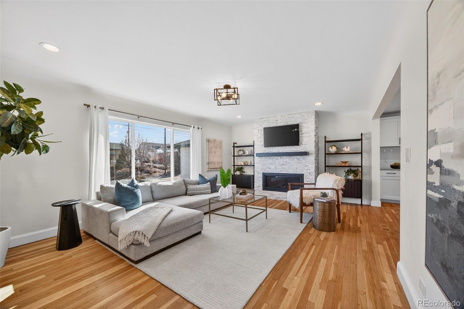 Welcome to this impeccably updated 4-bed, 3-bath ranch home in the desirable West Highland neighborhood. This property has a rare 10,800 sq. ft. corner lot, where modern comfort and thoughtful design converge with exceptional indoor-outdoor living. The sun-filled main level features custom lighting, a beautifully updated kitchen that opens to the living and dining areas, and a striking new fireplace perfect for both daily living and entertaining. The primary suite is an expansive retreat addition, complete with a generous spa-inspired en-suite bath and two separate closets that elevate everyday living, while a gracious secondary main-floor bedroom with its own custom closet and a well-appointed bath complete this level. The fully finished basement expands the living space with two additional bedrooms, a full bath, and a versatile family room or den ideal for media, work, or play. Outdoors, you’ll find a professionally expanded backyard with over 1,000 sq ft of additional usable space, a custom retaining wall, and more than $75,000 invested in landscaping with a smart irrigation system, creating a beautifully manicured, sun-soaked setting. Thoughtful enhancements include a slab with electrical in place for a future hot tub, new secure perimeter fencing, and an expanded driveway that accommodates three vehicles with additional room for RV or boat parking. Additional upgrades include integrated smart home feature and security system, updated lighting, fireplace, a new city water line installed in 2023, and a radon mitigation system — combining quality craftsmanship, modern convenience, and rare outdoor expansiveness in one truly distinctive offering. Close to sloan's lake, shopping and restaurants and more!