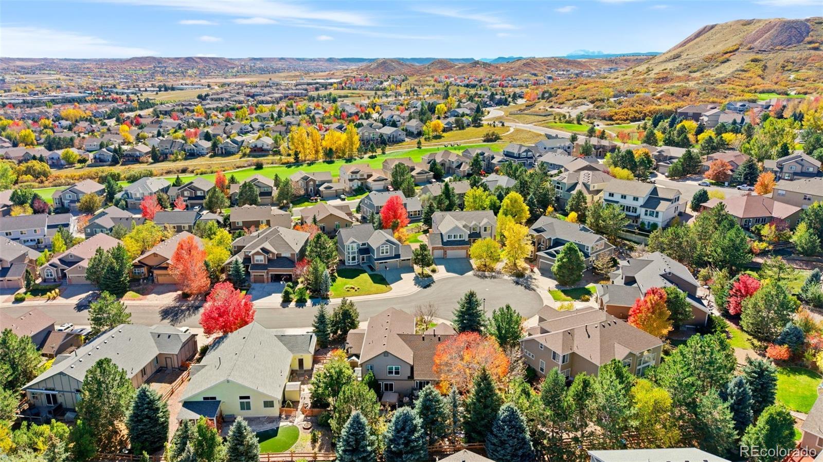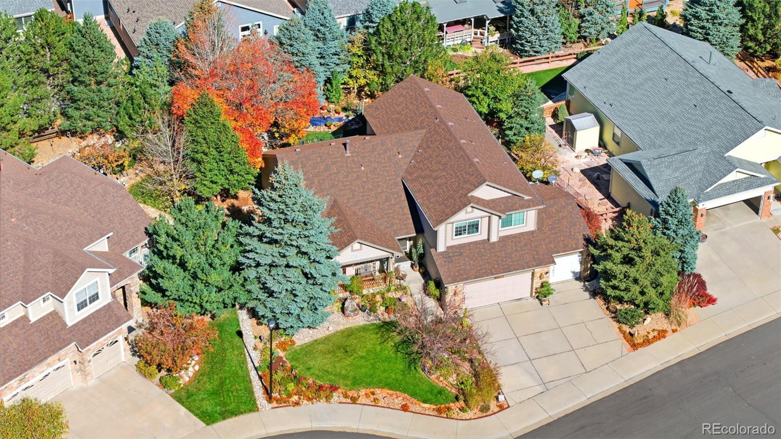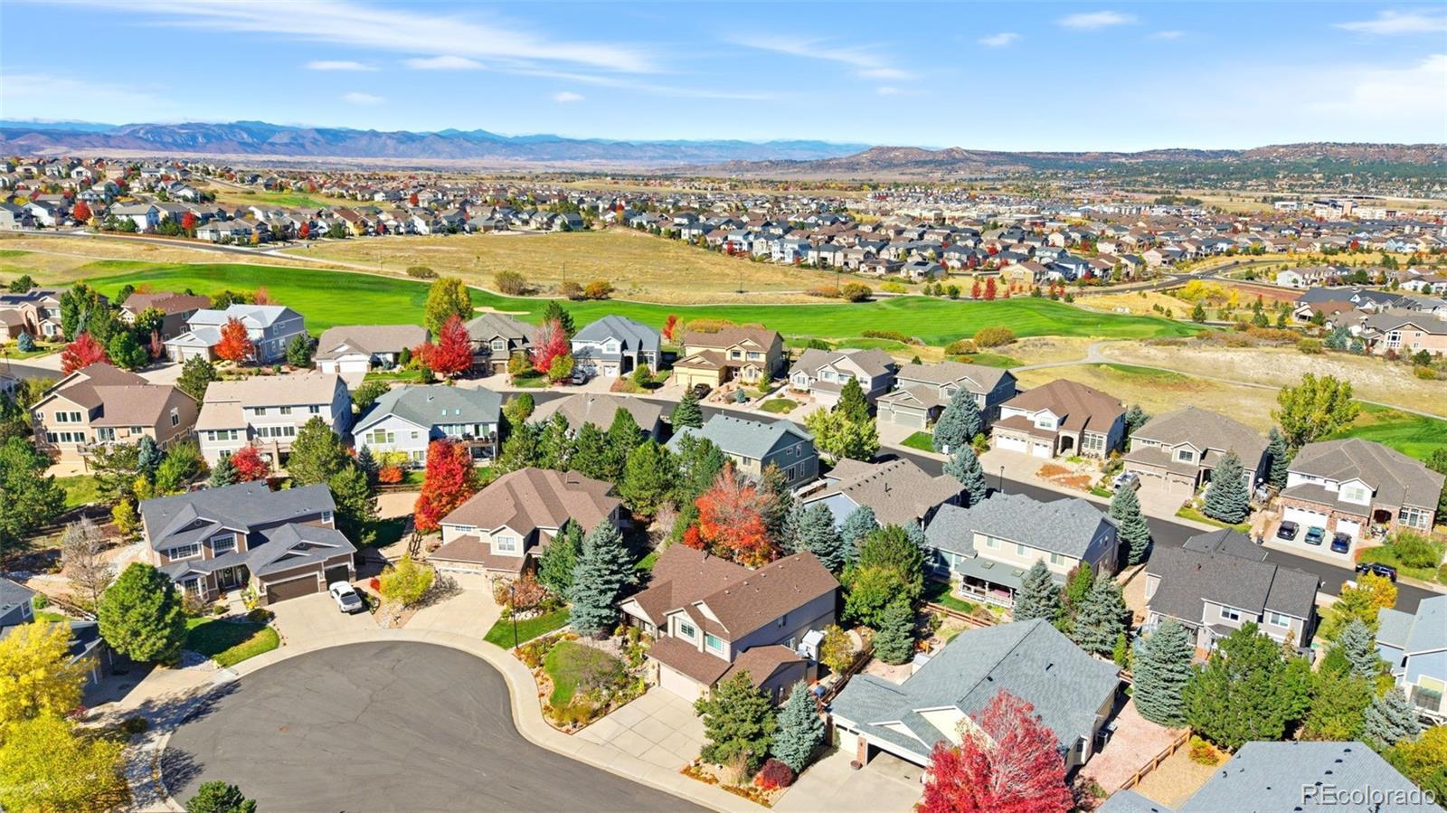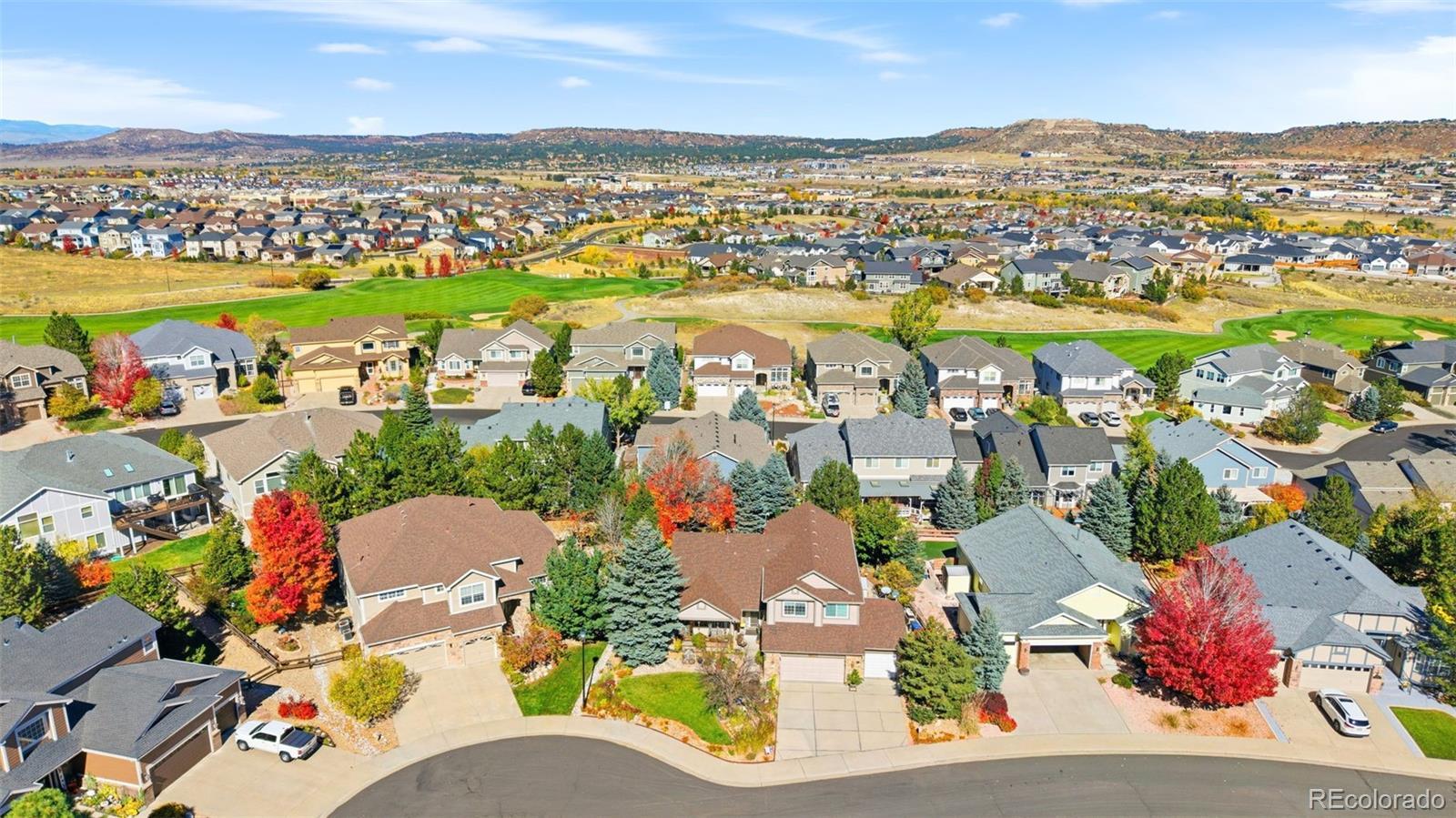 Wake each morning to sweeping mountain, butte, and valley views as the sun rises over Red Hawk and sets the sky ablaze each evening—this is modern living reimagined, right in the heart of Castle Rock. Tucked quietly at the end of a private cul-de-sac and surrounded by the locally acclaimed Red Hawk Golf Course, this home is a true retreat: close to shopping and dining, yet blissfully removed from the bustle of everyday life. From the moment you step through the dramatic foyer, framed by massive wood beams, you’re welcomed into a space designed to tell a story. Famed artist Amy Springer has lovingly and meticulously crafted one-of-a-kind enhancements throughout the home, evoking the warmth of classic log cabins, the serenity of snow-capped peaks, and the quiet magic of Colorado wildlife. Every room is thoughtfully curated to reflect the peaceful scenes of mountain living—without ever leaving town. The upper level offers three inviting bedrooms, while the main-floor laundry adds everyday ease. Downstairs, a cozy family room anchors the lower level, complemented by a spacious flex or office area that provides privacy for work, creativity, or quiet retreat. As evening settles in, the calculated calm of this interior street carries through to sunset, wrapping the home in tranquility. Step into the backyard and discover the final touch of this mountain escape: a fully functional stream meandering over smooth cobblestones, reminiscent of high-country snowmelt. Sit back, listen to the water flow, and imagine the life waiting for you here—where nature, artistry, and comfort converge in one unforgettable Castle Rock sanctuary.