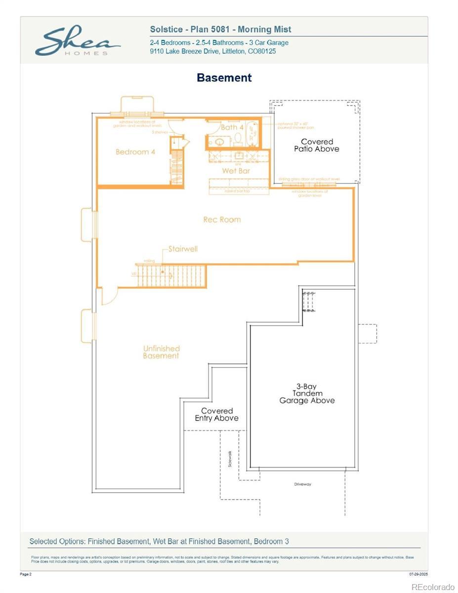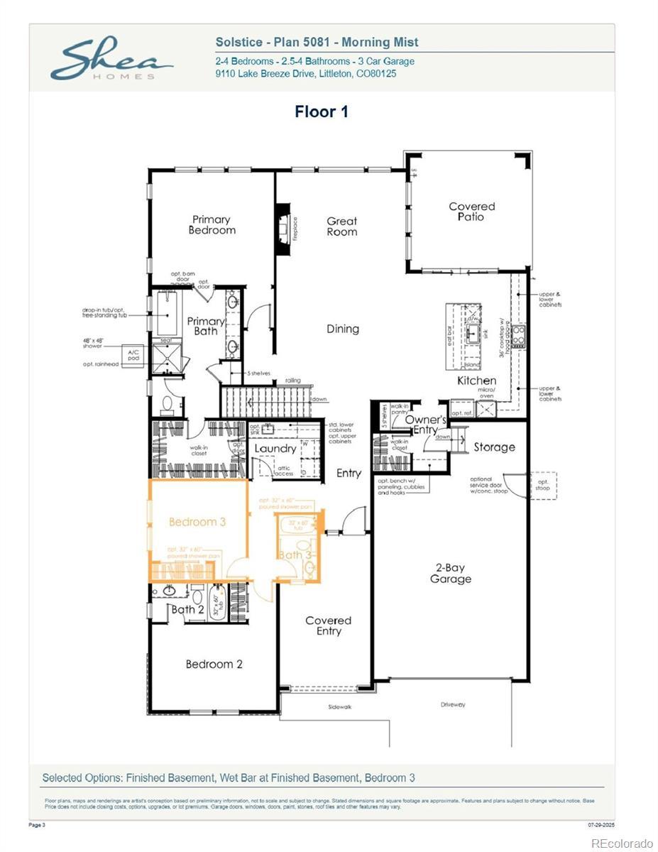 Beautiful one-story home in the desirable Solstice Community. Solstice is surrounded by Chatfield State Park on 3 sides of the community and acreage parcels on the 4th side. This home has 4 bedrooms, 4 baths, finished basement with wet bar, fireplace with full height tile surround, covered patio, and 2-bay garage with storage. Design finishes include Shaw luxury plank flooring in Warm Grey, MSI engineered stone counter tops in Calacatta Botanica, and Yorktowne Shaw painted Carriage Black cabinets. Please contact a community representative for details. The Mirabelle Metropolitan Districts provide various services to the property and in addition to the estimated taxes, a $40 per month operations fee is imposed.