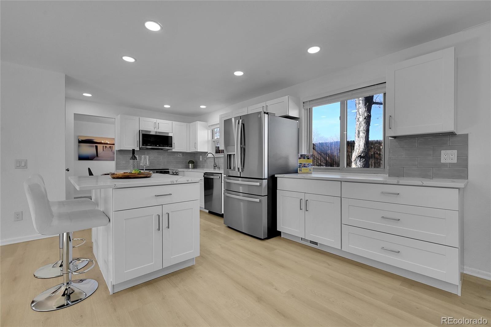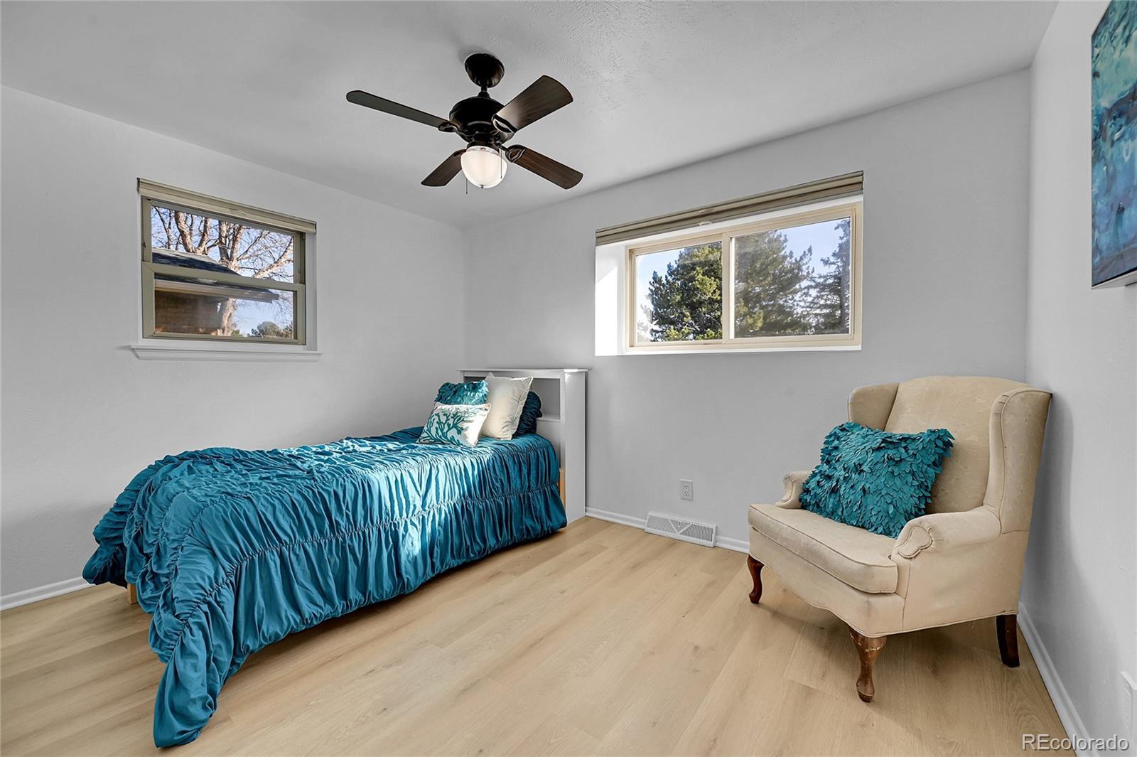 Welcome home to this classic brick ranch in the heart of Broomfield. Step inside to discover a beautifully updated main floor featuring modern laminate flooring throughout, all-new interior paint, and updated egress lighting that creates a bright, welcoming feel. The kitchen has been completely reimagined and opened up, showcasing a new central island, brand-new cabinetry and countertops, and sleek stainless steel appliances, including an induction oven that home chefs will love. Just beyond, the cozy family room invites you to relax with a charming wood-burning stove and abundant natural light from skylights overhead. The main floor primary suite offers comfort and privacy with an updated en-suite 3/4 bathroom. Two additional generously sized bedrooms and a stylishly updated full bathroom complete the main level. Downstairs, the partially finished basement provides incredible flexibility and opportunity to make it your own. It includes a den, a full bathroom, and two additional flex spaces that can serve as non-conforming bedrooms, a home office, workout room, or creative space. Set on a large lot backing directly to the Broomfield Trail, the outdoor space is just as appealing - featuring a fully fenced yard, two storage sheds, and potential space for small RV parking. The location is hard to beat: just blocks from Broomfield High School and with easy access to US-36, commuting to Denver or Boulder is effortless. A thoughtfully updated home with space to grow - make it yours today!