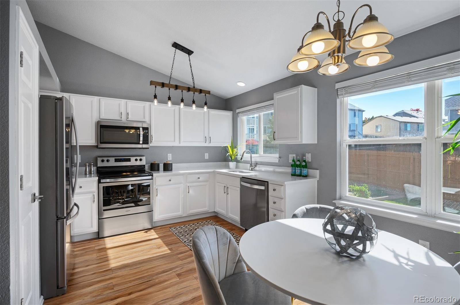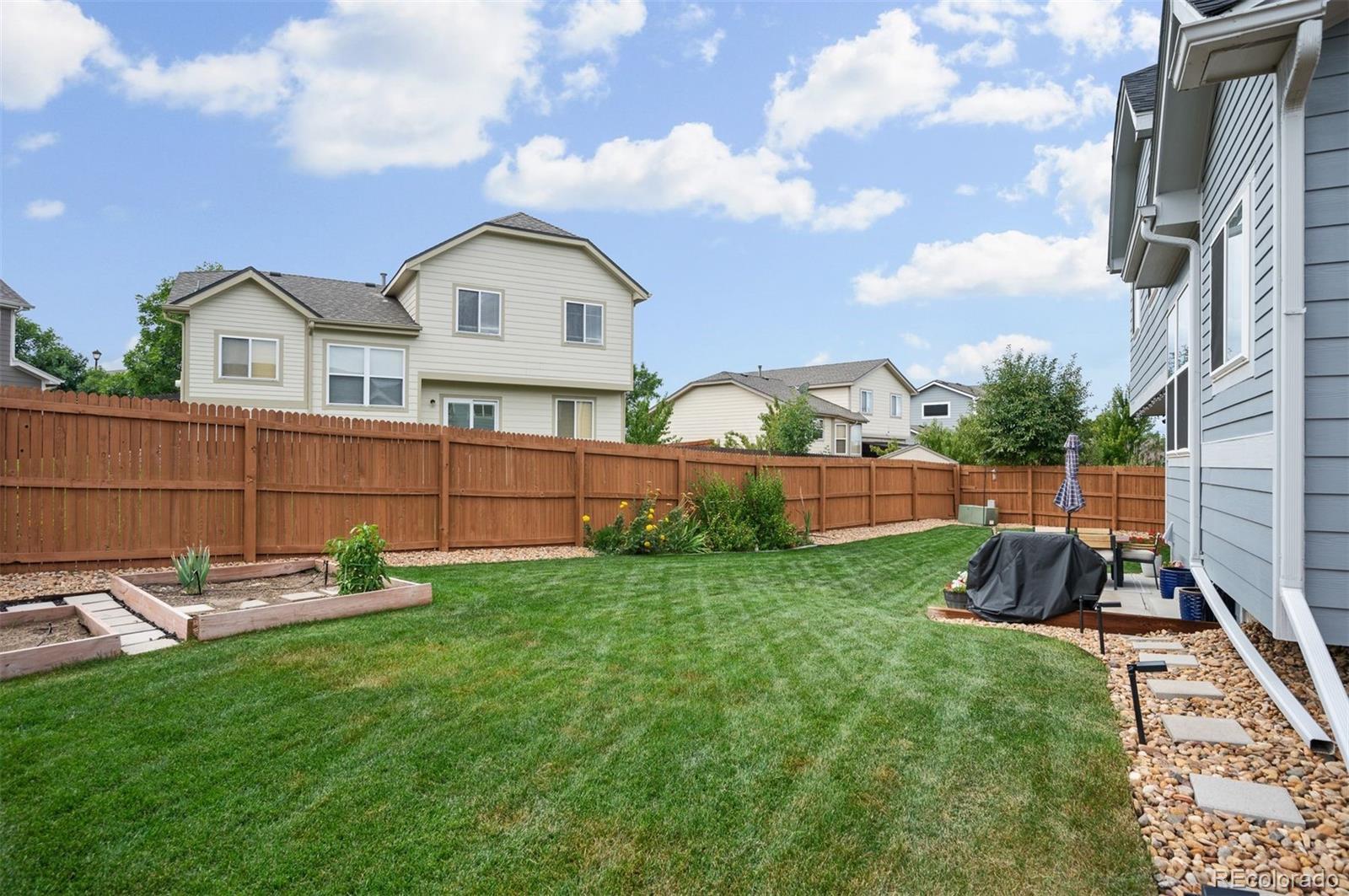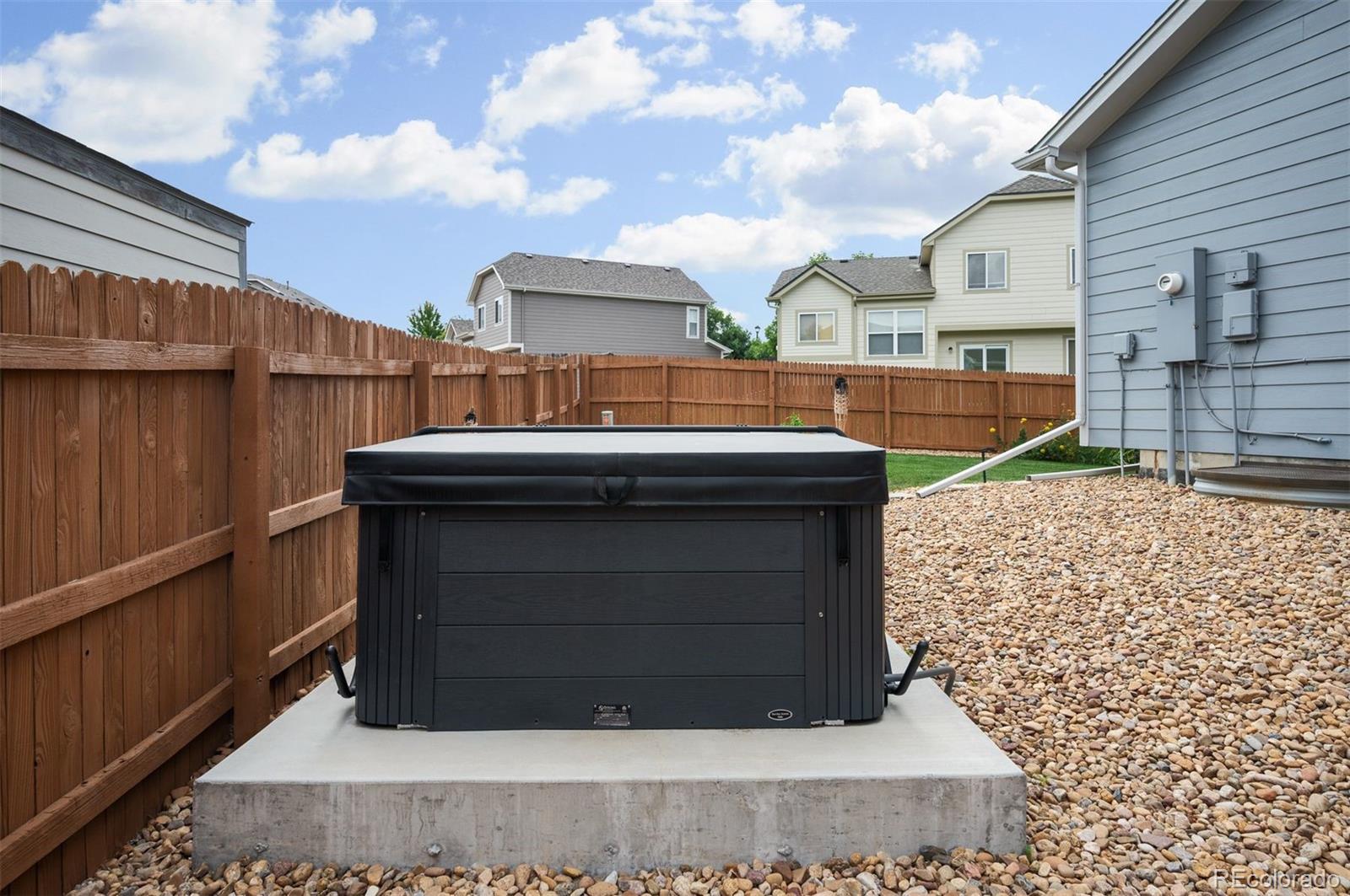 Phenomenal cul de sac location in Cherry Creek School District, close to neighborhood pool, parks, trails, shopping and dining. The minute you walk into the living room you’ll notice the abundance of natural light throughout. The kitchen is beautiful with quartz countertops, stainless appliances, pantry and eat-in dining space. Entertaining is a dream with large family room featuring a cozy gas fireplace and sliding glass door. Step into your private backyard oasis with lush green grass, and generous patio, ideal for hosting gatherings and entertaining. Just as you had hoped, there’s a hot tub to enjoy those beautiful Colorado nights. Upstairs you’ll find three bedrooms. The primary suite has a 3/4 bath with quartz countertops. The full bath in the hall also has quartz countertops. Newer flooring and paint inside and out, means no maintenance for years to come. Totally move-in ready with window coverings, washer and dryer. The basement has a fourth bedroom and half bath, laundry and gear storage. The attached two-car garage completes the package. All you have to do is unpack and start enjoying that Colorado lifestyle.