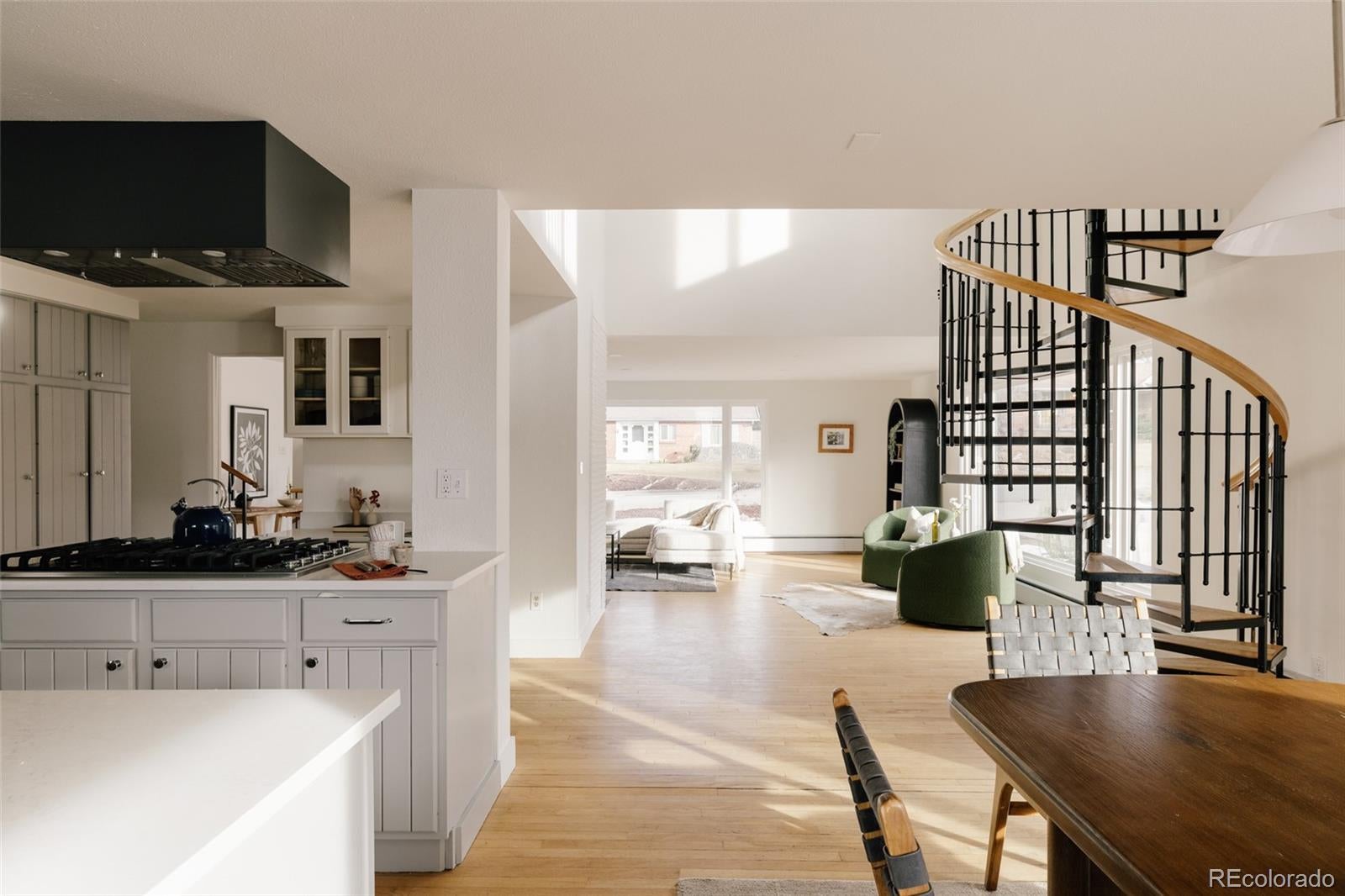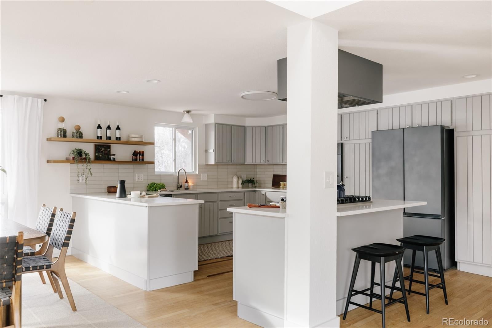 Nestled in Wheat Ridge’s sought-after Bel Aire neighborhood, this beautifully updated home with 3,078sqft above grade offers a rare combination of space, style, and functionality. Expansive picture windows fill the living, kitchen, and dining areas with abundant natural light, creating a bright and welcoming atmosphere throughout. Designed for both everyday living and entertaining, the open chef's kitchen features Viking appliances, new quartz countertops, and a designer tile backsplash—ideal for hosting memorable gatherings. With three distinct living areas, there is room for everyone to spread out and relax. The main-level living room invites cozy evenings beside the large wood-burning fireplace, while the lower-level walk-out family room is perfectly suited for movie nights, game days, or keeping toys tucked away. A private upper-level loft offers incredible flexibility as a music room, fitness space, or additional office, complete with striking mountain views. Working from home is effortless in the private lower-level office overlooking mature landscaping. The upper level includes 4 comfortable bedrooms and 2 well-appointed baths, highlighted by the primary suite with a newly updated double vanity. Outdoor living is equally inviting, with a thoughtfully xeriscaped front sitting area shaded by old-growth trees and a lush, private backyard—ideal for play, pets, or relaxed Colorado evenings. The oversized two-car garage accommodates vehicles and gear with ease, while the garage loft offers exciting potential for a workshop, gym, or creative retreat. OWNED solar panels keep electric costs remarkably low. The location is hard to beat, with close proximity to Crown Hill Nature Preserve’s trails, as well as local shops and dining in downtown Wheat Ridge. Convenient access to I-70 places downtown Denver roughly 15 minutes away and simplifies trips to the mountains or DIA. This is truly a one-of-a-kind home in an incredible location close to everything. Welcome home.