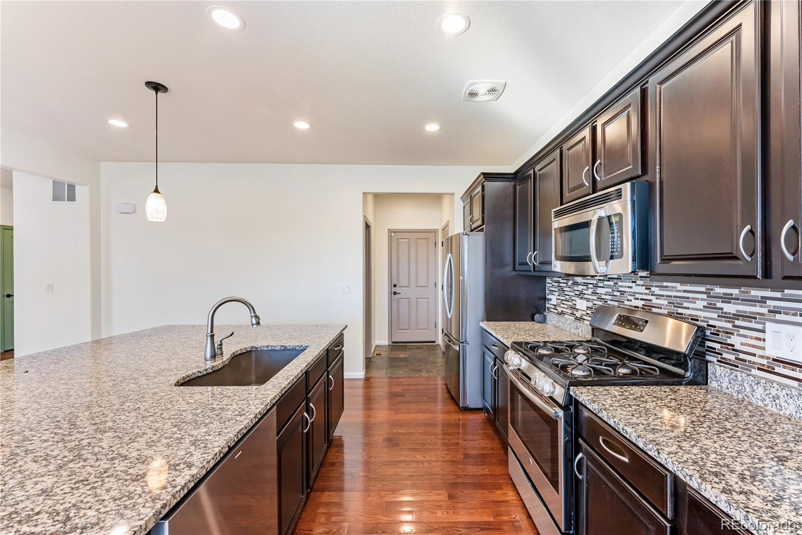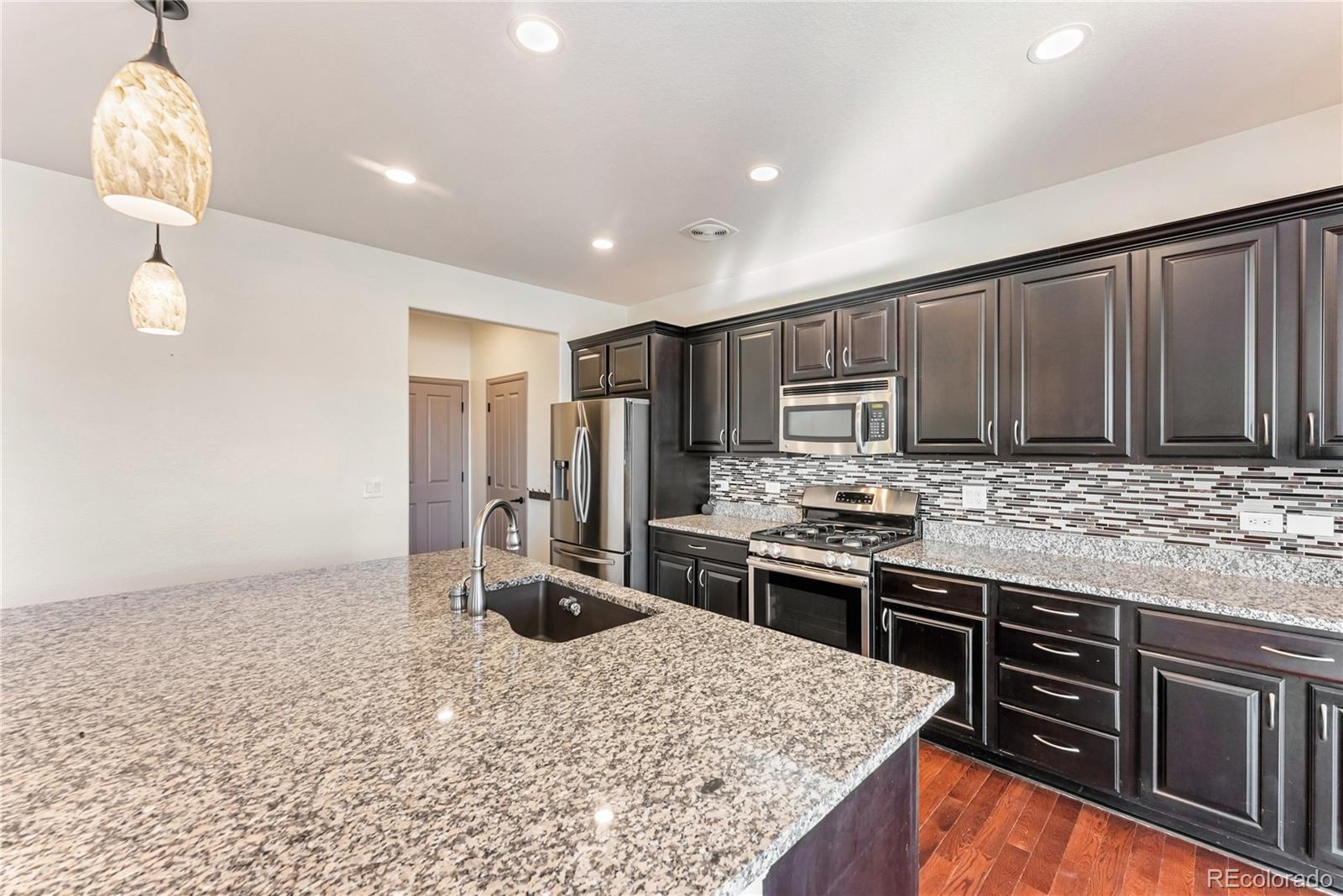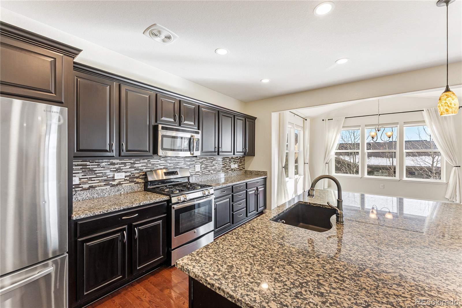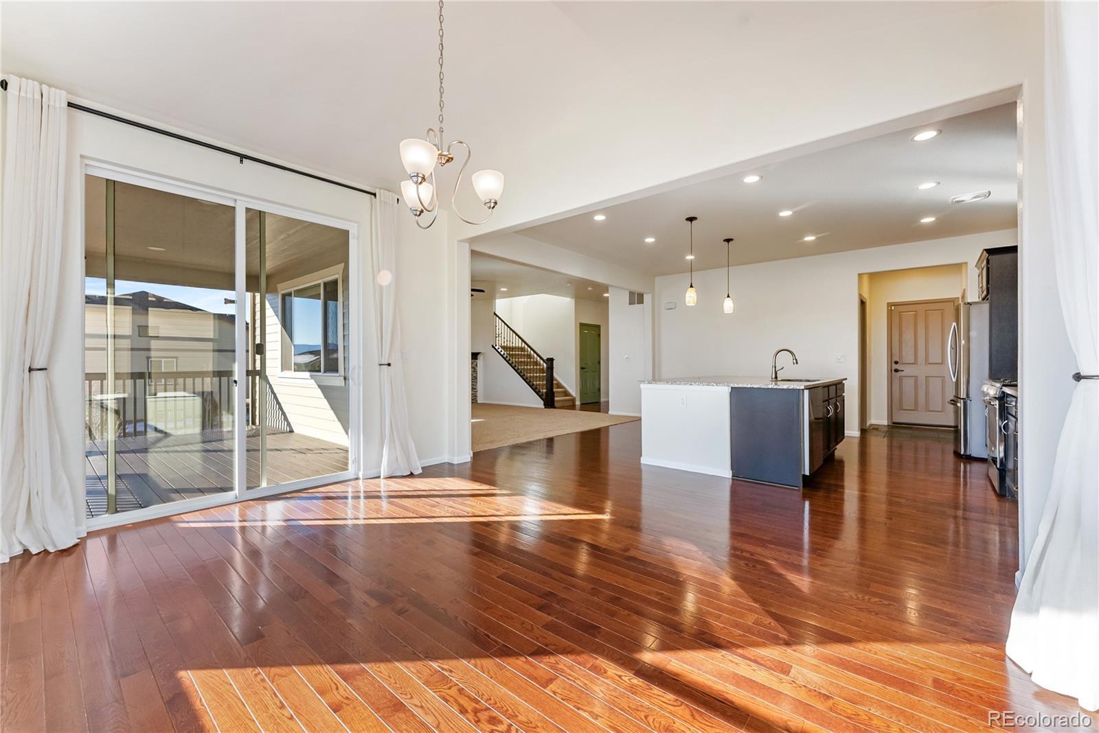 Located in the highly sought-after Wolf Ranch community with stunning mountain views, this exceptional 6-bedroom home sits on a beautifully landscaped and fully fenced corner lot featuring an outdoor basketball court, covered deck, finished basement, and a spacious 3-car garage. Inside, warmth and style meet functionality with an open layout designed for effortless living and entertaining. Enjoy morning coffee on the front porch, cozy evenings by the fire, or sunset views over the Front Range from the expansive back deck. The gourmet kitchen showcases a large granite island with seating, stainless steel appliances, gas range, and large walk-in pantry, flowing seamlessly into the bright and open dining area. The main level living room fits an oversized sectional and furniture and has a beautiful gas fireplace. A main-level office with French doors offers a quiet workspace overlooking the front porch. The home features brand-new carpet on the main level and upstairs, adding comfort and a fresh, updated feel throughout. Upstairs, there are four spacious bedrooms, two full baths, a versatile loft, and a convenient laundry room. The grand owner’s suite features an en-suite bathroom with a custom accent wall, barn door, rain shower, granite countertops, double vanity, and a generous walk-in closet with built-in storage and organization. The finished basement provides additional flexibility with a spacious flex room, newer carpet, two bedrooms, a full bath, and ample space for games, hobbies, or guests. Modern upgrades include Gemstone exterior lighting and automatic shades throughout. Just one block from Ranch Creek Elementary and close to parks, trails, and the lake, this home offers full access to Wolf Ranch’s vibrant amenities—recreation center, pool, dog park, SUP/kayaking and fishing lake, and award-winning D20 schools. Schedule your private showing today and experience the perfect blend of comfort, community, and Colorado living.