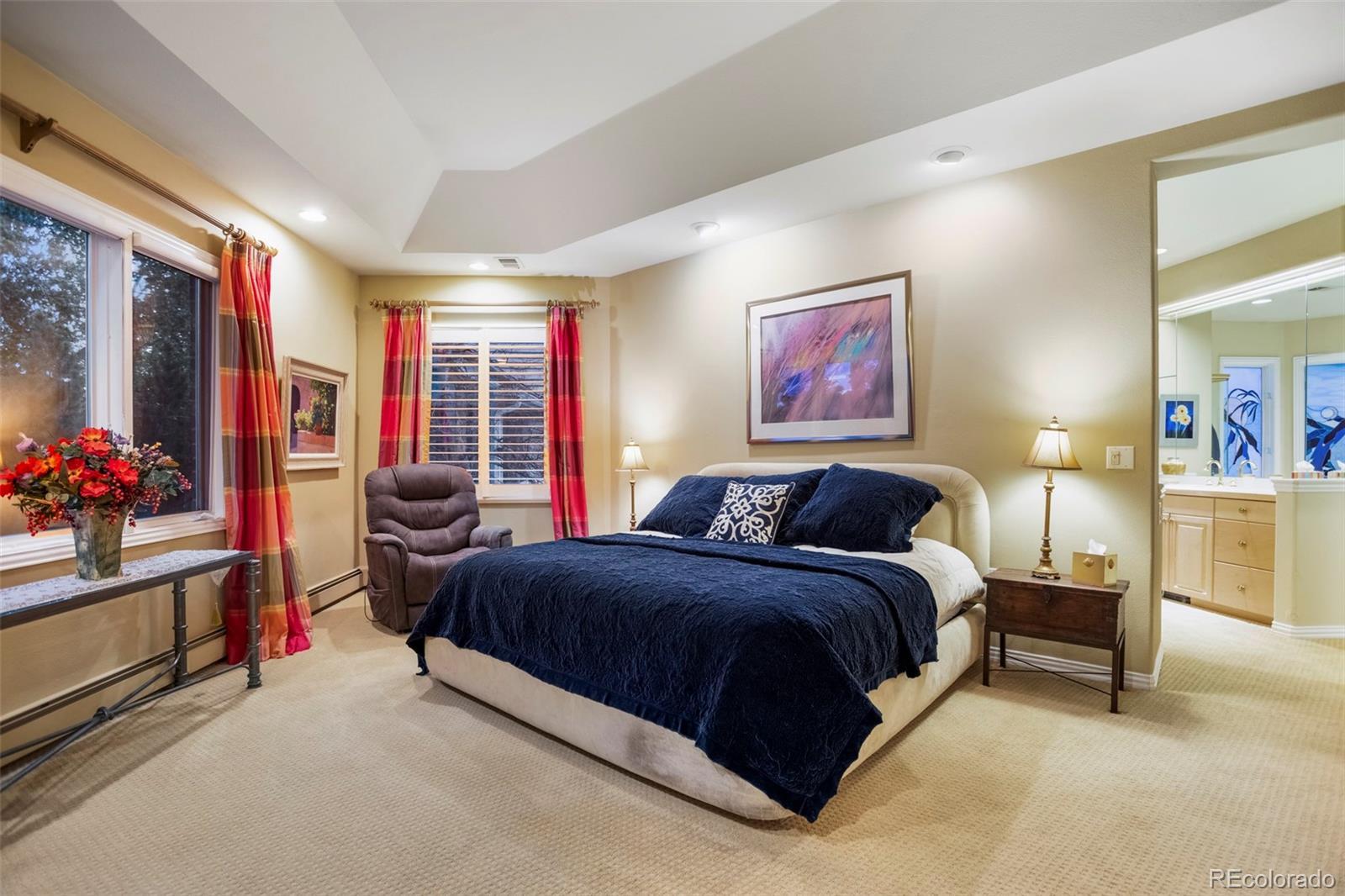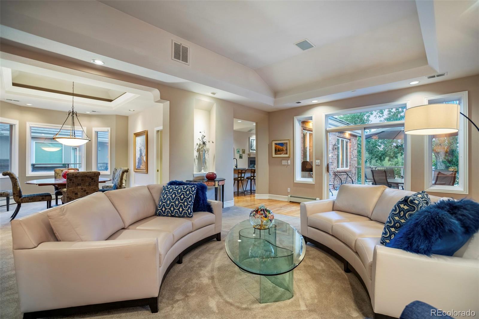 Elegant Home in Bateleur at The Preserve of Greenwood Village. Welcome to effortless luxury in the highly desirable Bateleur neighborhood in The Preserve of Greenwood Village. This beautifully maintained patio home offers an exceptional location, backing to the open space of the High Line Canal with peaceful views and distant mountain vistas — a truly serene setting in one of Greenwood Village’s most coveted communities. A custom foyer opens into a spacious and light-filled interior with vaulted ceilings and an open floor plan designed for both comfort and entertaining. The main floor features three bedrooms and three bathrooms, two spacious living areas, a formal dining room with a butler’s pantry, and a dedicated office or library with built-in bookshelves. Throughout the home, you’ll find tasteful finishings and classic design choices, including plantation-style shutters that enhance both style and privacy. The primary suite offers views of the open space, a large walk-in closet, and a luxurious five-piece bathroom that includes a bidet. From the main living area, a large deck provides the perfect space for outdoor dining or simply enjoying the peaceful natural surroundings. The walkout lower level extends the home’s functionality with a spacious bedroom featuring built-in shelving, a large living area, a full bathroom with a steam shower, and a workout room with direct access to the private patio. Residents also enjoy a private clubhouse with fitness center, resort-style pool and hot tub, lounge areas, and event space for residents year-round. Homes of this caliber in Bateleur are rarely available. Nearby homes—such as 9 Silver Fox Dr and 22 Blue Heron Dr—have recently sold as high as $2,625,000, reflecting the lasting value and desirability of this unique community. This is a rare opportunity to own a residence that blends timeless design with a premier location—ideal for those seeking low-maintenance living in one of Greenwood Village’s finest neighborhoods.