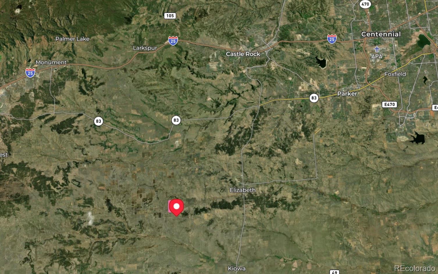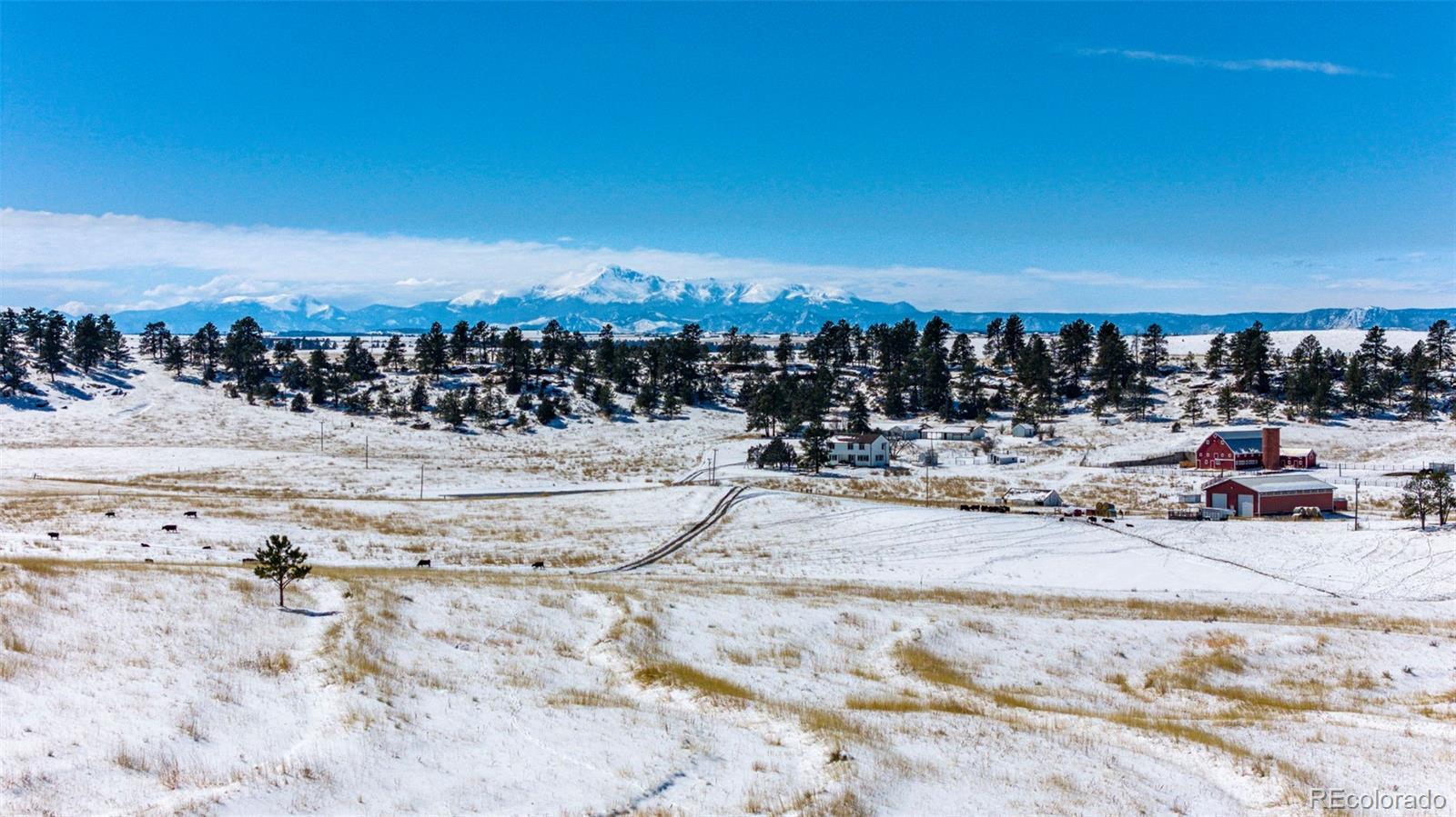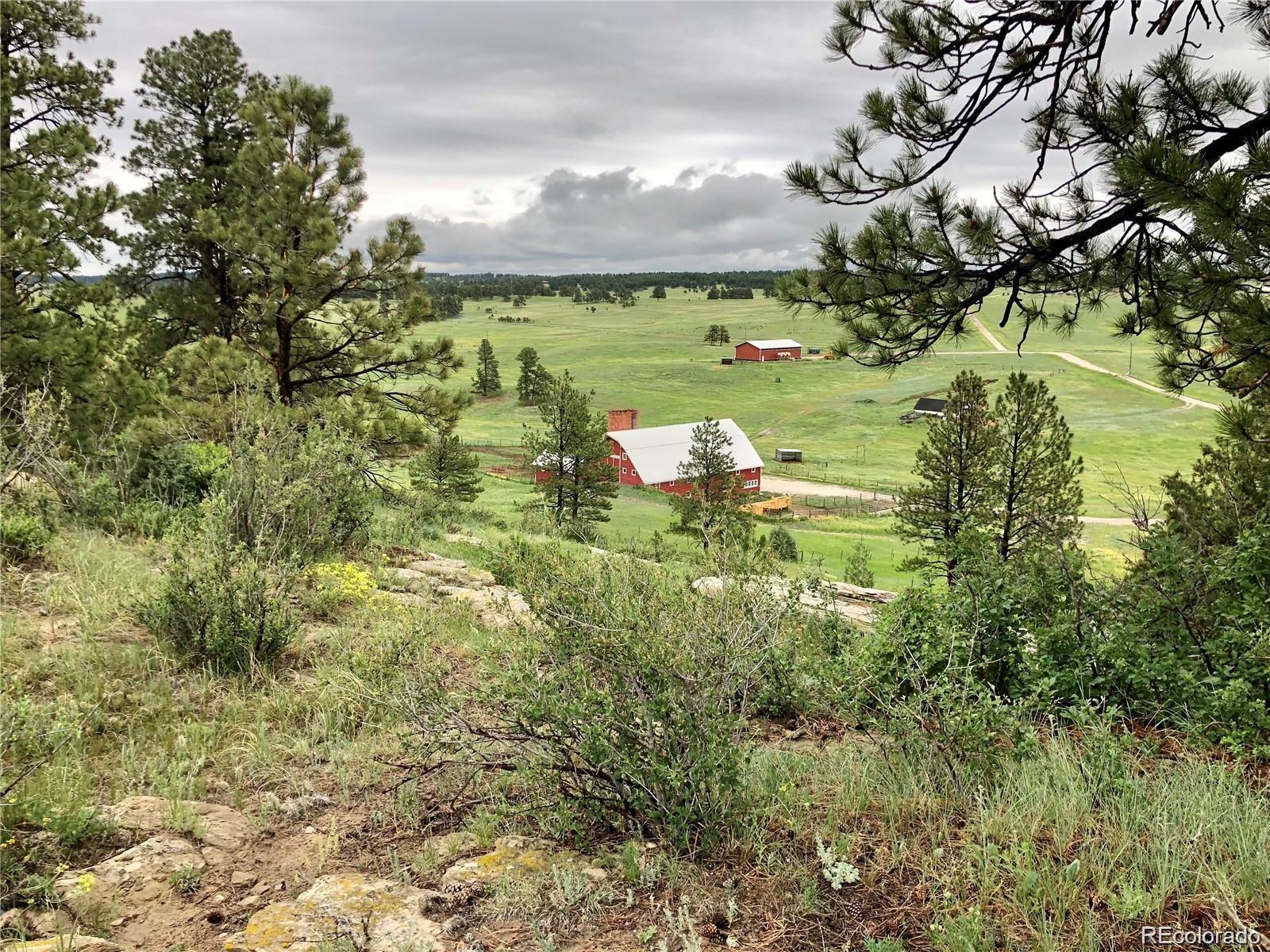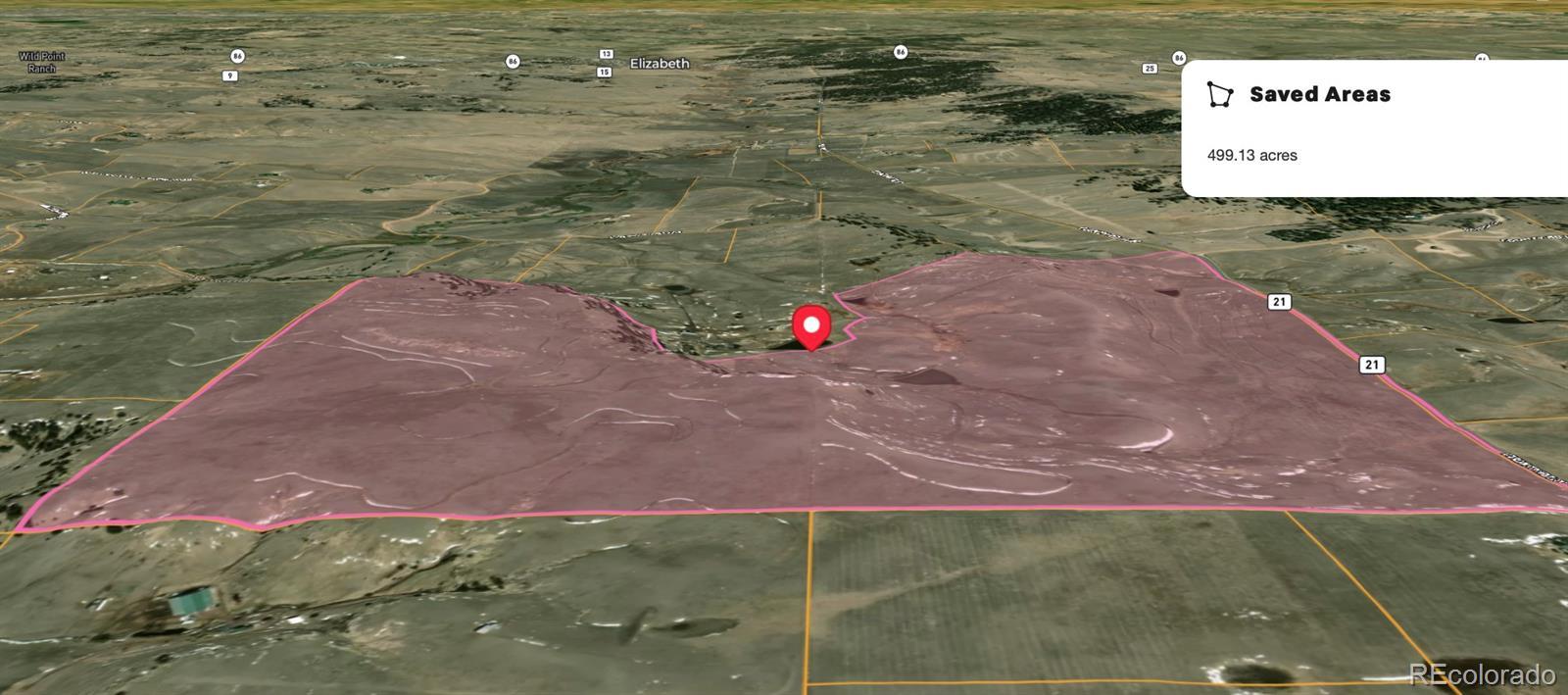 500 acre parcel with ample water rights developable land-south of Elizabeth town on a paved road -lot of road frontage, rolling hills, pine trees, rock outcroppings, amazing pikes peak views--country living yet close to the town restaurants, Super Walmart Starbucks are 10-15 min drive. Great opportunity to own this beautiful land for either immediate development or long term holding, nothing this size is available from Parker to Elizabeth. Water rights are negotiable. features rolling hills, drainage areas, several ponds, bluffs, rock outcroppings, pine trees, and incredible mountain and country views.This is a 700 acres parcel and only selling 500 acres will carve out the homes, barns and 200 acres at the time of closing or can include in this sale for additional $5M.