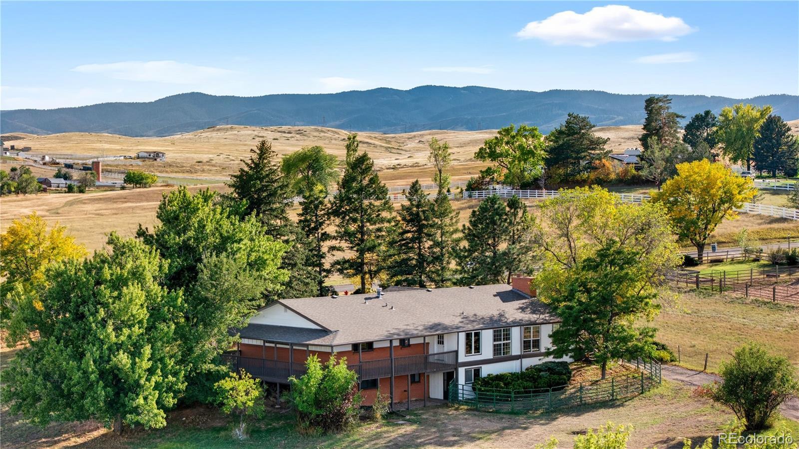 4.77 acre property ZONED FOR HORSES near all of the city amenities! Located in the small subdivision (29 homes) of Plum Valley Heights. Near Chatfield Reservoir, Waterton Canyon and less than 15 min to Castle Rock, 15 min to Downtown Littleton, and 30 minutes to Denver. Horse riding trails throughout the subdivision and close to an outdoor arena. HUGE 2200+ sqft WAREHOUSE FOR RV's TOYS, or WORK SHOP! The home has NEW INTERIOR AND EXTERIOR PAINT and NEW CARPET throughout. Kitchen and baths updated about 8 years ago, 3 bedrooms and 2 baths on the main floor, 1 bedroom and 1 bath in the walk out basement. Cherry wood cabinets in the kitchen, granite counter tops. Large formal dining room and living room. Large family room with wood burning fireplace opens to enclosed patio and walk out deck with great views of the property. Primary bedroom has private updated 3/4 bathroom. Finished walk out basement offers bedroom and bath w/ huge walk in closet, workshop/storage room with cedar closet, additional den/family room with wood burning fireplace. Enclosed patio with hot tub! This property currently has smaller shed/barn PLUS an large warehouse w/ concrete flooring, electrical and heat source. Easy to park and RV in with oversized door, 220 outlets and heat source perfect for the car enthusiast, RV parking or workshop of your dreams. Easy to install fencing and create a great pasture for horses! Property was once on well water, currently on public water. Quick possession and closing possible. A short 10 minutes to 470 and Santa Fe Dr., less than 10 minutes to Roxborough Safeway shopping center for groceries, restaurants, gas station, public library and day care just to name a few places.