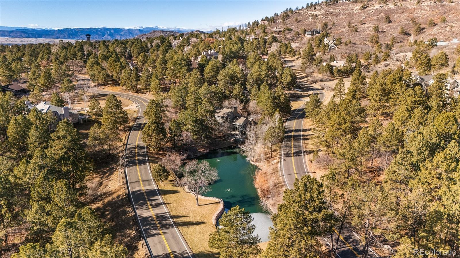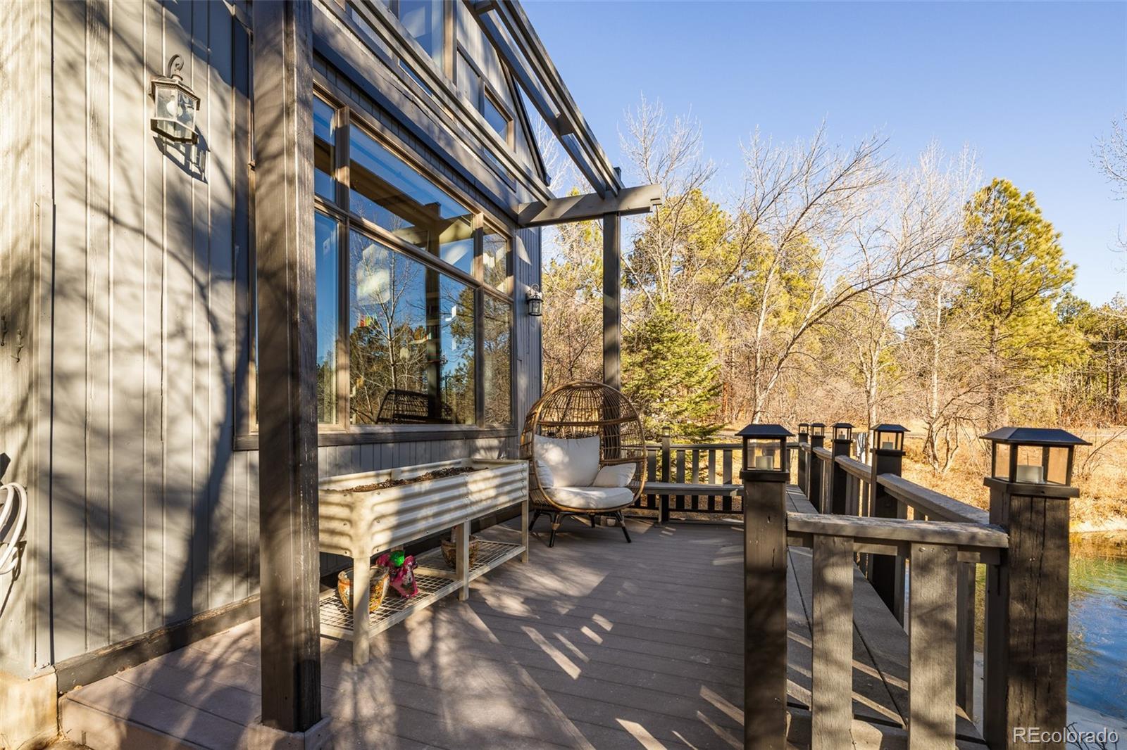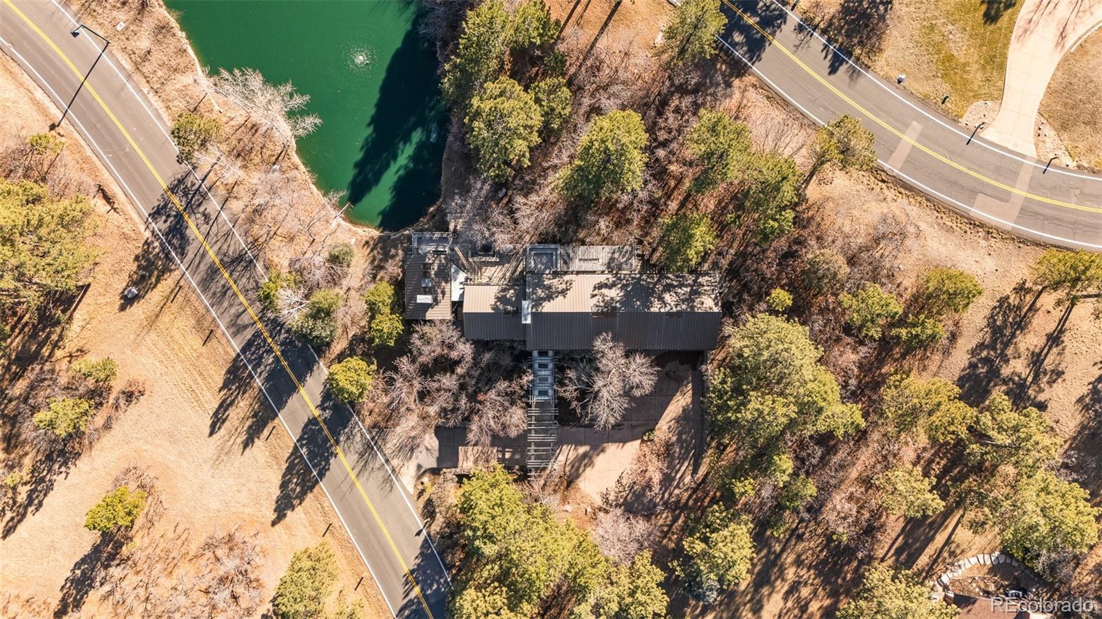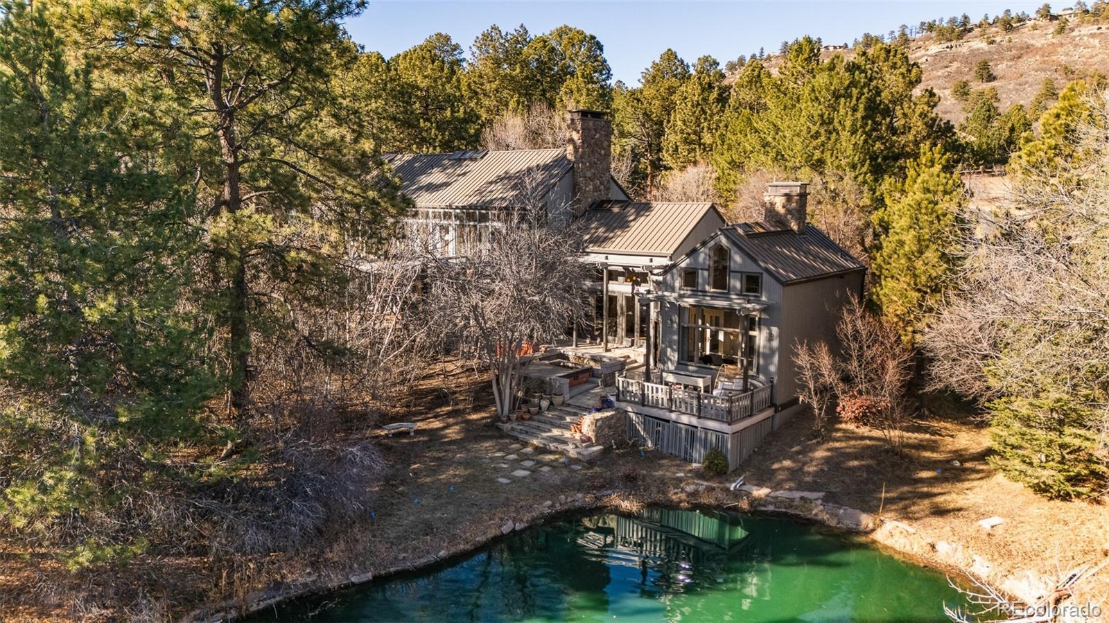 A rare waterfront sanctuary nestled within the gates of Castle Pines Village, this architecturally striking home harmonizes soaring design with serene lakefront living. Situated in a gated golf course community, this residence showcases expansive south-facing windows, multiple French doors and flexible living spaces that seamlessly blend indoor elegance with stunning water views. A sunken great room with vaulted tongue-and-groove ceilings and a full wall of custom built-in bookshelves is warmed by a floor-to-ceiling stone fireplace. The expansive chef’s kitchen impresses with premium appliances and an oversized center island. Retreat to the main primary suite boasting vaulted tongue-and-groove ceilings, a private deck and a luxurious five-piece bath. A second primary suite with a large custom closet offers direct access to a versatile den connected by a glass-walled catwalk. An attached, fully equipped casita provides space for guests or multi-generational living, while the finished lower level hosts a generous flex space with a ¾ bath. Outdoors, sweeping decks, flagstone patios and a custom chiminea fireplace overlook tranquil waters and mature landscaping. This refined retreat is complete with a three-car heated garage and access to HOA amenities including pools, tennis, trails and 24/7 emergency services.