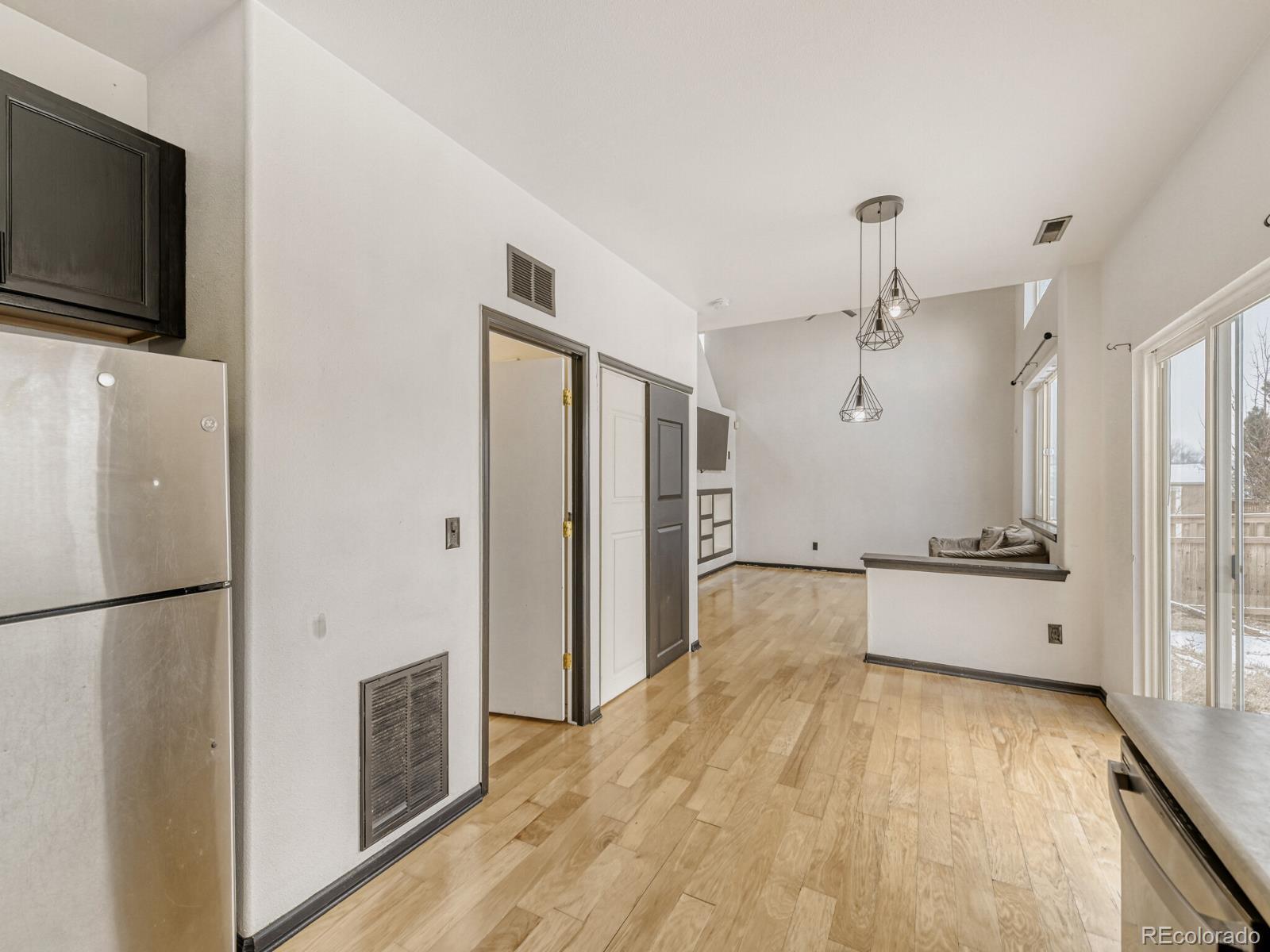 Welcome home to this 3-bedroom, 2.5-bathroom property in Brighton. From the moment you step inside, you’ll appreciate the bright, open layout highlighted by vaulted ceilings, hardwood flooring, and a modern, cohesive design. The living room features soaring ceilings, built-in shelving, and a dedicated space for a mounted TV—perfect for everyday living and entertaining. The adjacent eat-in kitchen offers stainless steel appliances, stylish cabinetry, and a breakfast nook with direct access to the patio. Enjoy a private backyard with a tall fence providing both privacy and a peaceful setting for outdoor gatherings or quiet evenings at home. Upstairs, the primary suite offers a private en-suite bathroom and a spacious walk-in closet, creating a comfortable retreat. Conveniently located near Dewey Strong Park, shopping, dining, and with easy access to I-76, this home offers both comfort and accessibility for commuters.