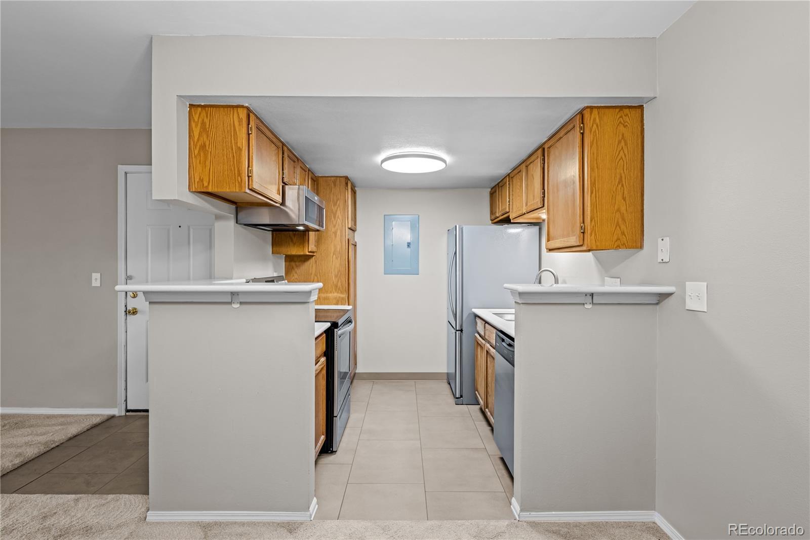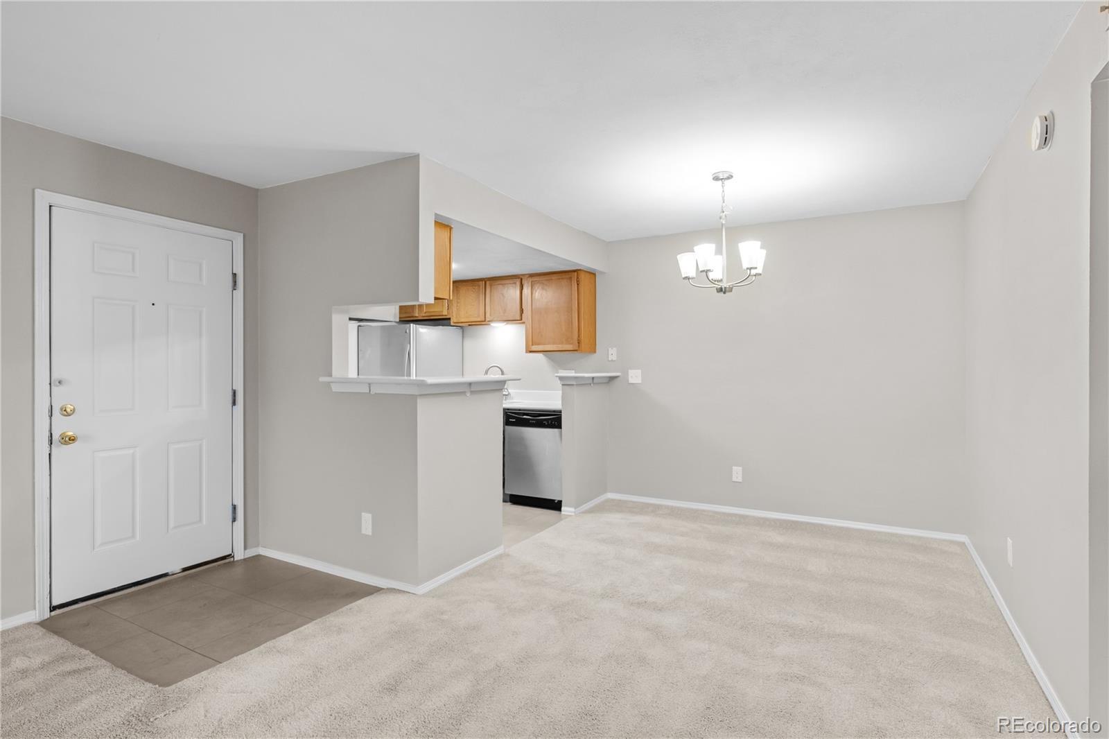 Welcome to Woodside Village Condos! 8225 Fairmount Drive Building 1 Unit 103 is a ground level condo with one bedroom and one bathroom. New Carpet and New Paint!. Its south facing location offers great natural light. The spacious unit has neutral colors throughout, making personalization easy. The living/dining area features a wood burning fireplace and walks out to a private covered patio that extends the length of the unit. The galley kitchen boasts quartz counters and recent stainless steel appliances. The large bedroom has an amazing walk-in closet, and the full bathroom includes a full sized washer and dryer. Detached 1-car garage. The community provides multiple amenities including a large community pool, a dog park, visitor parking, and convenient access to public transportation. Nearby attractions include the High Line Canal Trail, Lowry Town Center, Wings over the Rockies Air & Space Museum, Jackie Robinson Fields Park, Lowry Sports Park and Open Space, and so much more.