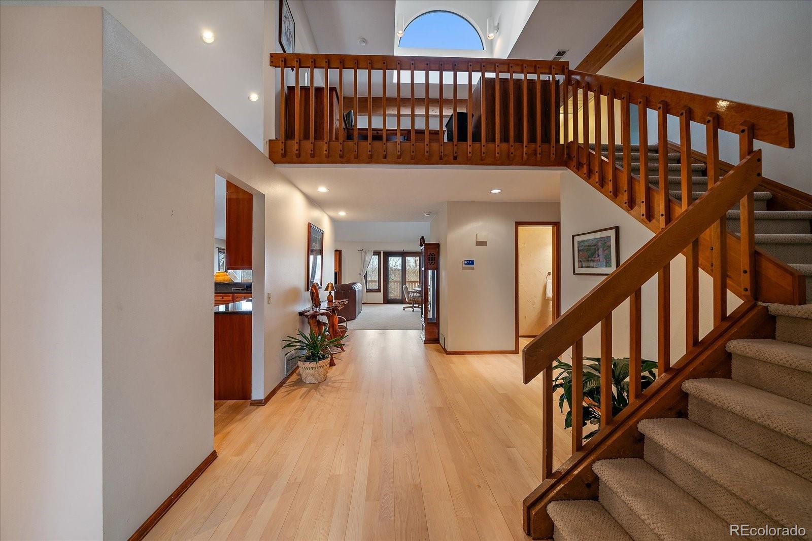 Incredible opportunity awaits in Foxridge! Welcome to this charming single-family home in Centennial, Colorado, ideally located in a quiet cul-de-sac with mountain views and unmatched neighborhood amenities. This home offers a highly sought-after main floor primary suite, making it perfect for long-term livability and everyday convenience. The largest home plan available in the coveted Foxridge community, this home provides 6 bedrooms, 4 bathrooms with room to customize additional finishes with ample storage space including a seasonal cedar closet. The spacious kitchen features updated finishes and flows seamlessly into the main living spaces, ideal for both daily living and entertaining with multiple sets of french doors to access the newer expansive wraparound deck, where you can enjoy peaceful views and Colorado sunsets. Additional living space includes a dedicated dining room, three oversized bedrooms on the upper level with a full bathroom, a versatile loft and a walkout basement, offering flexible options for guests, a home office, recreation room, or multigenerational living. Recent updates include a newer roof, providing added peace of mind. The home backs to a community trail, and is just steps from the Foxridge neighborhood park, community pool, and tennis courts, creating a true lifestyle-focused setting. Located in the highly regarded Cherry Creek School District feeding into Cherry Creek High School, this home also offers exceptional proximity to C-470, I-25, and the Denver Tech Center, making commuting and access to shopping, dining, and employment centers effortless. A rare opportunity to own a move-in-ready home with outdoor space, views, and one of the best locations in Centennial.
