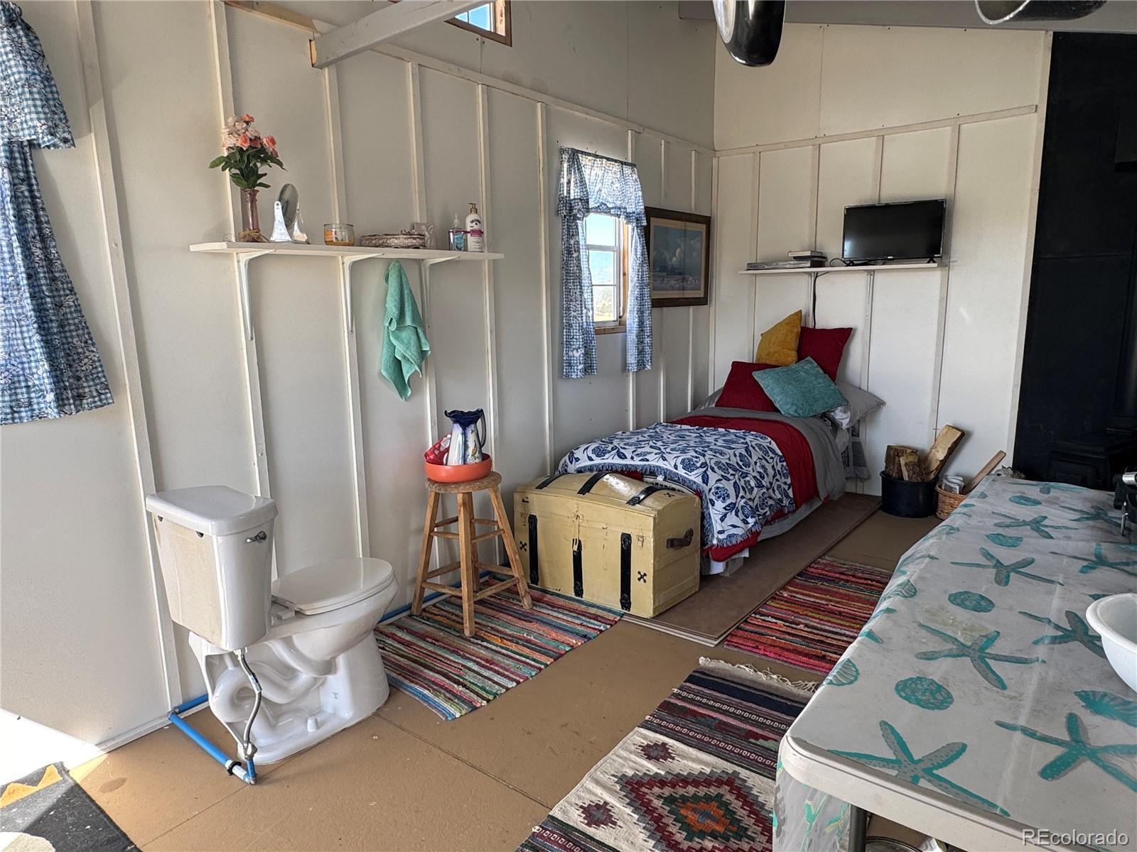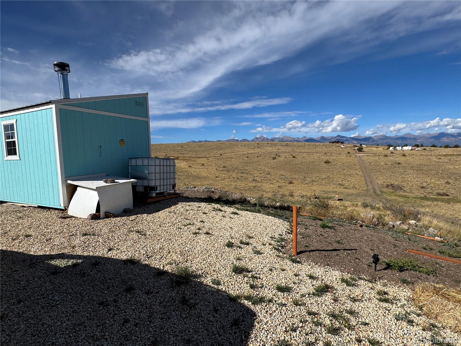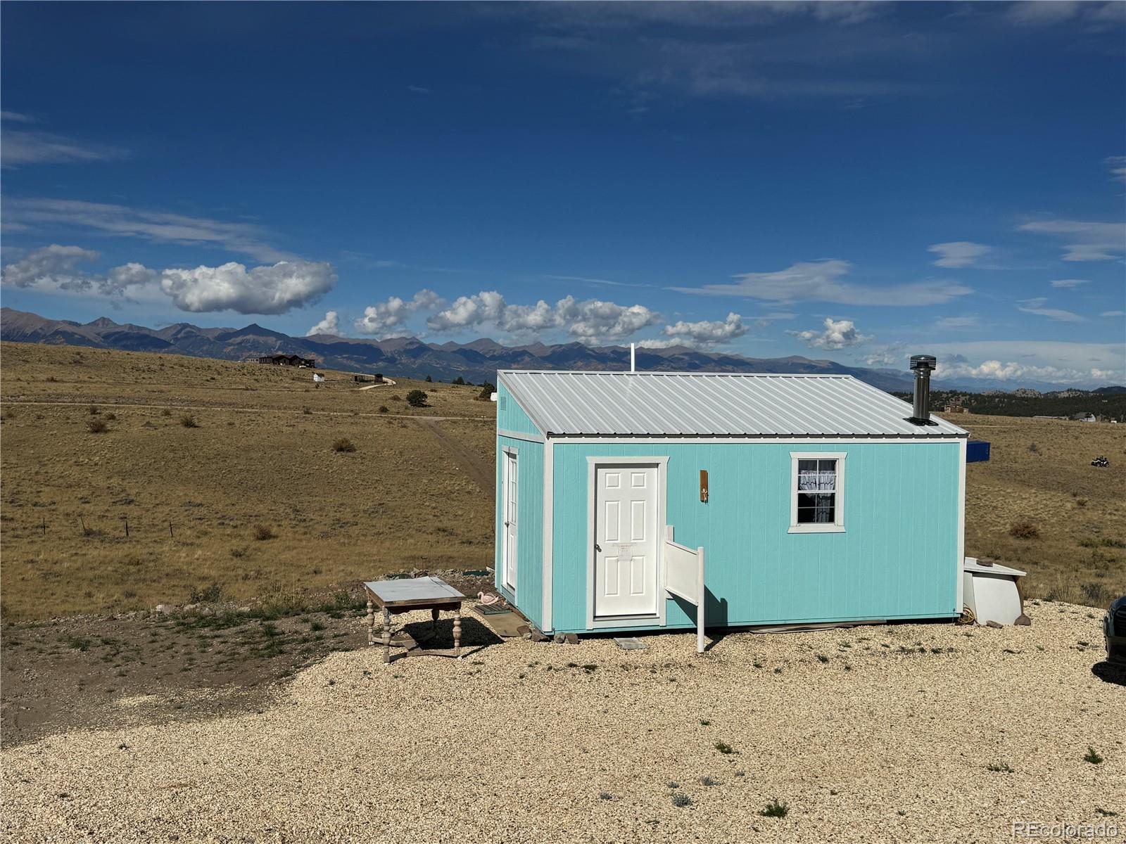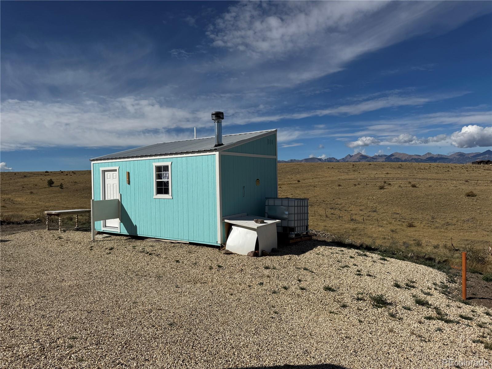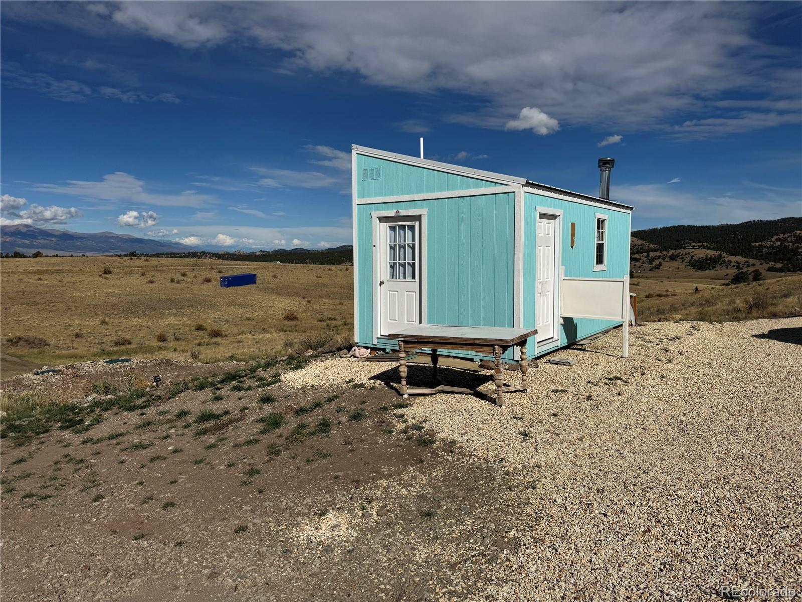 A perfect get-away has been built on this gently rising 5-acre parcel with panoramic views of the distant Sangre de Cristo Mountains. It's not quite finished yet but it is so well done! One room 200 SF building for camping out while building your dream home. Inside is a wood burning stove,bed,toilet,kitchenette area with hot plate. New septic system, generator and easy accessible refillable water tank complete the package. Located on well-maintained roads for year-round access to the charming mountain town of Westcliffe as well as the myriad of recreational opportunities that abound in the area!