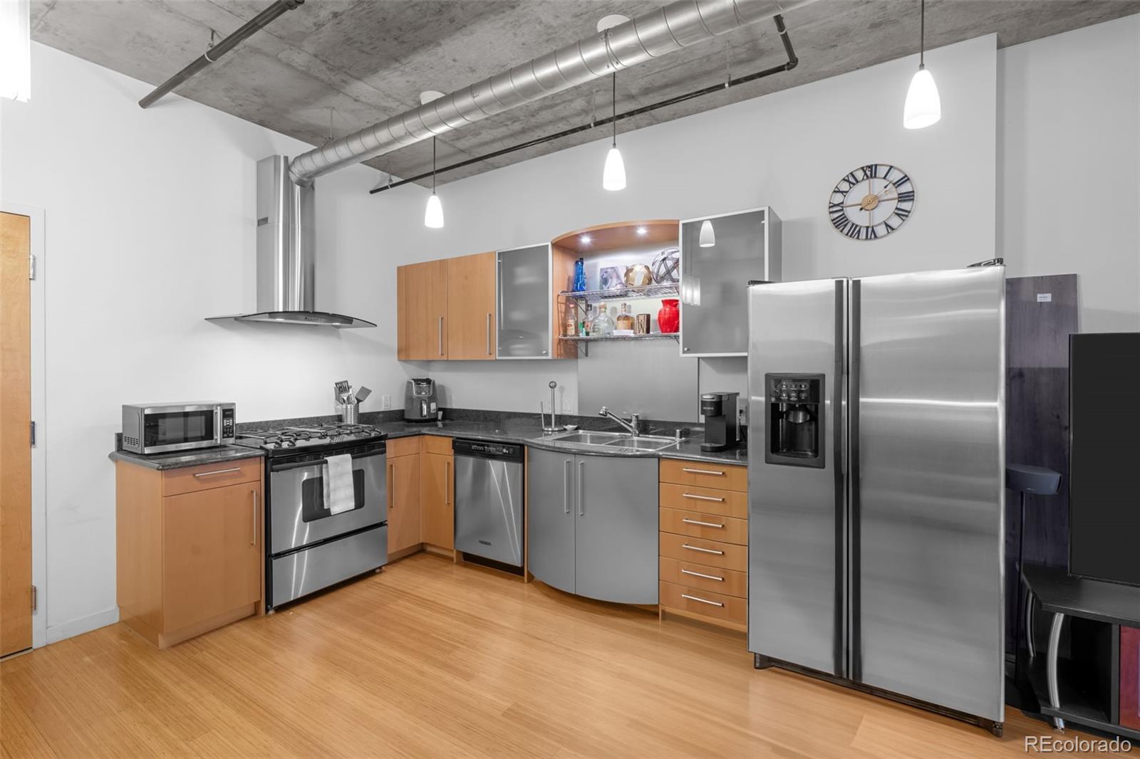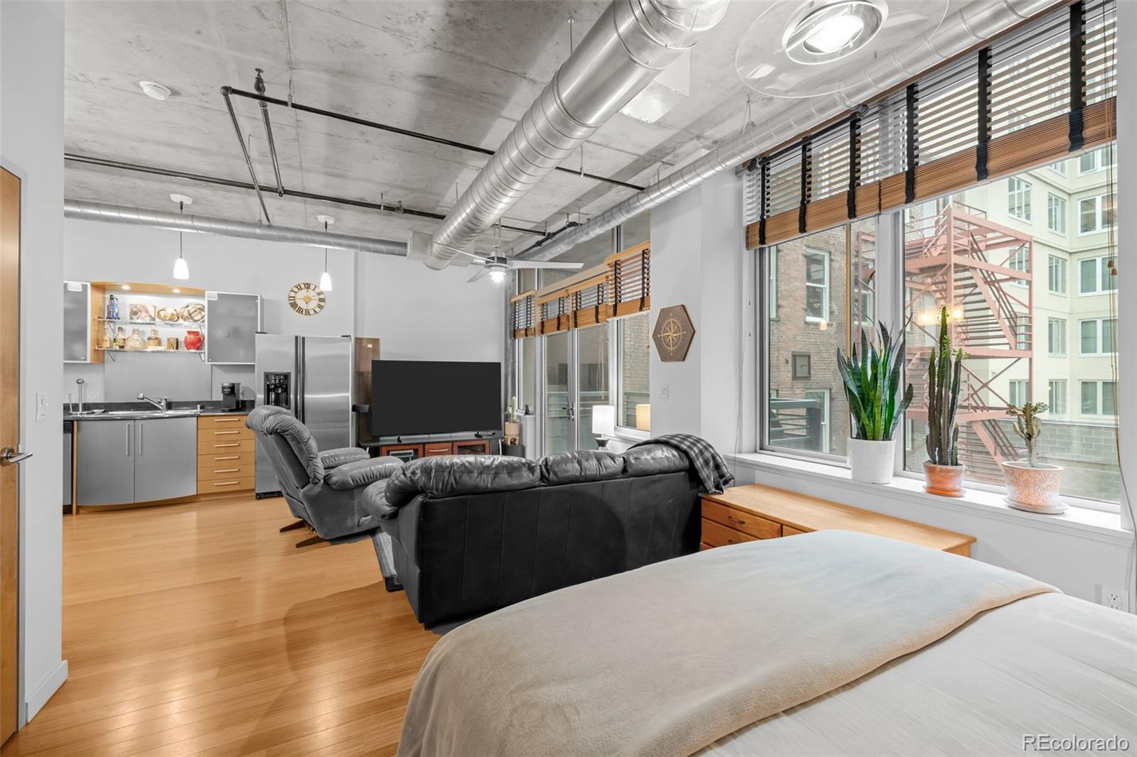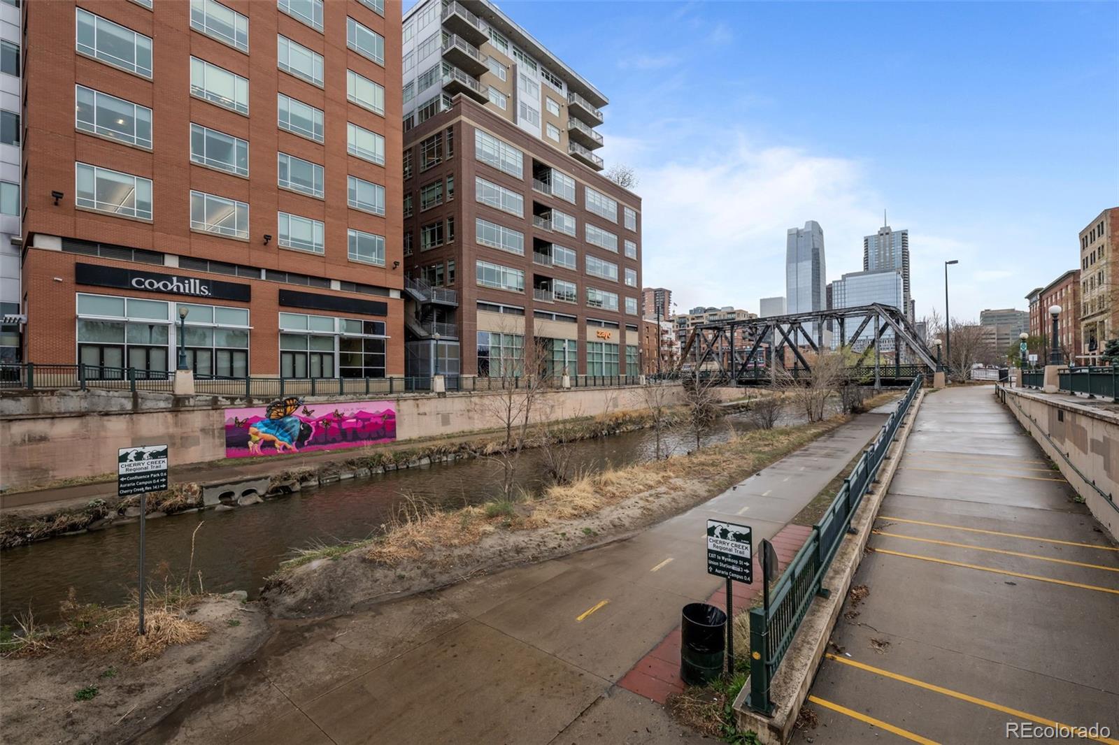 Unbeatable location! Located at the corner of Speer Blvd and Wewatta Street, this great studio condo in the highly desired Waterside Lofts is close to everything. The Cherry Creek bike path is right out the front door (bike score of 90). Walk or cycle east to Cherry Creek Reservoir, south to Chatfield Reservoir or north to Boulder. Walk across Speer Boulevard to Ball Arena and Elitch Gardens. Empower Field is a little longer walk across the Platte River, and Whole Foods Market and Union Station are just a couple blocks away with light rail to DIA and service all over the city. There are also several award- winning restaurants within blocks of this great home. Metro State University and University of Colorado - Denver Campus are just across the street as well. A 7 block Uber or Mall shuttle ride takes you to the Denver Performing Arts Complex and the Colorado Convention Center. The building has a secure entrance with a 24 hour desk attendant and secured underground parking. There is a state-of-the-art fitness center, a business center and a community room available to residents for many uses. The bike maintenance area includes an air compressor for low tires. This home includes all appliances: gas range, dishwasher, refrigerator and countertop microwave, plus a stackable washer/dryer. The private balcony also has a hard plumbed gas line for your grill (no tanks necessary!).