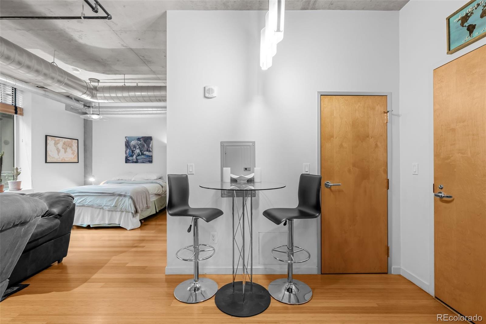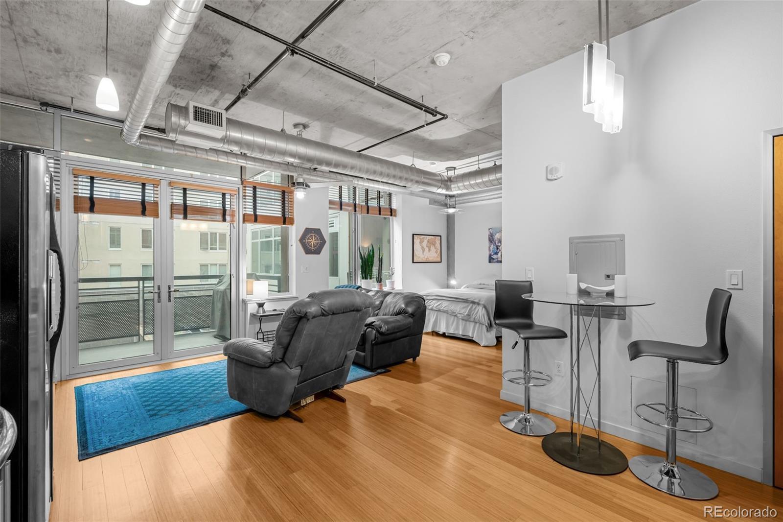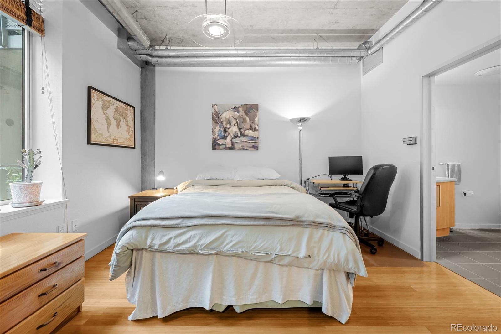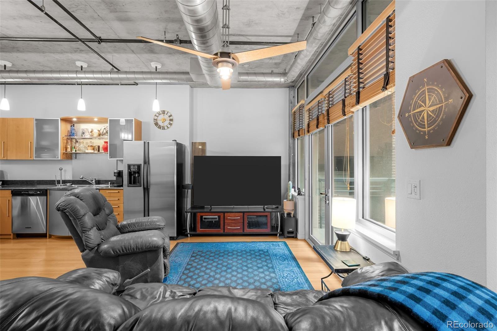 Unbeatable location! Located at the corner of Speer Blvd and Wewatta Street, this great studio condo in the highly desired Waterside Lofts is close to everything. The Cherry Creek bike path is right out the front door (bike score of 90). Walk or cycle east to Cherry Creek Reservoir, south to Chatfield Reservoir or north to Boulder. Walk across Speer Boulevard to Ball Arena and Elitch Gardens. Empower Field is a little longer walk across the Platte River, and Whole Foods Market and Union Station are just a couple blocks away with light rail to DIA and service all over the city. There are also several award- winning restaurants within blocks of this great home. Metro State University and University of Colorado - Denver Campus are just across the street as well. A 7 block Uber or Mall shuttle ride takes you to the Denver Performing Arts Complex and the Colorado Convention Center. The building has a secure entrance with a 24 hour desk attendant and secured underground parking. There is a state-of-the-art fitness center, a business center and a community room available to residents for many uses. The bike maintenance area includes an air compressor for low tires. This home includes all appliances: gas range, dishwasher, refrigerator and countertop microwave, plus a stackable washer/dryer. The private balcony also has a hard plumbed gas line for your grill (no tanks necessary!).