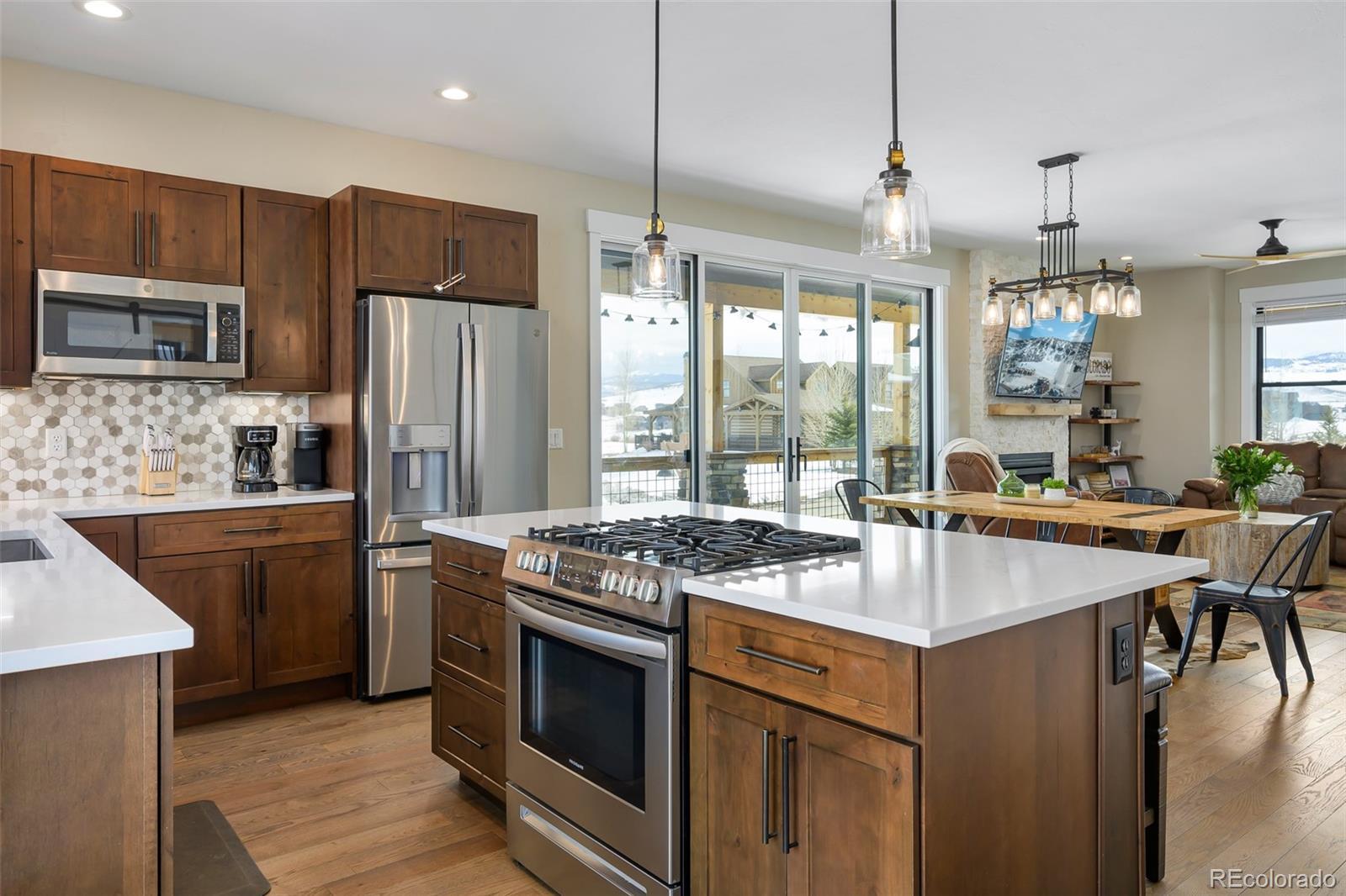 This exquisite 4-bedroom, 3.5-bathroom residence, completed in 2022, offers a remarkable investment opportunity, having generated $93,000 in gross rental income last year. The wrap-around deck on this corner lot enhances views of Rocky Mountain National Park, Grand Elk Golf Course, and expansive landscapes. The home features premium finishes, including quartz countertops, genuine hardwood flooring, and custom tile work. The open great room layout is highlighted by upscale light fixtures and a fully stacked surround fireplace, combining elegance with comfort. With two living areas and four spacious bedrooms, this home is perfect for families and guests, providing ample space for everyone. Adjacent to Linke Ranch, the property ensures unmatched privacy and stunning views from every window, complemented by an abundance of natural light. A large wrap-around deck beckons you to unwind and enjoy the beauty of the surrounding scenery. Situated in the prestigious Grand Elk Golf Community, this home comes with a membership that offers access to various amenities, including unlimited golf, a swimming pool, and hot tubs. This property is distinguished by its exceptional quality and meticulous attention to detail, providing a luxurious living experience without the complications of new construction.