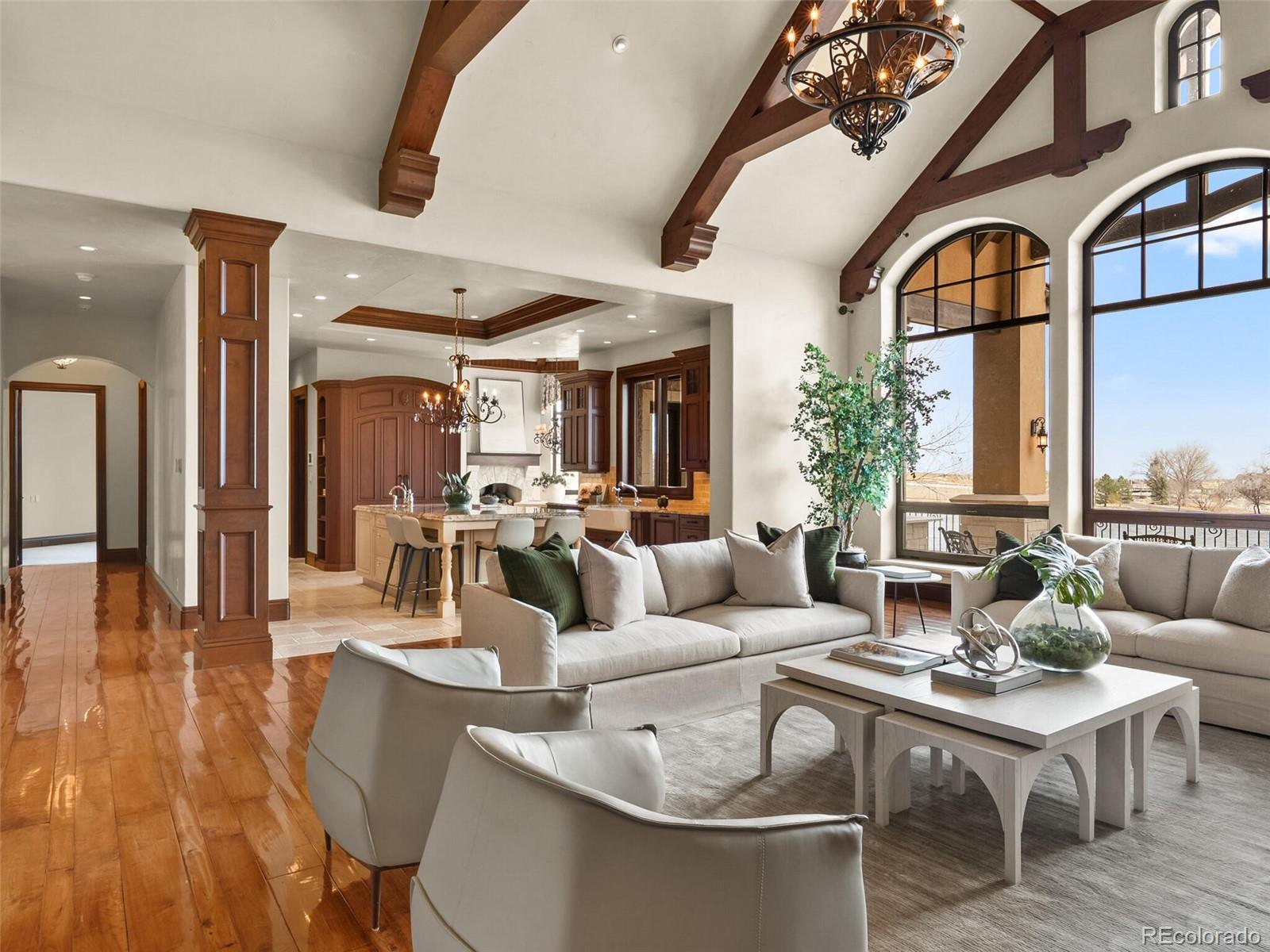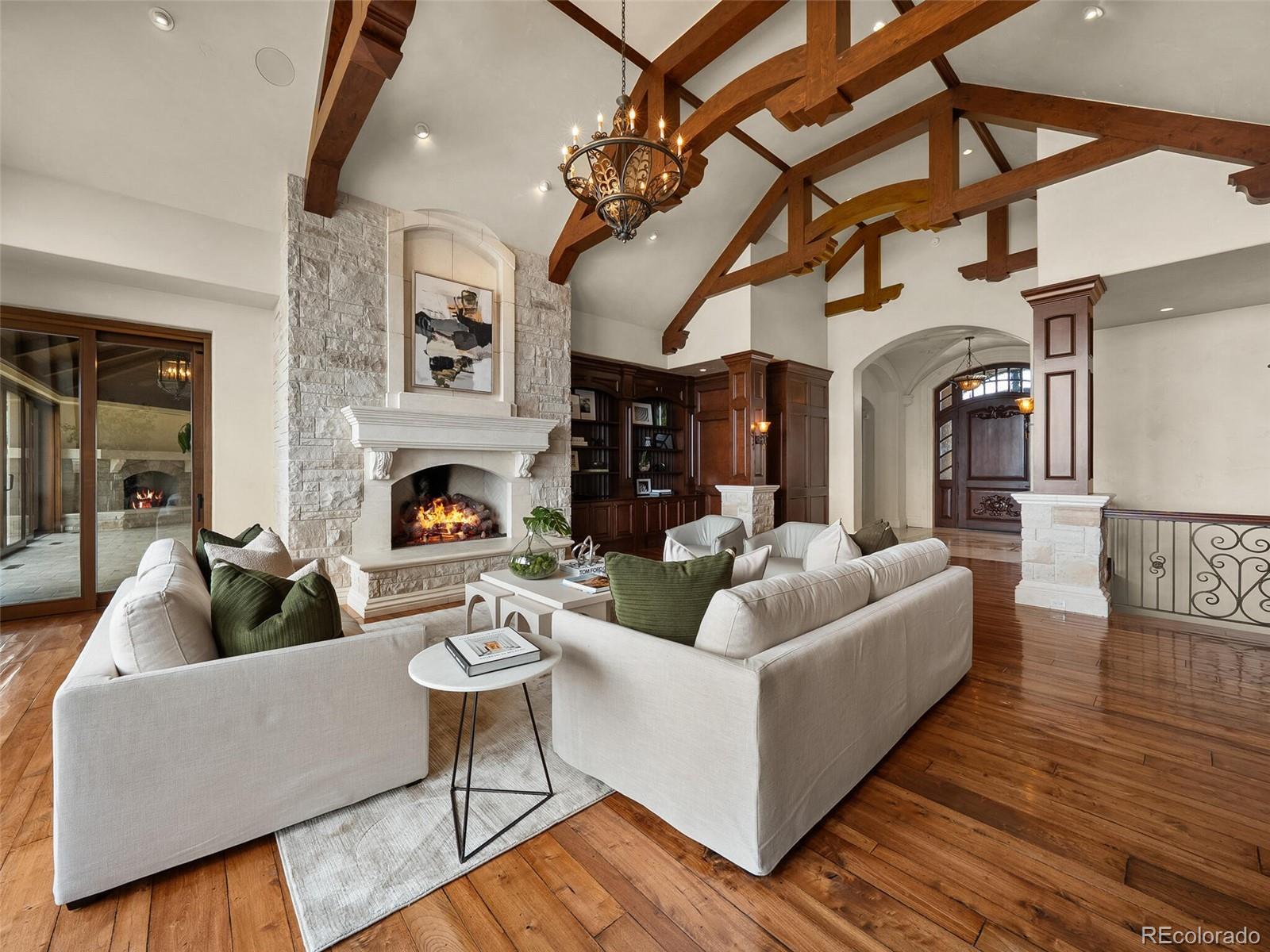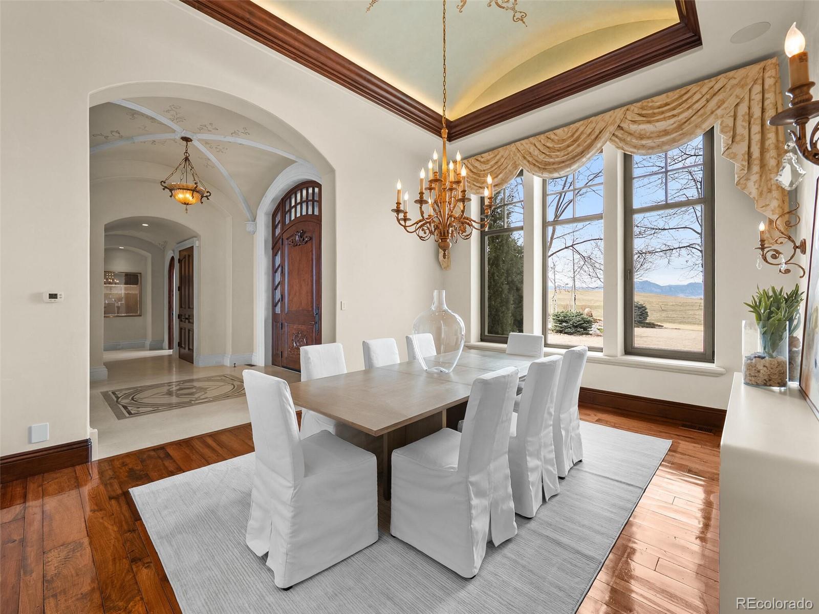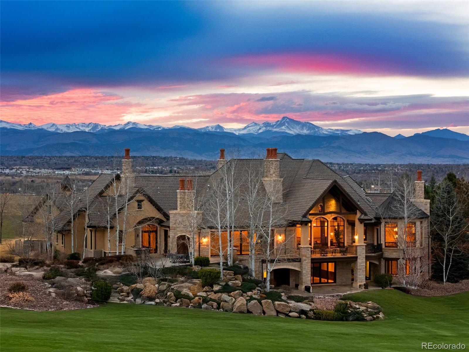 Set on a pristine 1-acre lot at the end of a private cul-de-sac, this estate is a rare sanctuary of luxury and tranquility in one of Broomfield’s most exclusive gated enclaves. From the moment you step inside, soaring ceilings and breathtaking views set the stage for an architectural masterpiece. To the west, the majestic Front Range and Flatirons unfold, while to the east, a private lake framed by towering old-growth trees offers a serene retreat. German-engineered wood windows flood the home with natural light, and radiant floor heating ensures year-round comfort—all seamlessly blending unparalleled craftsmanship with modern sophistication. The gourmet kitchen showcases top-tier appliances—a Wolf gas range, dual Bosch dishwashers, a Sub-Zero refrigerator, dual KitchenAid ovens, and a Miele coffee center—all seamlessly integrated for style and function. The expansive main level boasts three en-suite bedrooms, including a serene primary retreat, while the lower level offers three additional en-suite bedrooms. Entertainment abounds with a state-of-the-art 12-person theater, a climate-controlled wine cellar, and a full bar and game room featuring billiards, shuffleboard, and poker tables. For wellness and relaxation, enjoy the dedicated home gym or retreat to the indoor-outdoor atrium, enclosed by floor-to-ceiling sliding pocket doors. Multiple expansive patios and decks, crafted from Colorado Buff Sandstone, offer breathtaking vantage points to soak in the surrounding beauty. For extended guest stays, a separate lock-off cottage provides complete privacy, featuring two beds, two baths, a kitchen, living room, private laundry, and garage. A hydraulic drive elevator provides effortless access to all levels, while a heated driveway and 4-car garage offer both practicality and prestige. Ideally situated just 30 minutes from Denver, Boulder, and the Denver Tech Center, this exceptional estate offers a rare opportunity to enjoy unmatched luxury, privacy, and convenience.