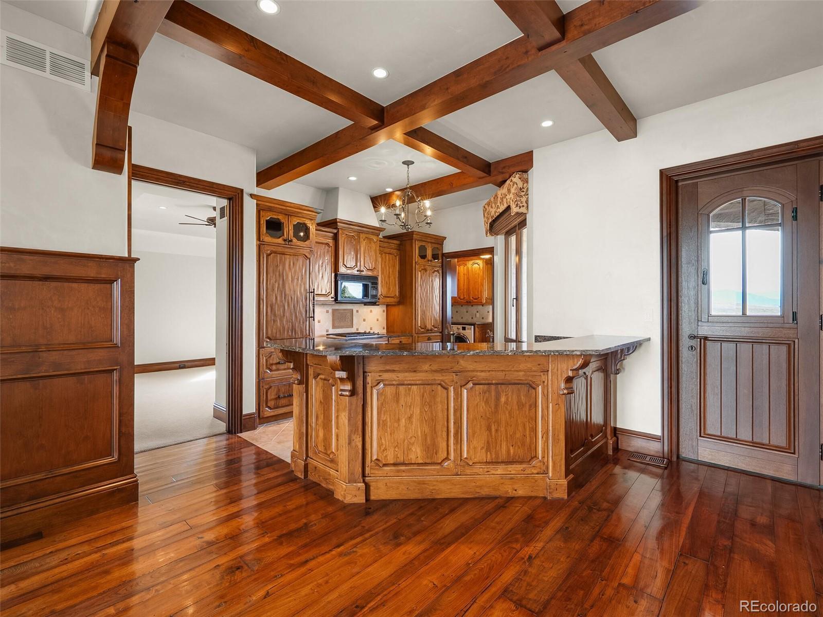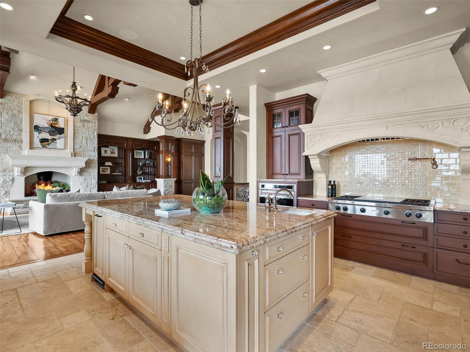 Audio/Video Controls, Breakfast Bar, Built-in Features, Ceiling Fan(s), Central Vacuum, Eat-in Kitchen, Elevator, Entrance Foyer, Five Piece Bath, Granite Counters, High Ceilings, In-Law Floorplan, Jack & Jill Bathroom, Kitchen Island, Marble Counters, Open Floorplan, Pantry, Primary Suite, Sound System, Walk-In Closet(s), Wet Bar