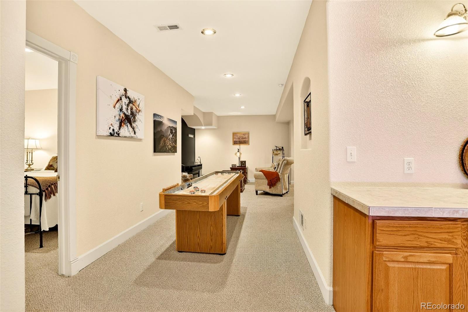 LOCATION! LOCATION! POSSIBLY THE BEST LOCATION IN THE COMMUNITY WITH MOUNTAIN & SUNSET VEWS & ACROSS FROM THE HIGHLANDS RANCH GOLF CLUB*UPON ENTERING THIS FANTASTIC HOME, YOU ARE CAPTIVATED BY ITS OPENESS WITH LIGHT STREAMING IN FROM THE MANY WINDOWS & VAUTED CEILINGS, MAKING IT WARM & INVITING*THE STUNNING FAMILY ROOM BOASTS CUSTOM CABINETS & BOOKCASES WITH NEW FIREPLACE ACCENTED BY STONE SURROUND*THE ADJACENT DINING ROOM FLOWS INTO THE GOURMET KITCHEN WITH CUSTOM CABINETS, GRANITE COUNTERS & STAINLESS STEEL APPLIANCES, ALL INCLUDED*THE MAIN FLOOR MASTER BEDROOM IS EXPANSIVE WITH ELEGANT ACCENT WALL & THE ENSUITE BATH WAS REMODELED WITH QUARTZ COUNTERS, LARGE ZERO CLEARANCE SHOWER, SOAKING TUB & HEATED FLOOR WHICH PROVIDES COZY COMFORT*THE MAIN LEVEL ALSO HAS A CONVENIENT LAUNDRY ROOM & A SECONDARY BEDROOM WITH CROWN MOLDING & A LARGE WALK-IN CLOSET*ENJOY THE SINGLE FLOOR LIVING STYLE WITH BONUS LOFT WHICH OFFERS CUSTOM BOOKCASES, DESK & ADJACENT 1/2 BATH*THE LOWER LEVEL FAMILY ROOM CAN ACCOMODATE SEVERAL ENTERTAINING AREAS WITH A LARGE TV ,ELECTRIC FIREPLACE & SHUFFLE BOARD TABLE INCLUDED*A GENEROUS BEDROOM & 3/4 BATH MAKE THIS LOWER LEVEL PERFECT FOR TEENS, LIVE-INS OR GUESTS*RELAX OUTSIDE ON THE LOVELY PATIO WITH NEW RETRACTABLE AWNING AS YOU TAKE IN THE STUNNING VIEWS*TAKE A SIGH OF RELIEF AS THE FURNACE, A/C, WATER HEATER & WINDOWS HAVE BEEN REPLACED*MANY UPDATES WERE COMPLETED WITHIN THE LAST 18 MONTHS*THIS LARGE, RARE RANCH PROJECTS PRIDE OF OWNERSHIP & EXUDES PEACE & TRANQUILITY IN THIS PREMIER GOLF CLUB COMMUNITY*THE LOW MAINTEANCE LIFESTYLE HAS THE HOA TAKING CARE OF SNOW REMOVAL, LANDSCAPING, EXTERIOR BUILDING WITH TILE ROOF & ALL WATER*ENJOY HIGHLANDS RANCH'S RENOWN AMMENITIES INCLUDING 4 REC CENTERS, POOLS, TENNIS COURTS,HOT TUBS, PICKELBALL COURTS, TRAILS, SENIOR CENTER & PARKS*EASY ACCESS TO C-470, SHOPPING, RESTAURANTS, HIGHLINE CANAL & PARKS*COMMUNITY SOCIAL EVENTS ALLOW YOU TO BE AS INVOVED AS YOU'D LIKE*BRING YOUR PICKIEST BUYERS*