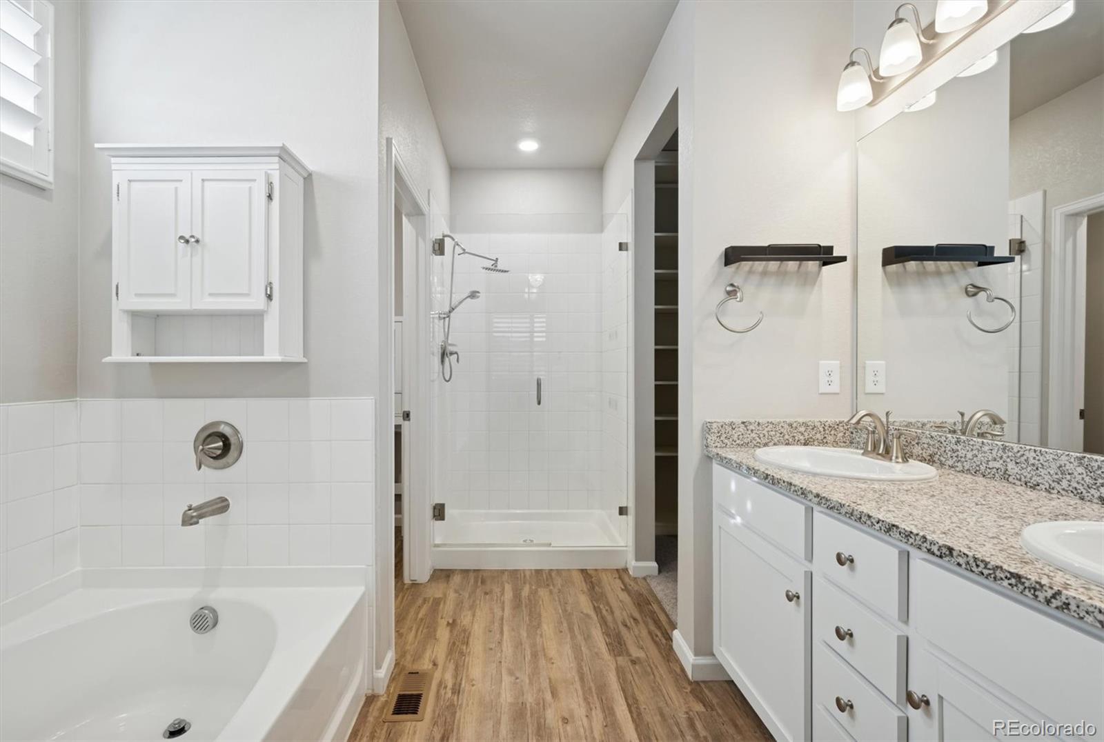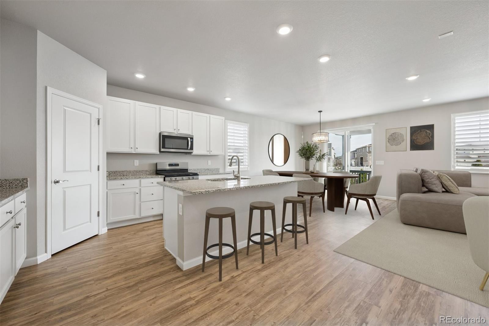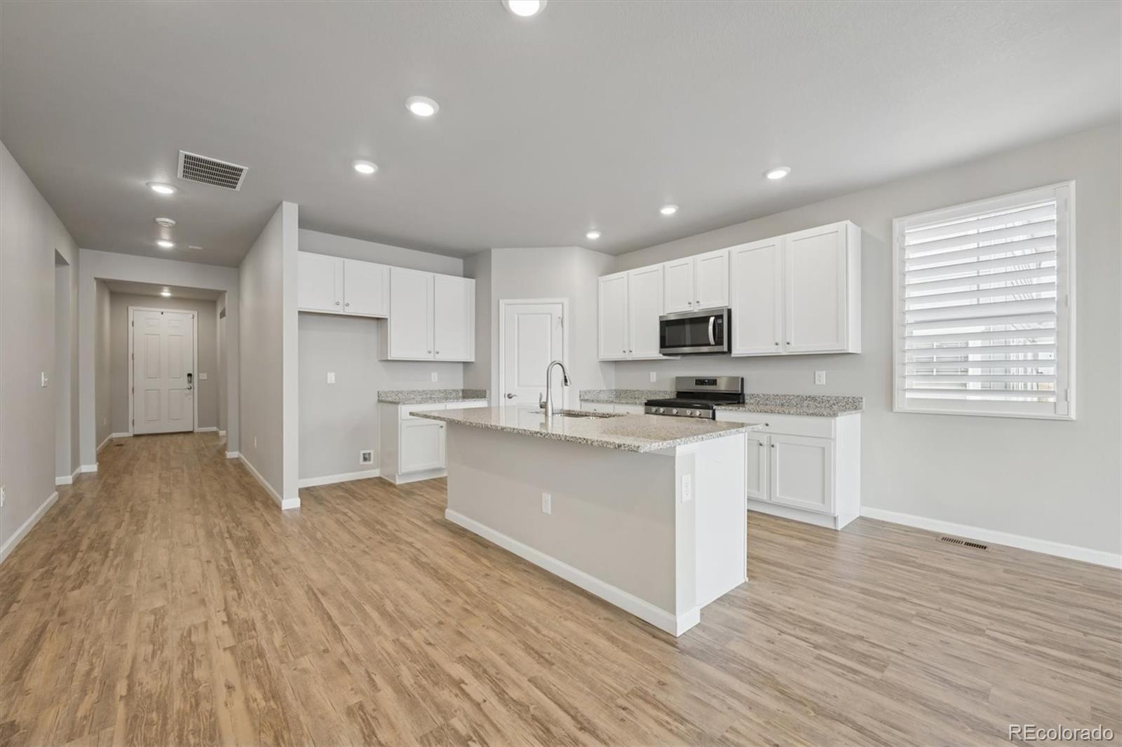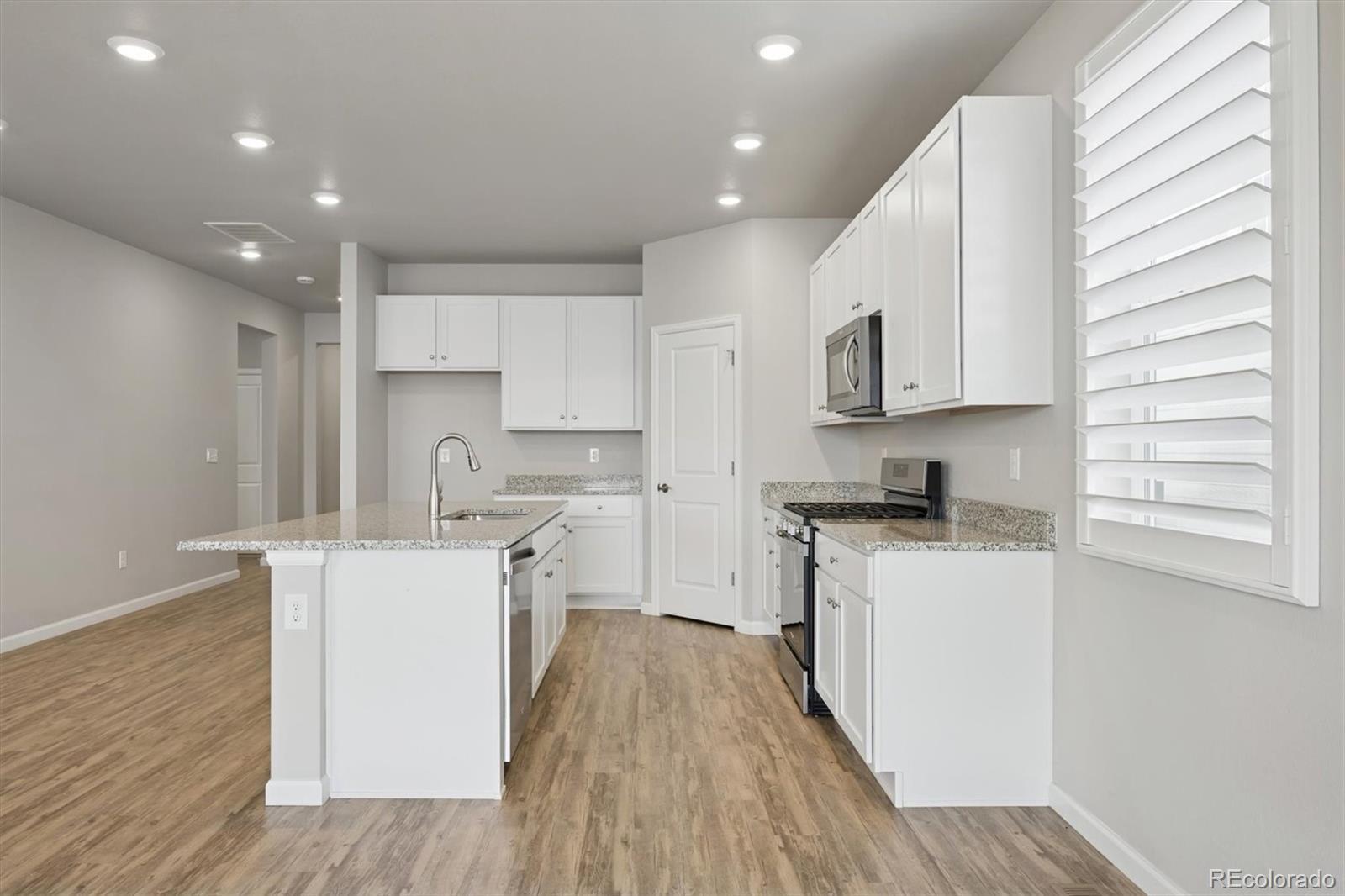 This is undoubtedly one of the best values in southeast Aurora, there is nothing to do in this home, just move in. Step into this beautifully maintained, open-concept ranch home where light, space, and comfort come together effortlessly. Designed for both entertaining and everyday living, the great room is filled with natural sunlight and offers a warm, inviting atmosphere that feels both modern and timeless. The heart of the home is a chef-inspired kitchen featuring a generous center island, pantry, slab granite countertops, and sleek stainless-steel appliances—perfect for casual meals, hosting guests, or creating culinary masterpieces. Retreat to the private primary suite, complete with its own spa-like en-suite bath and a spacious walk-in closet with custom built-ins, creating the ideal place to unwind at the end of the day. Wide-plank LVP flooring and classic plantation shutters and Silhouette draperies add style while thoughtful upgrades elevate everyday living. Step outside to a beautifully landscaped backyard oasis where a relaxing hot tub invites you to enjoy peaceful evenings under the stars. A whole-home generator provides added peace of mind and comfort year-round. This move-in-ready home offers the perfect blend of elegance, functionality, and modern convenience—truly better than new. Special features include a Generac generator system, extensive back patio with hot tub and Xeriscape landscaping, primary bedroom closet built-ins, Halo water purification system, plantation shutters and Silhouette sliding drapery, air filter system, radon mitigation system, security system and upgraded light fixtures. Enjoy The Commons Community Center that includes a fitness center, movement studio, pool, sports courts, dog park, trails and parks. The Harmony neighborhood is conveniently located near schools, shopping and dining and I-70 and E-470 for easy access.